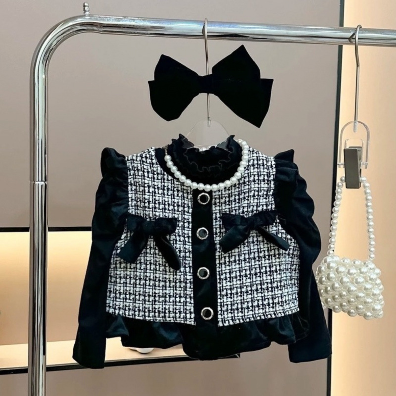 소녀의 봄 원피스 2024 세트 폭발 한국 아기 소녀의 향기로운 조끼 뿔 바지 소녀들의 가을과 겨울 두 조각 유행스토어 가기