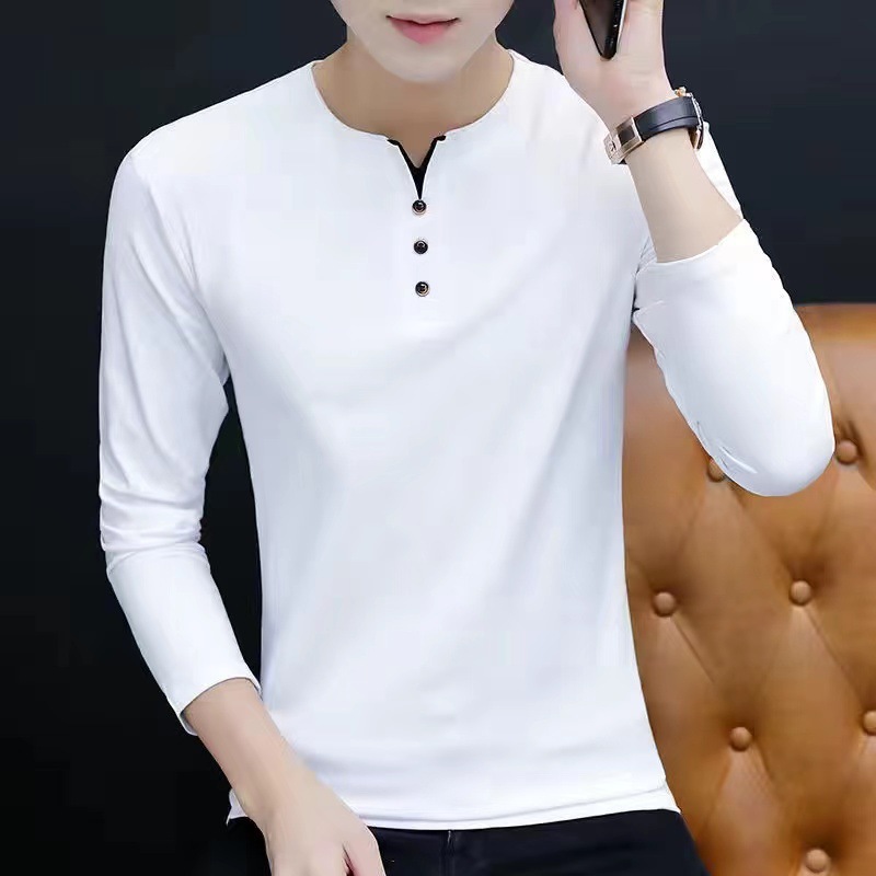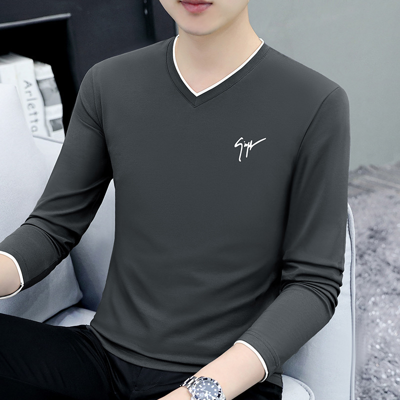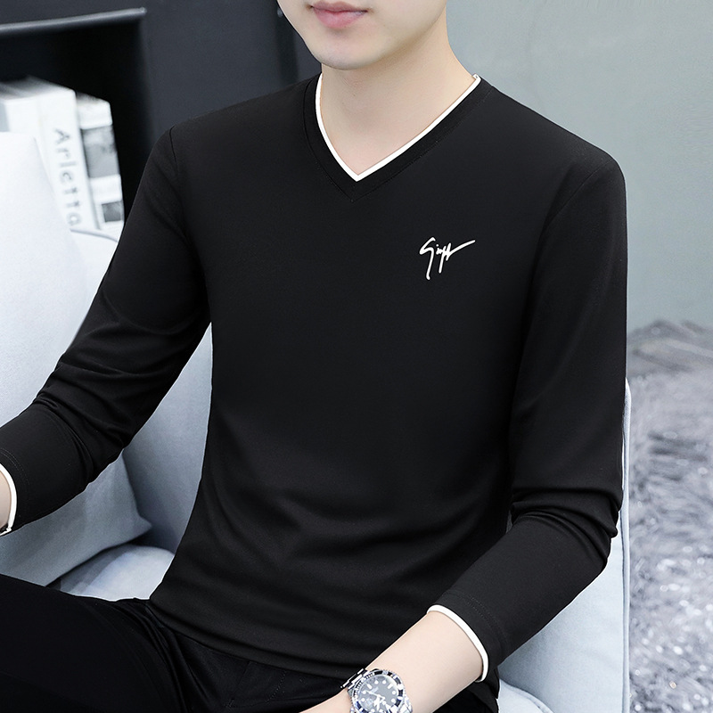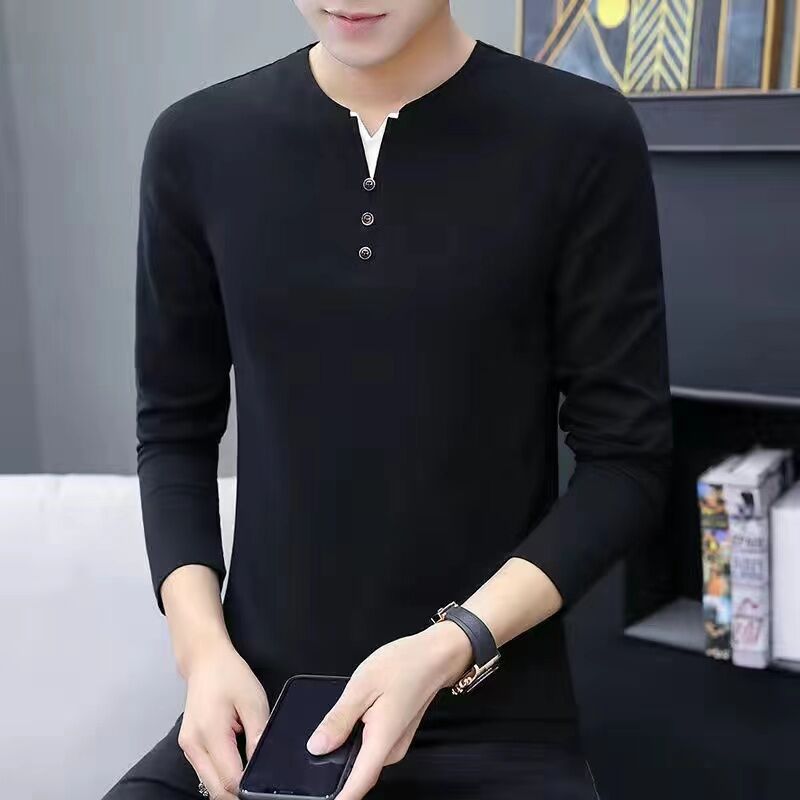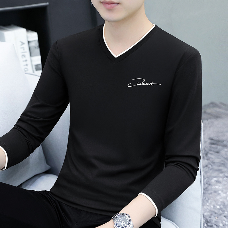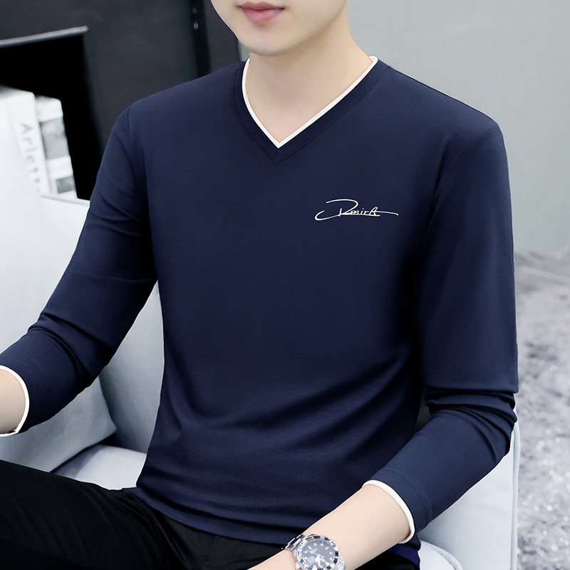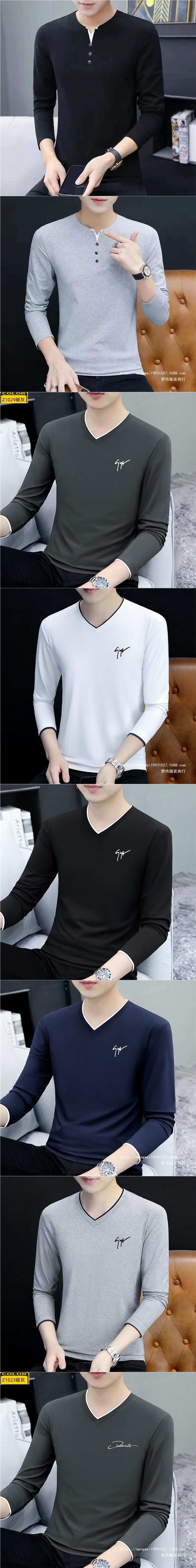면 남성 긴팔 티셔츠 봄 옷 가을 옷 남자 2024 새 바닥 셔츠 inst 도매스토어 가기