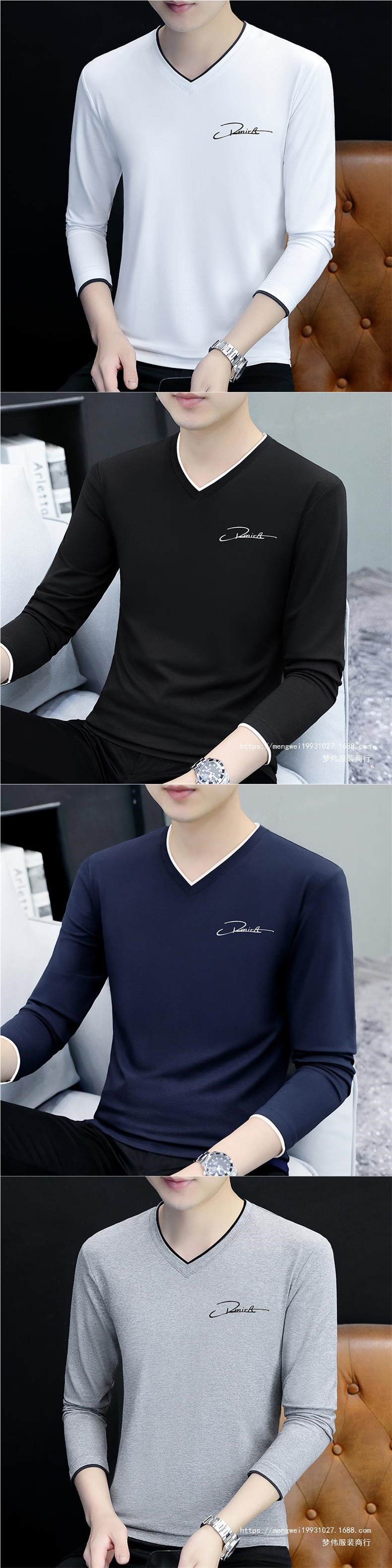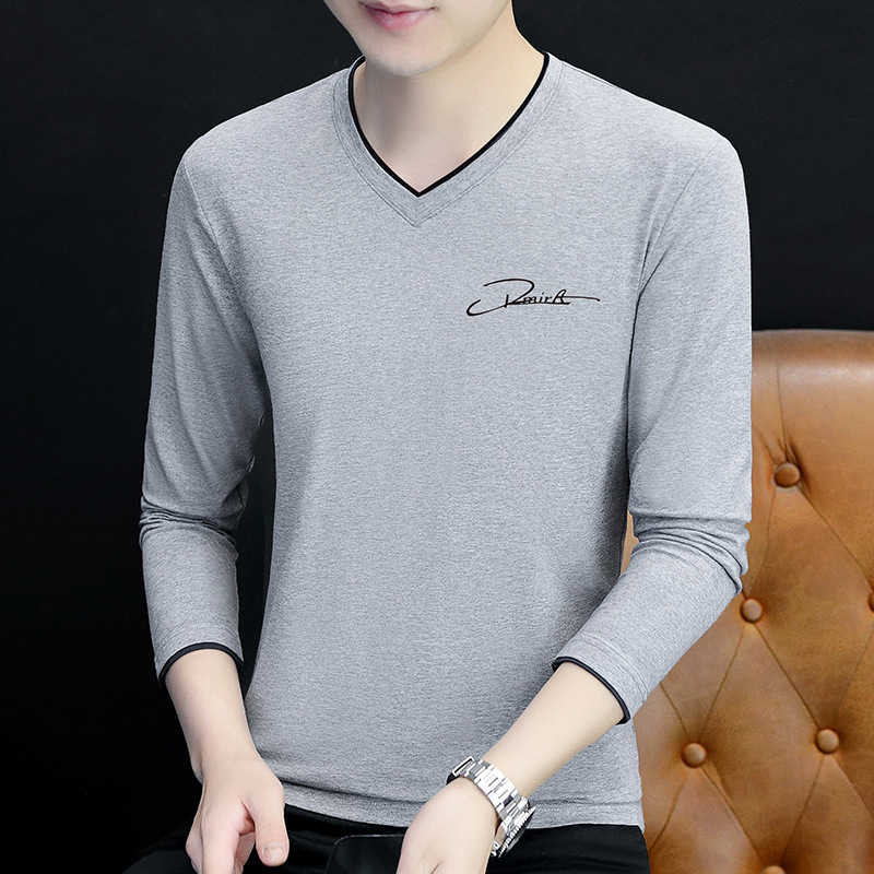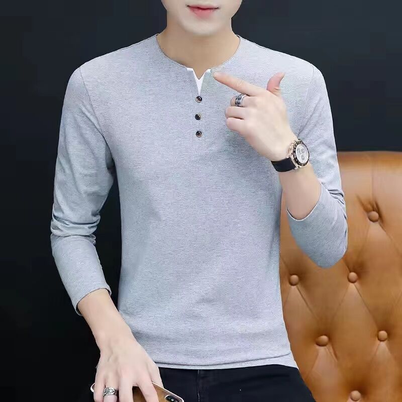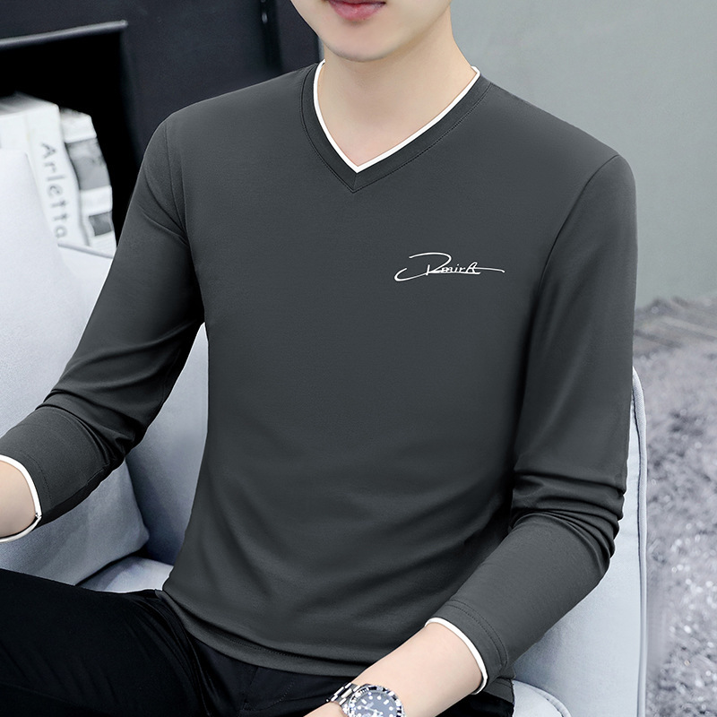 면 남성 긴팔 티셔츠 봄 옷 가을 옷 남자 2024 새 바닥 셔츠 inst 도매