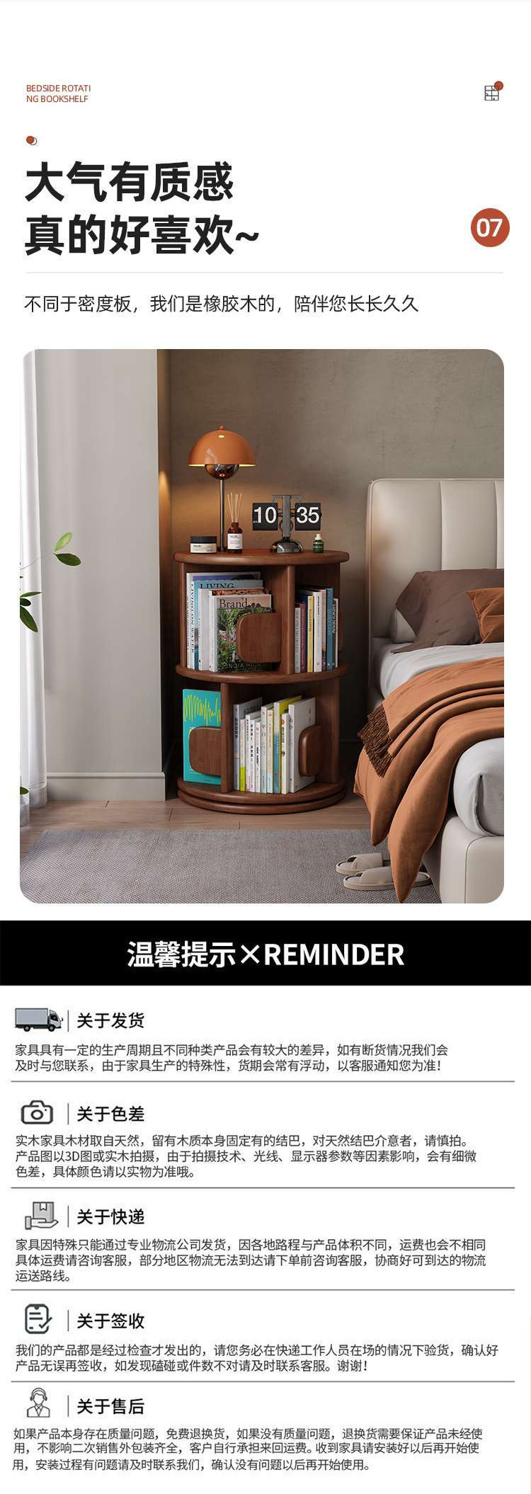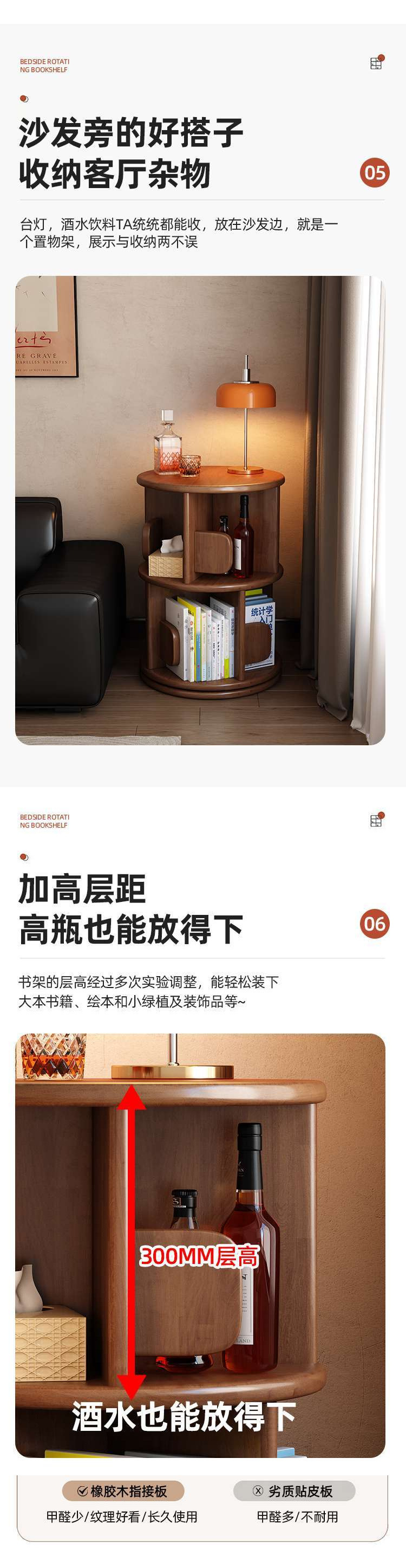 단단한 나무 회전 책장 360 도 책장 홈 거실 어린이 독서 랙 바닥 보관 랙 침실 옆 테이블
