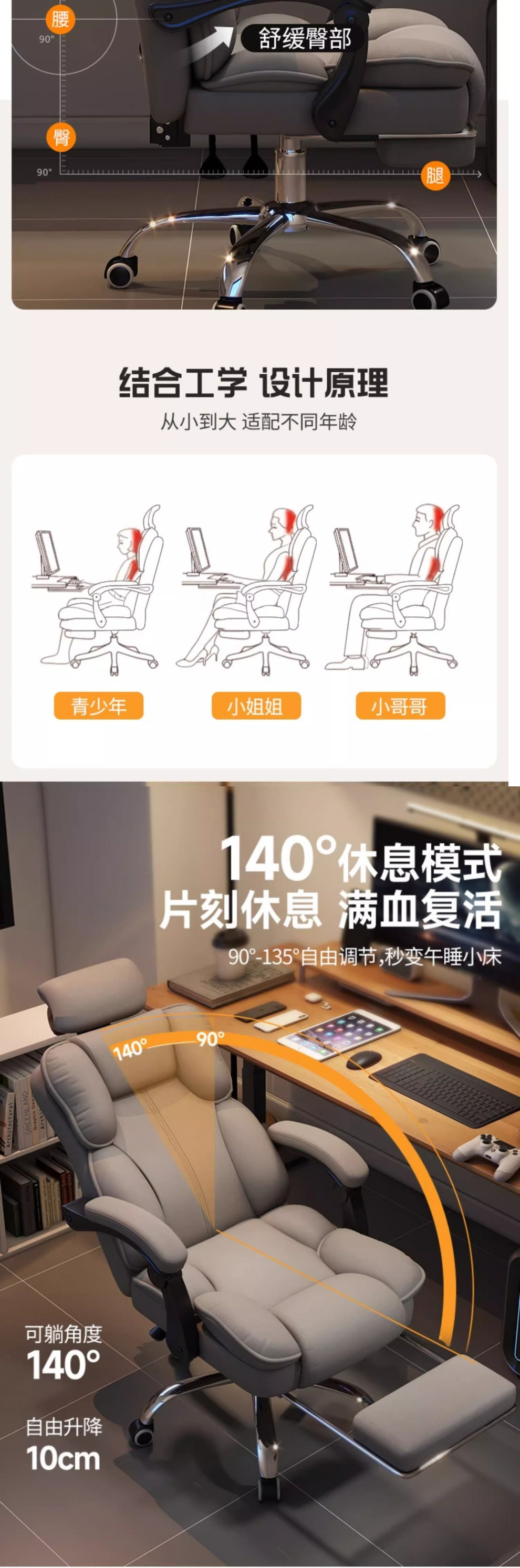 • 그레이 극세사 가죽 + 3D 조절식 머리받침 + 발판 + 스펀지 쿠션