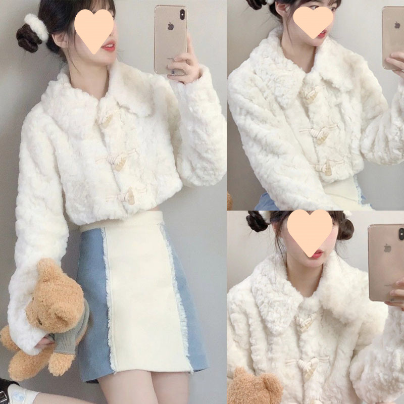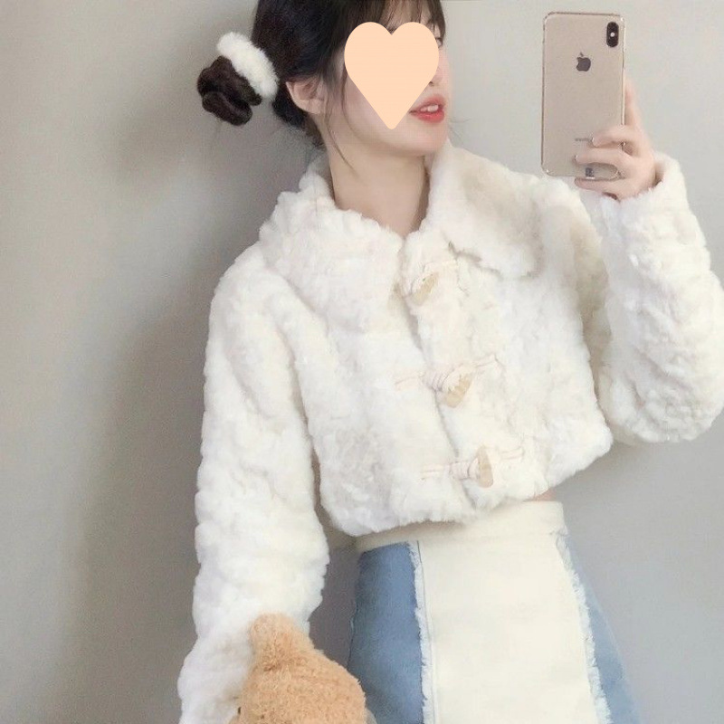 양고기 양모 코트 여성의 가을과 겨울 새로운 달콤하고 부드러운 원피스 코너 버클 짧은 모방 토끼 모피 탑스토어 가기