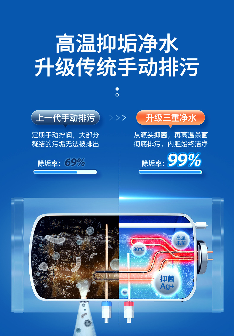 • 80리터 플랫 배럴 디지털 디스플레이 + 고급 구성 + 물 배출구 및 정전, 정전 방지 벽 + 크루즈를 직접 설치하세요.