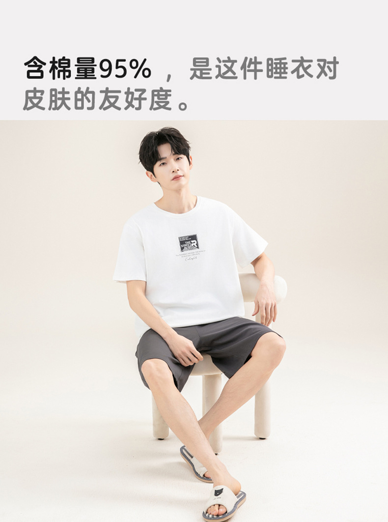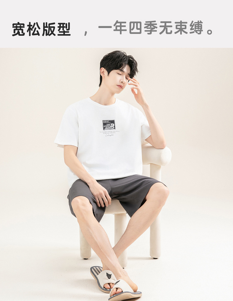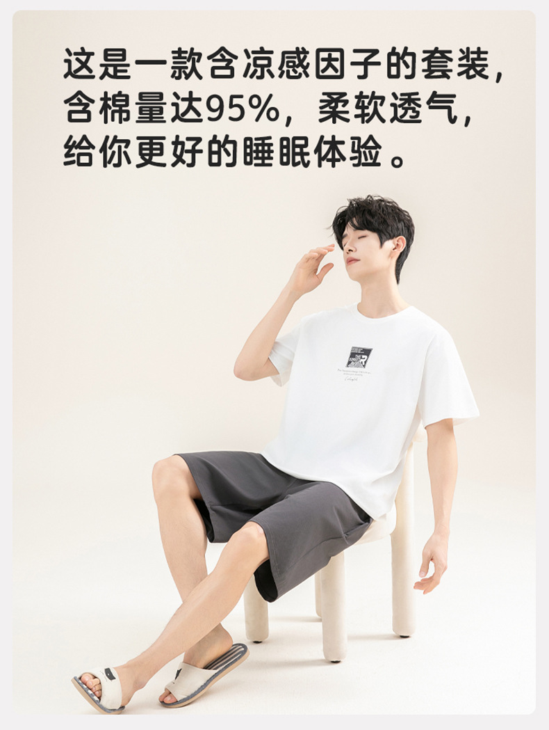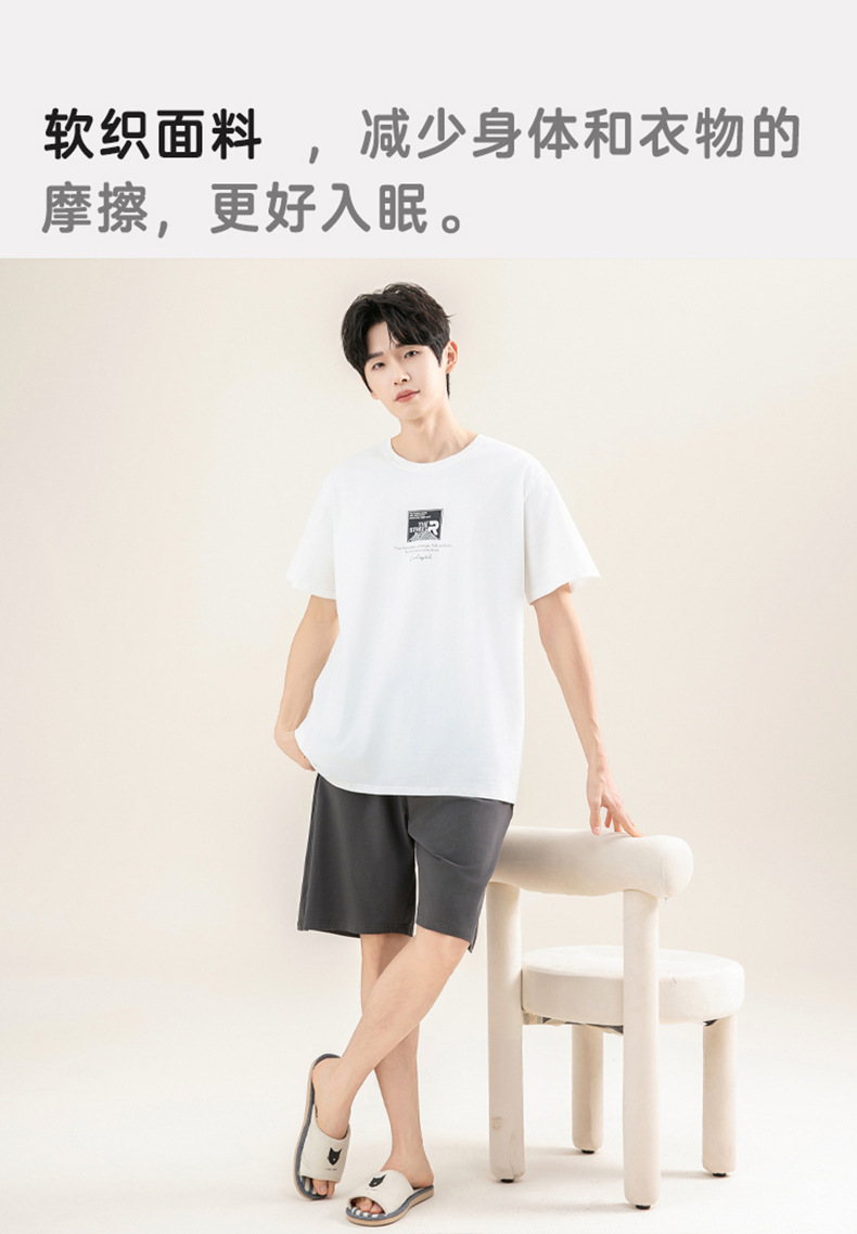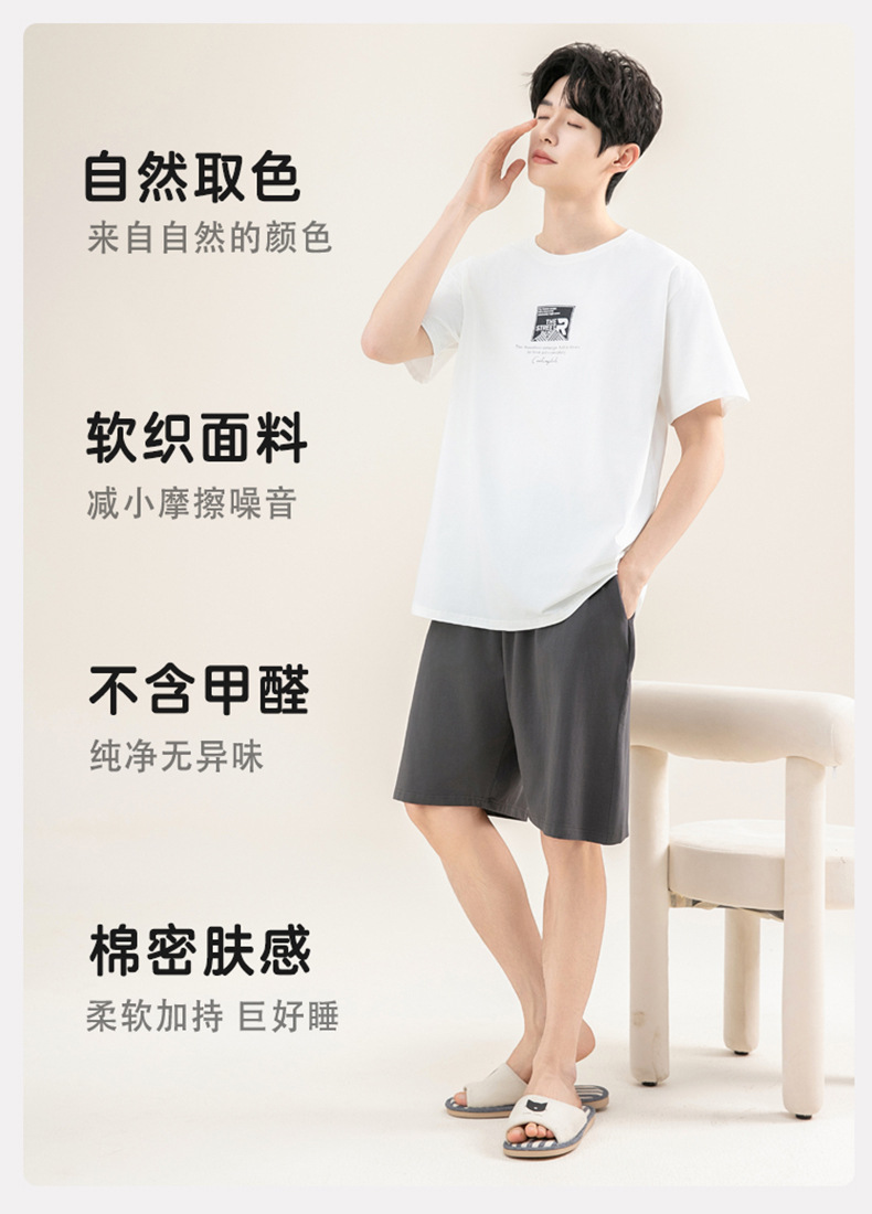 [쿨한 느낌면] 남자 여름 반소매 면 잠옷 심플한 단색 풀오버 홈 의류 세트 밖에 입을 수 있습니다