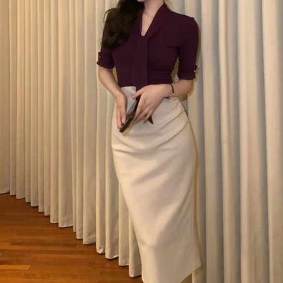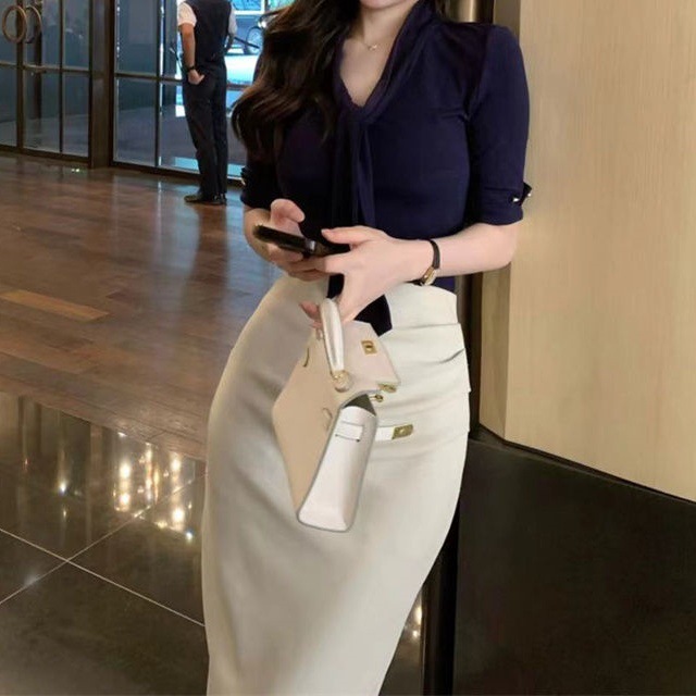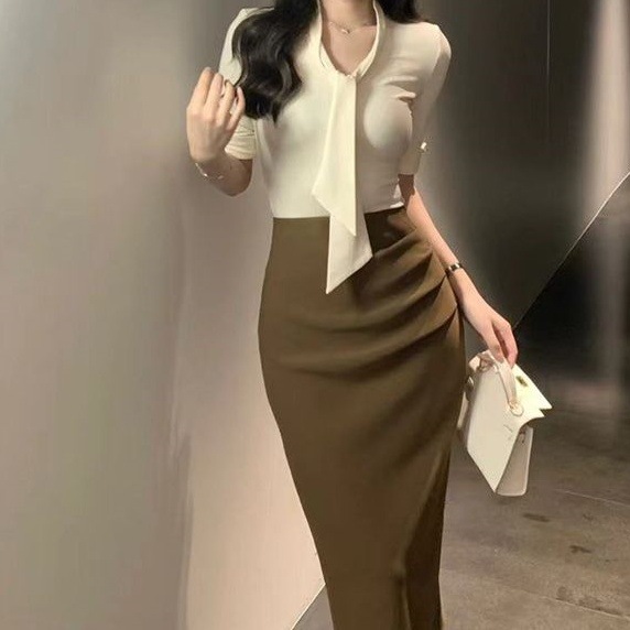 2026년 비서 직업복 여성용 레이스업 셔츠 세트, 패셔너블하고 다재다능한 스커트, 새로운 투피스 세트스토어 가기
