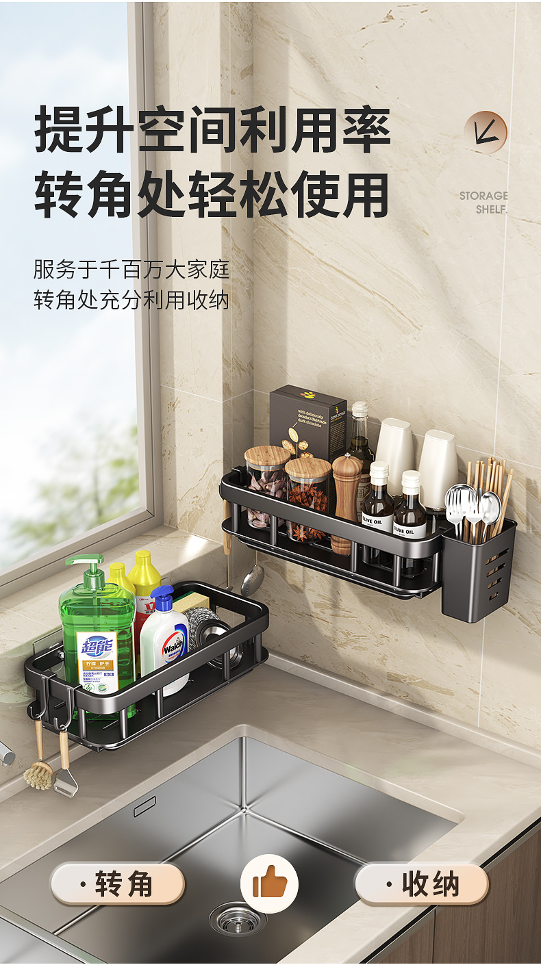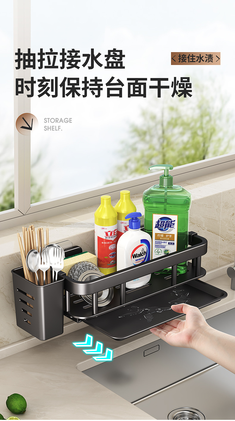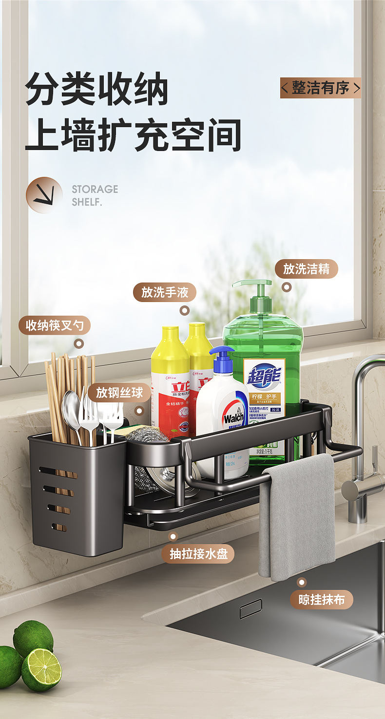 주방 싱크 사이드 스토리지 랙 다기능 래그 랙 펀치 프리 싱크 스폰지 드레인 랙 다목적 스토리지 랙