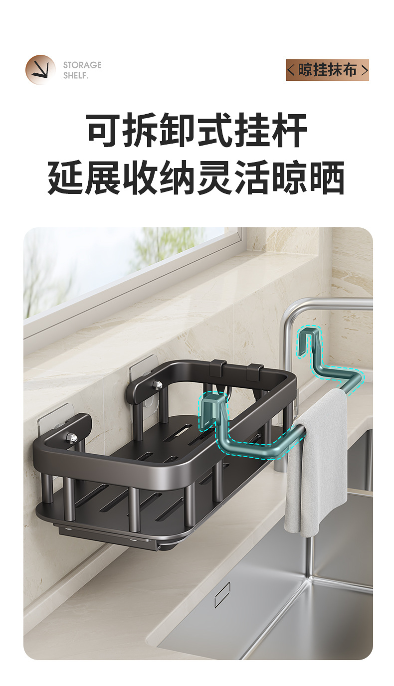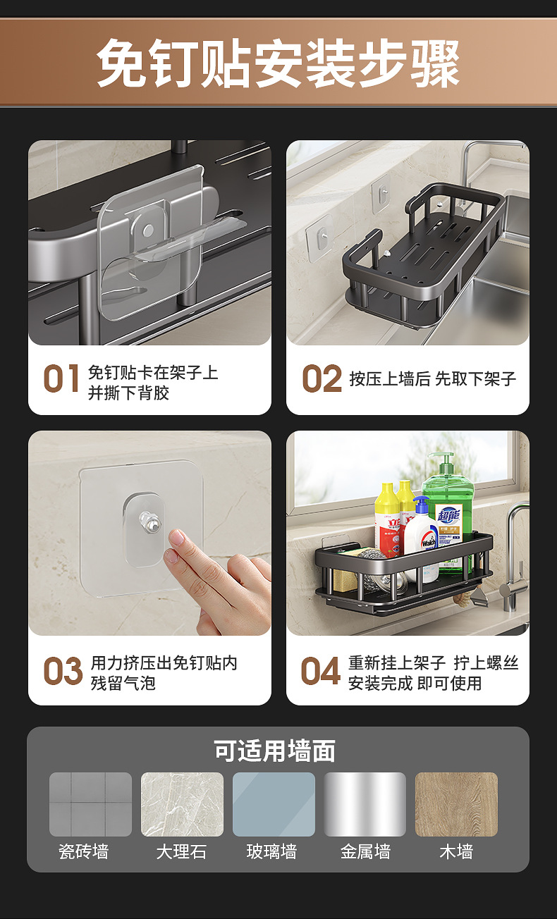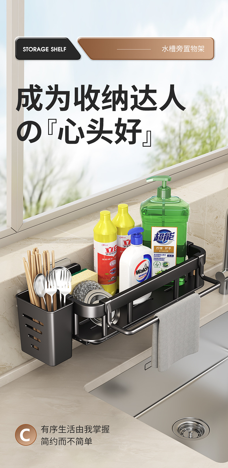 주방 싱크 사이드 스토리지 랙 다기능 래그 랙 펀치 프리 싱크 스폰지 드레인 랙 다목적 스토리지 랙
