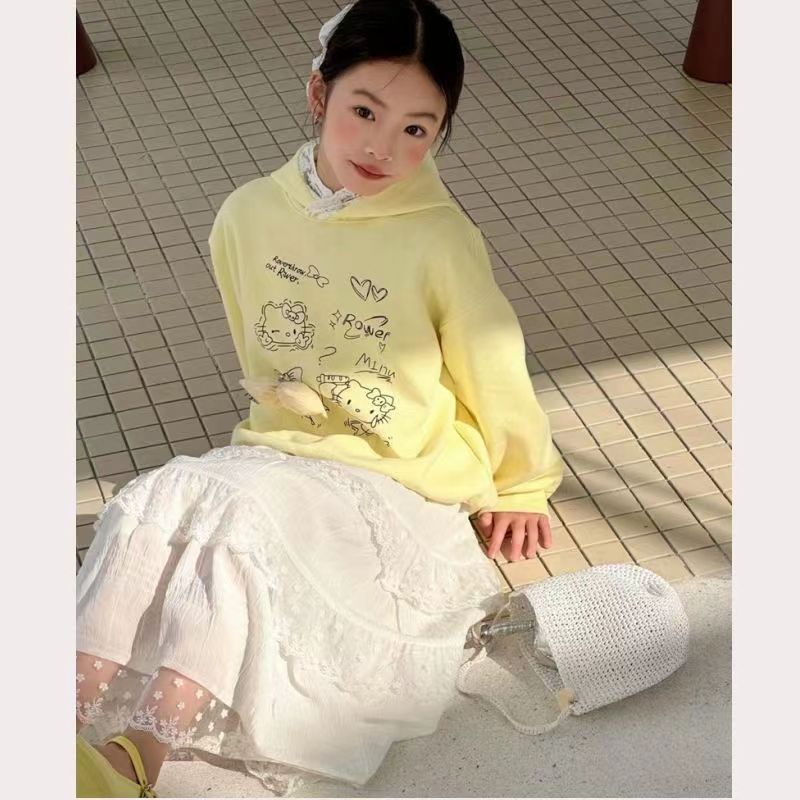 여자 한국 스타일 서양식 레이스 원피스 2025 봄 새로운 달콤한 바느질 케이크 원피스 어린이 중간 길이 원피스스토어 가기