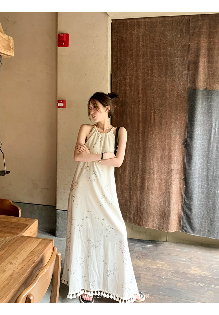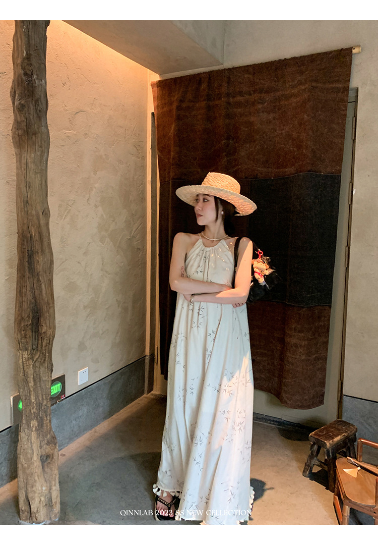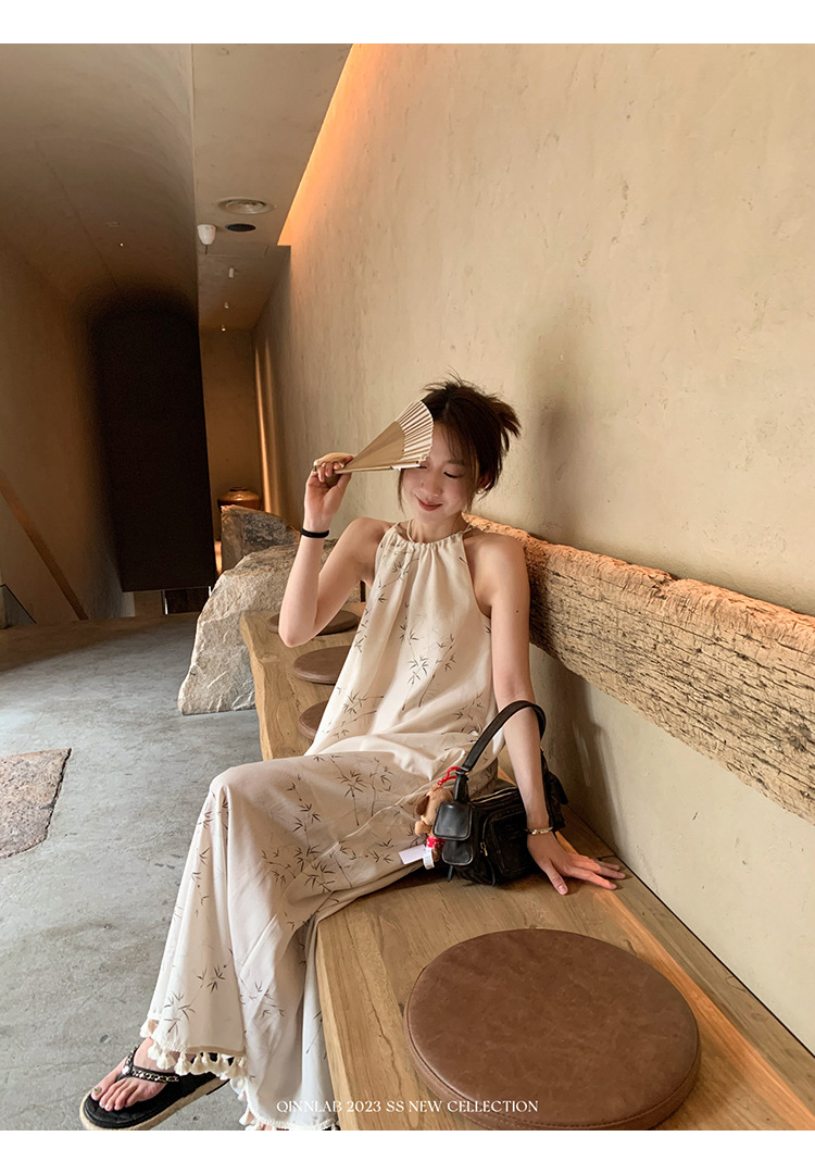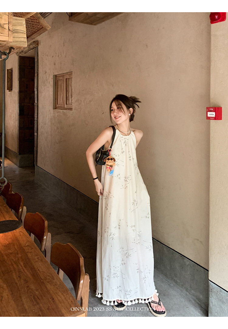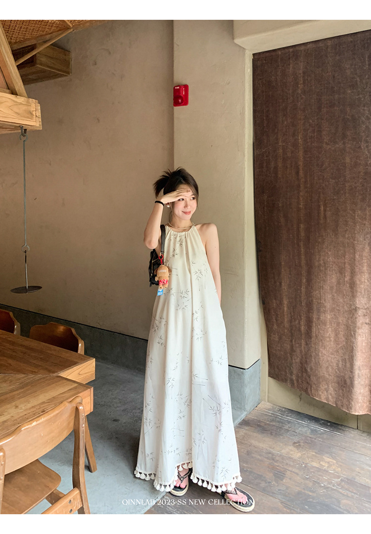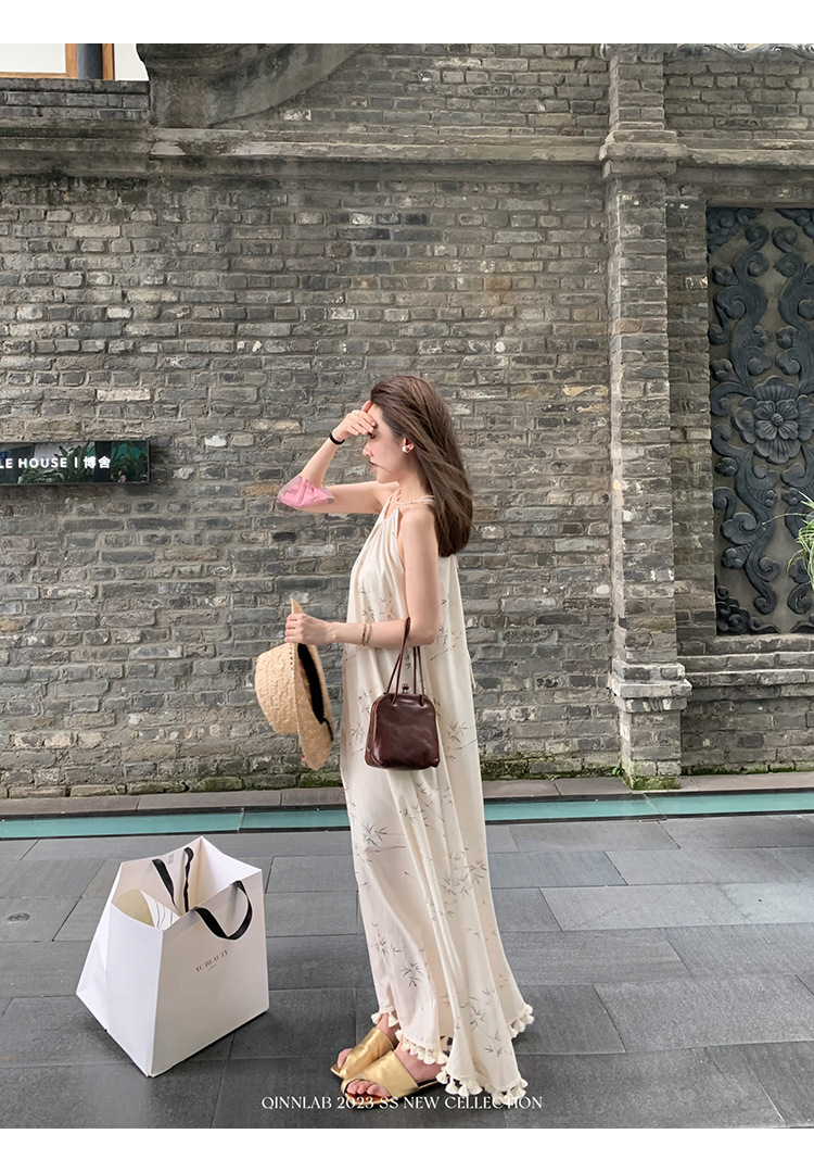 새로운 중국 스타일 가벼운 Guofeng 스커트 헴 술 우아한 슬링 느슨한 시원한 선 원피스 해변 휴가