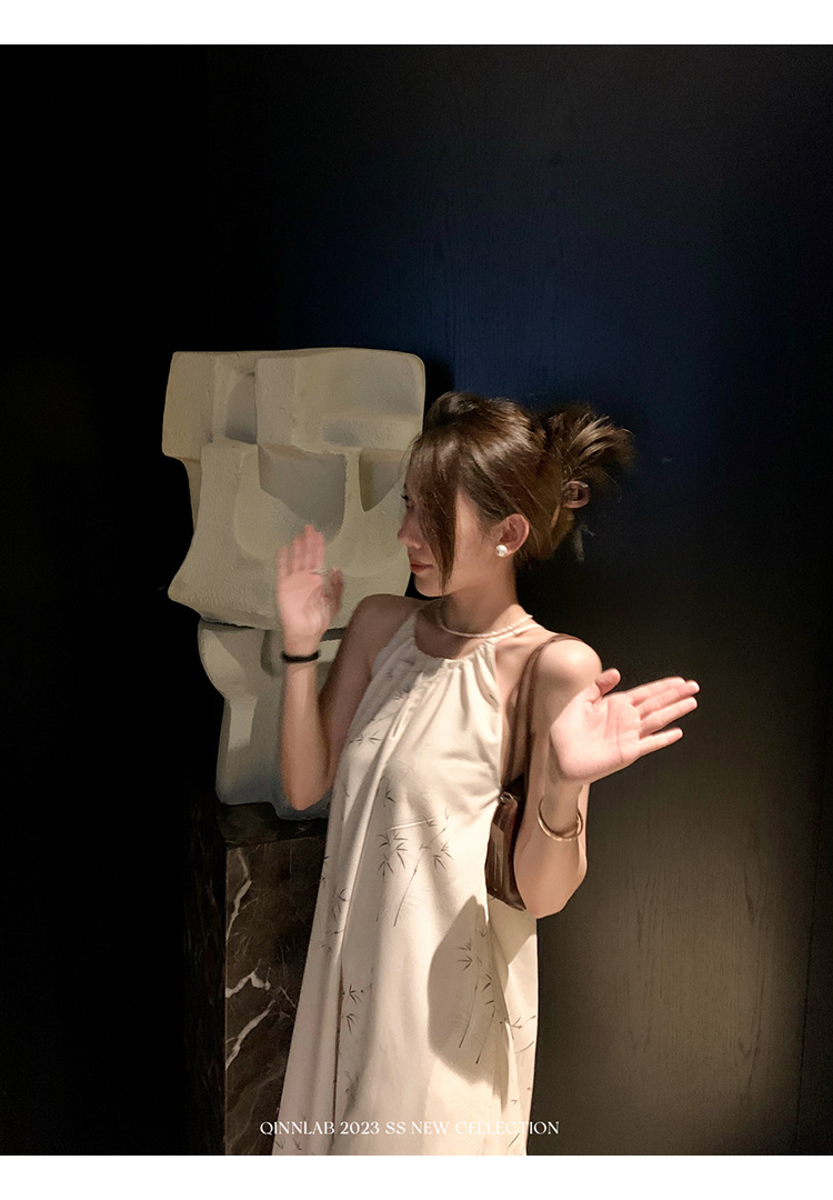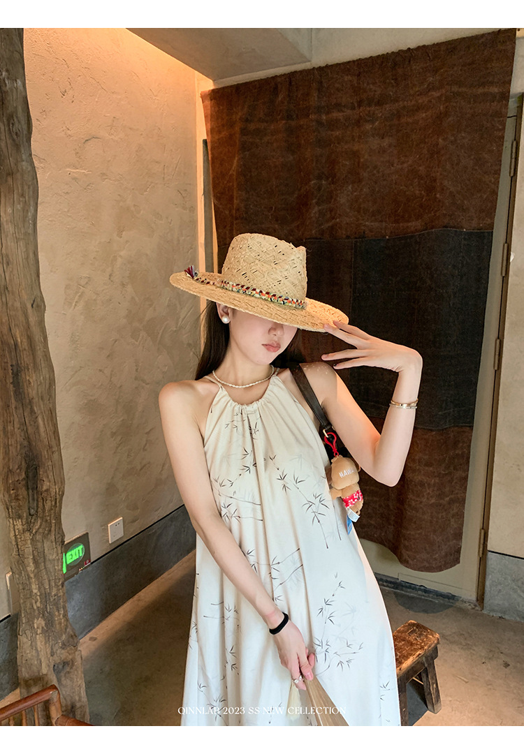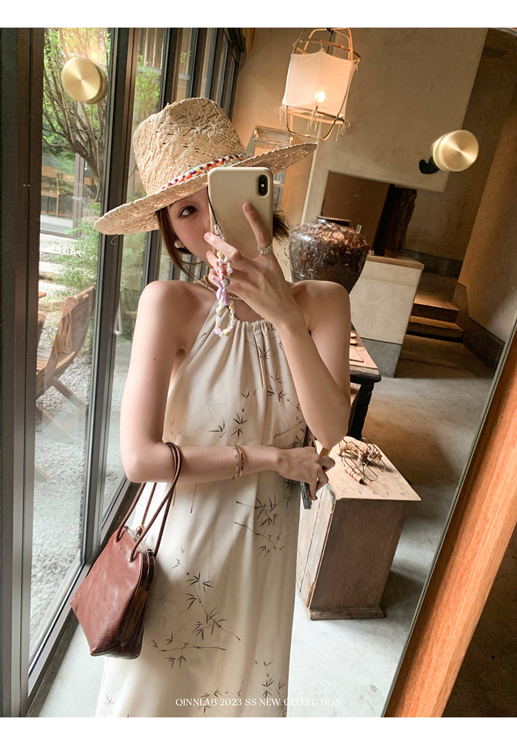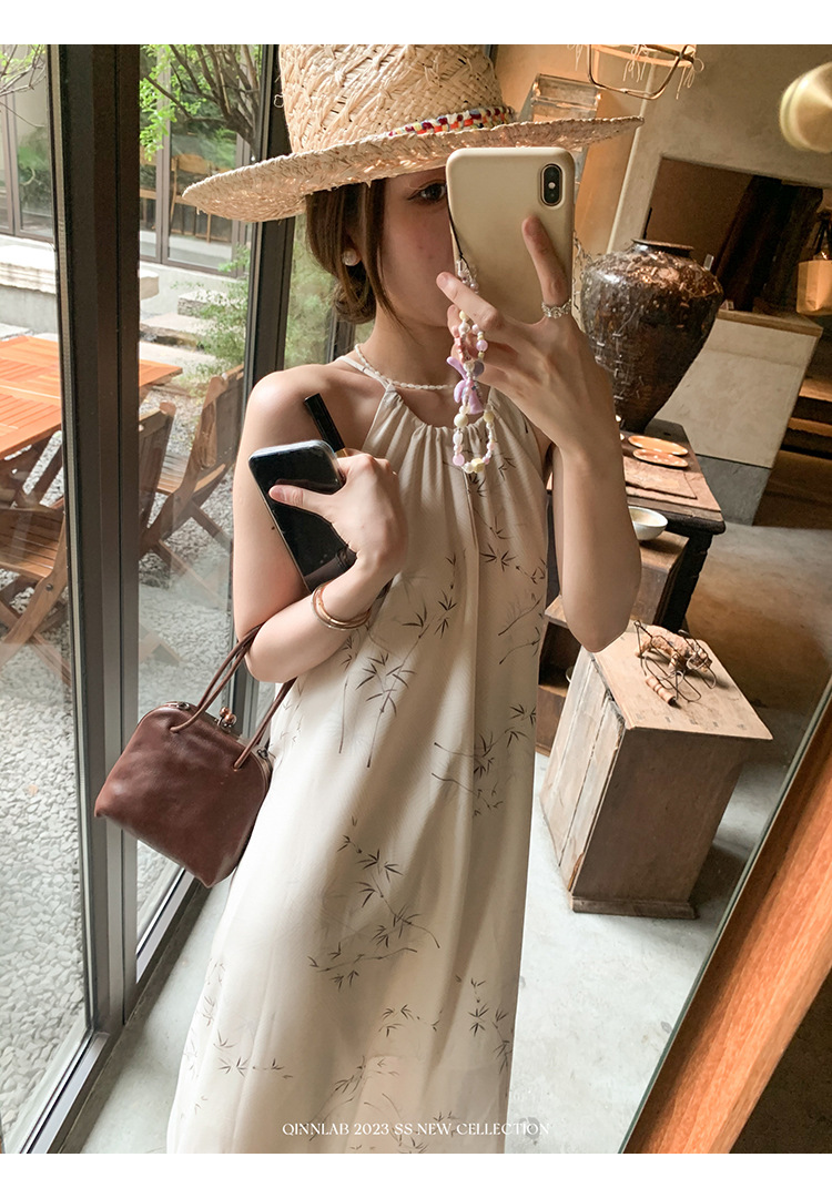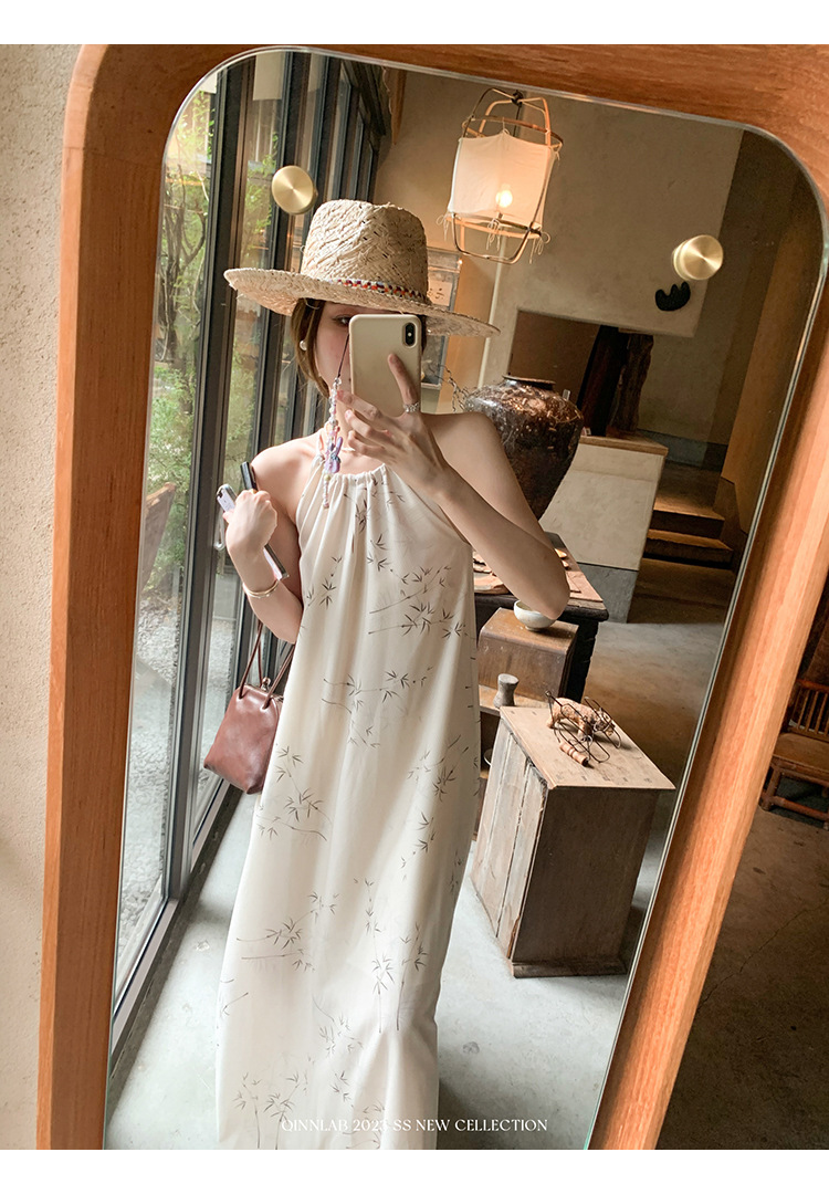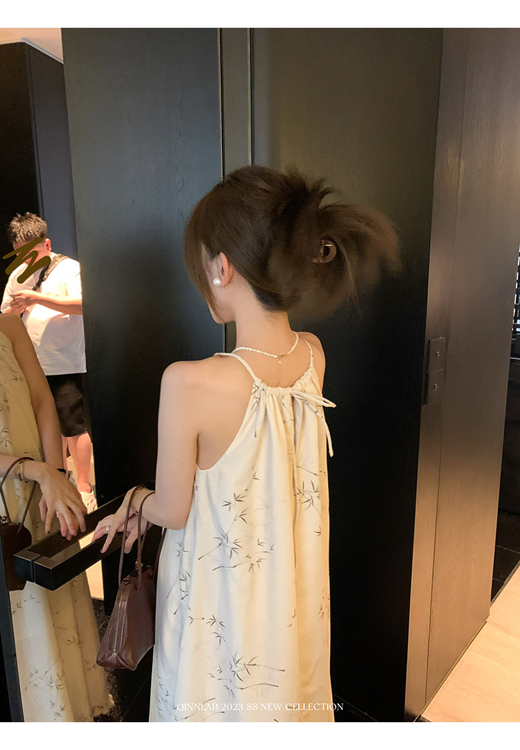새로운 중국 스타일 가벼운 Guofeng 스커트 헴 술 우아한 슬링 느슨한 시원한 선 원피스 해변 휴가