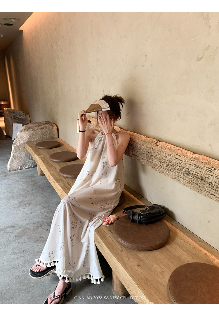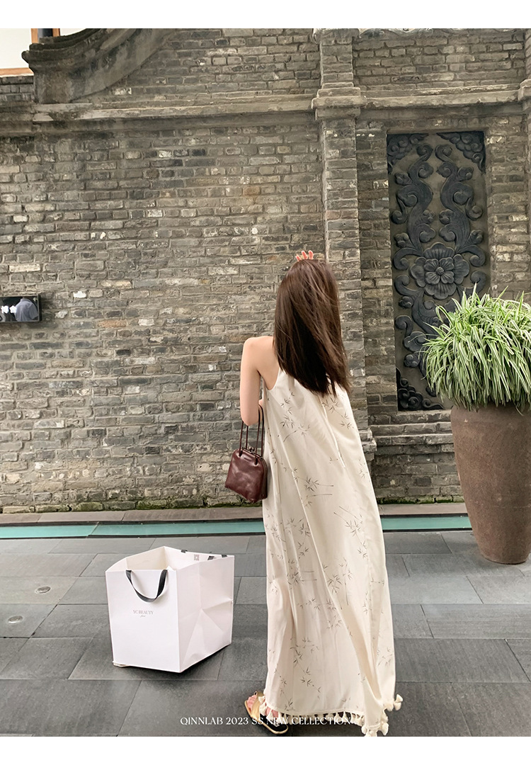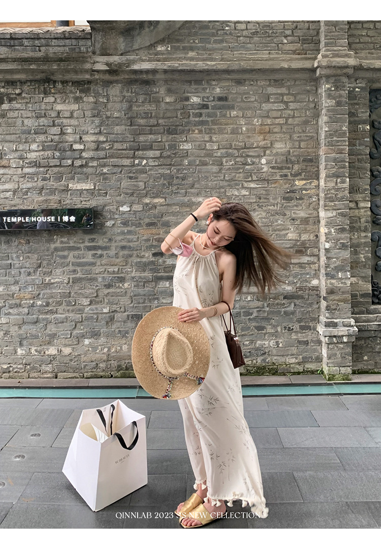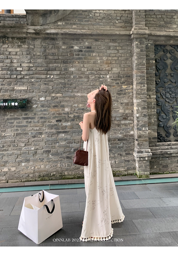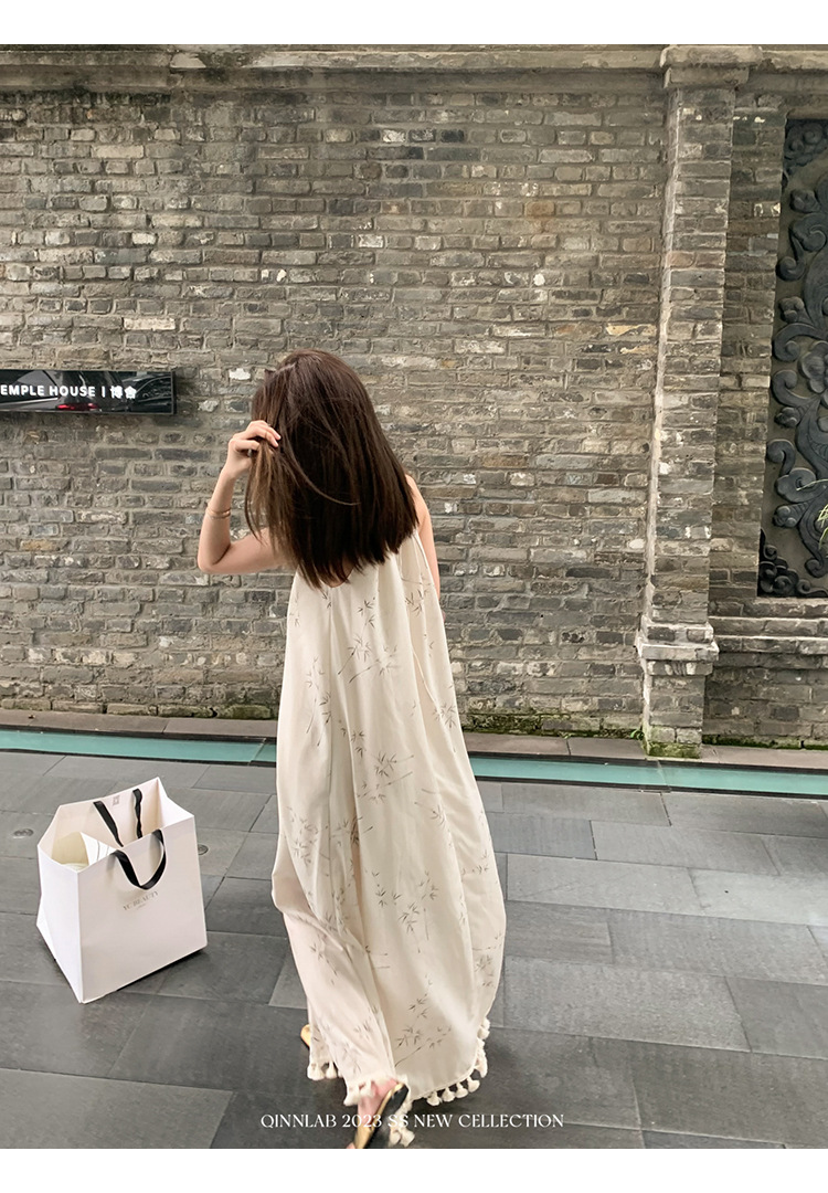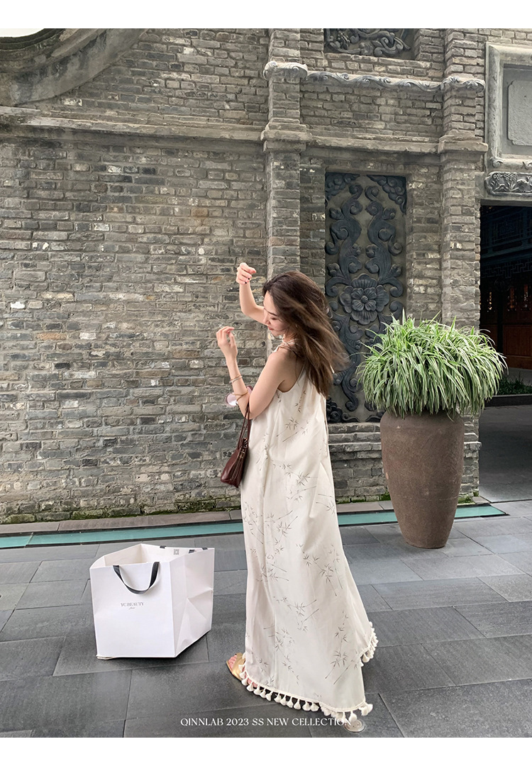 새로운 중국 스타일 가벼운 Guofeng 스커트 헴 술 우아한 슬링 느슨한 시원한 선 원피스 해변 휴가스토어 가기