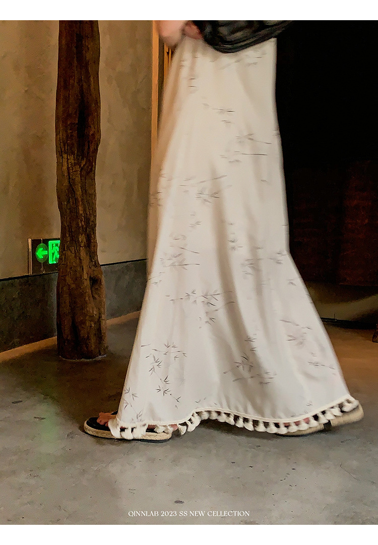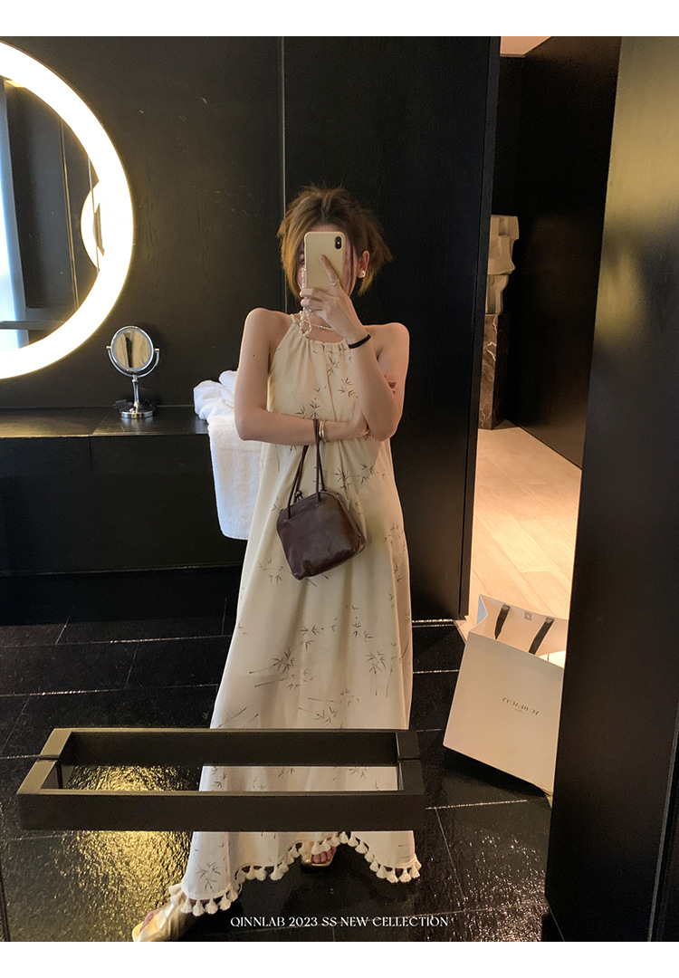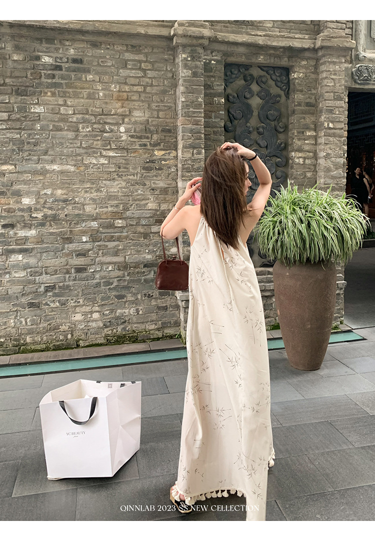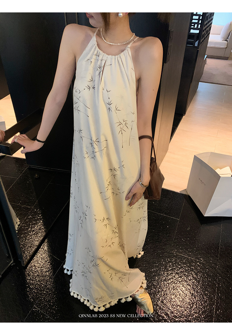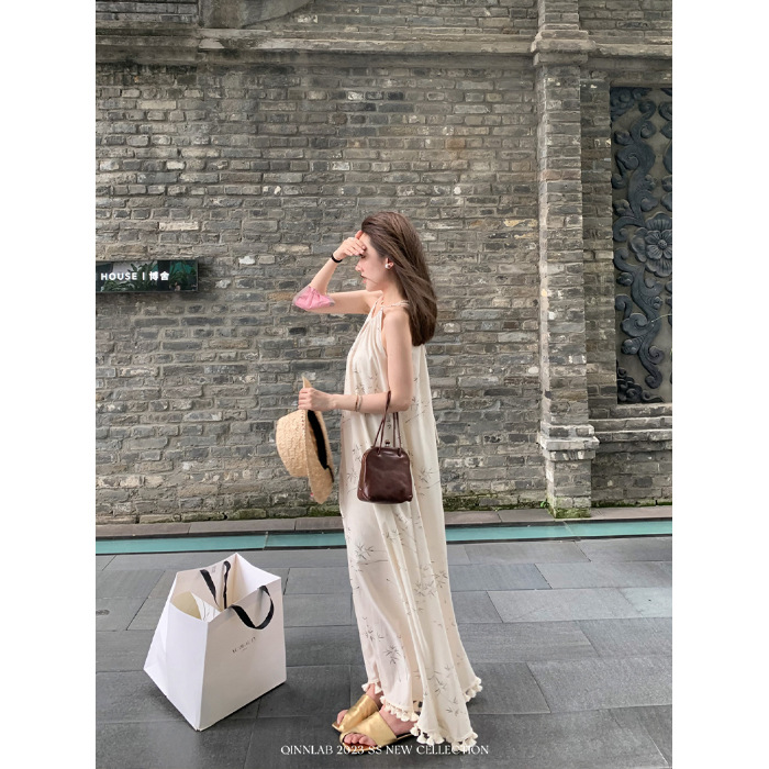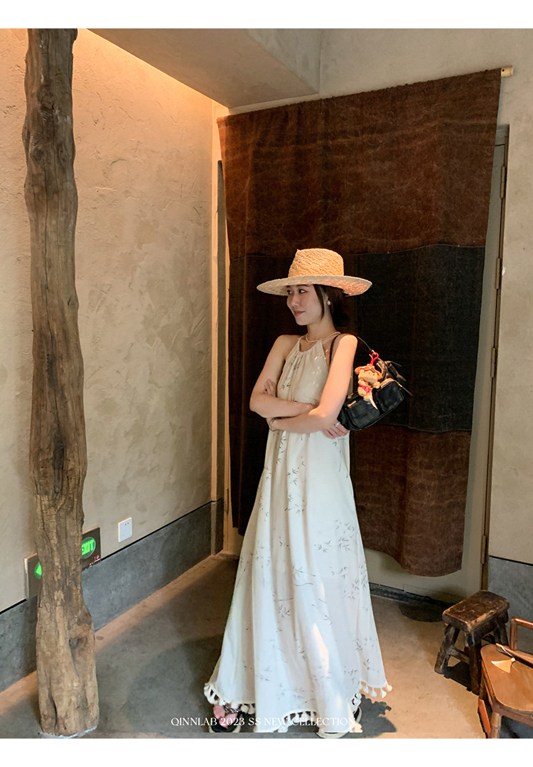 새로운 중국 스타일 가벼운 Guofeng 스커트 헴 술 우아한 슬링 느슨한 시원한 선 원피스 해변 휴가스토어 가기