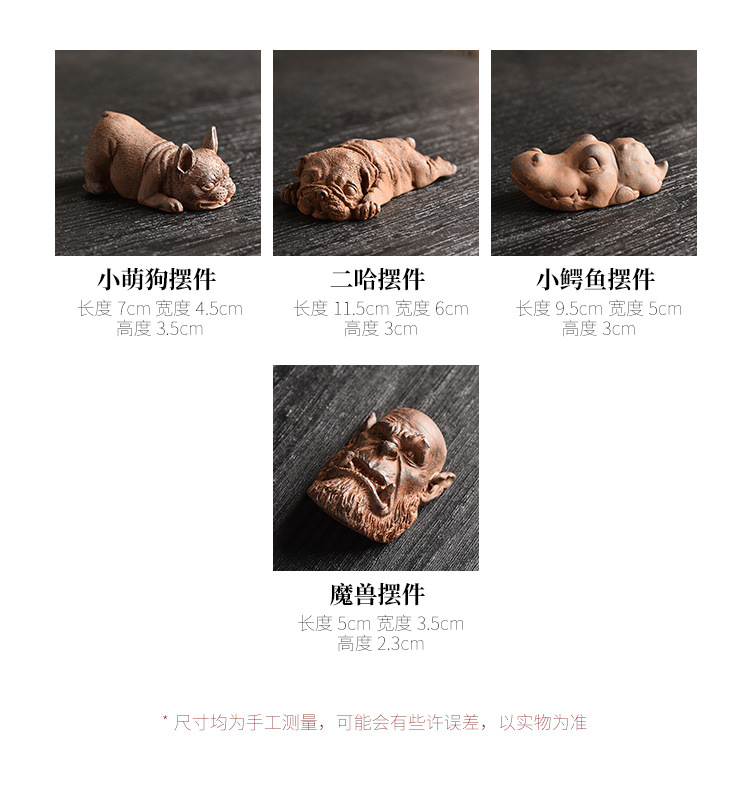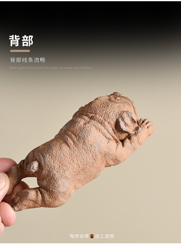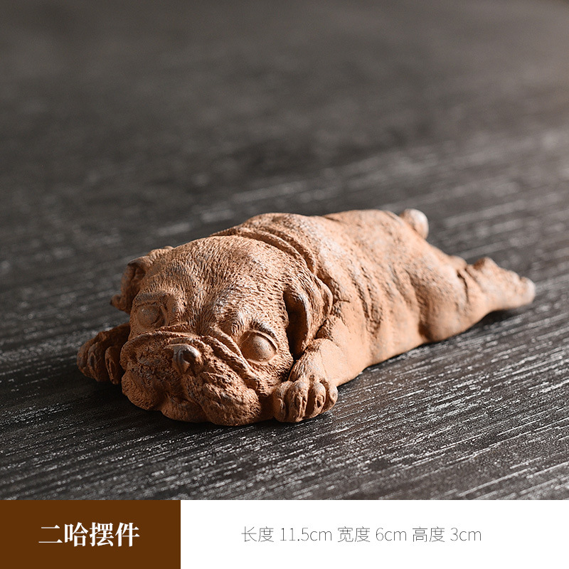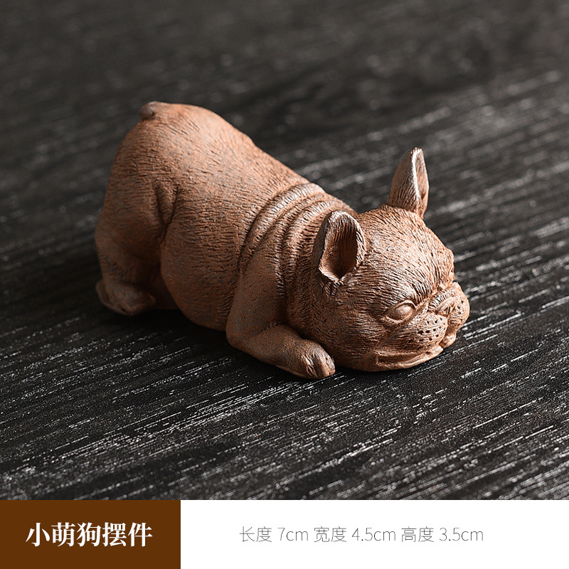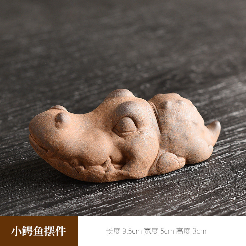 창조적 인 차 애완 동물 작은 악어 거짓말 개 장식품 장작 불타는 부티크는 거친 도자기 차 놀이 차 테이블 귀여운 세라믹 장식을 올릴 수 있습니다