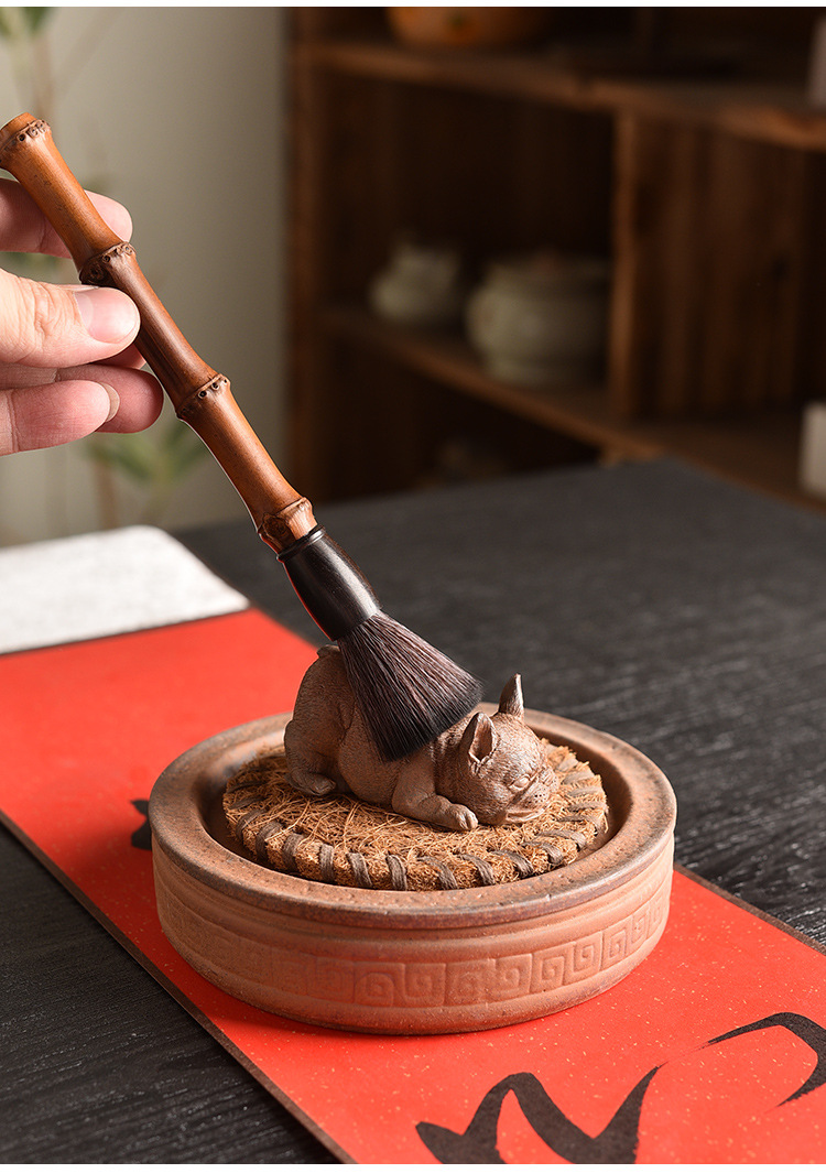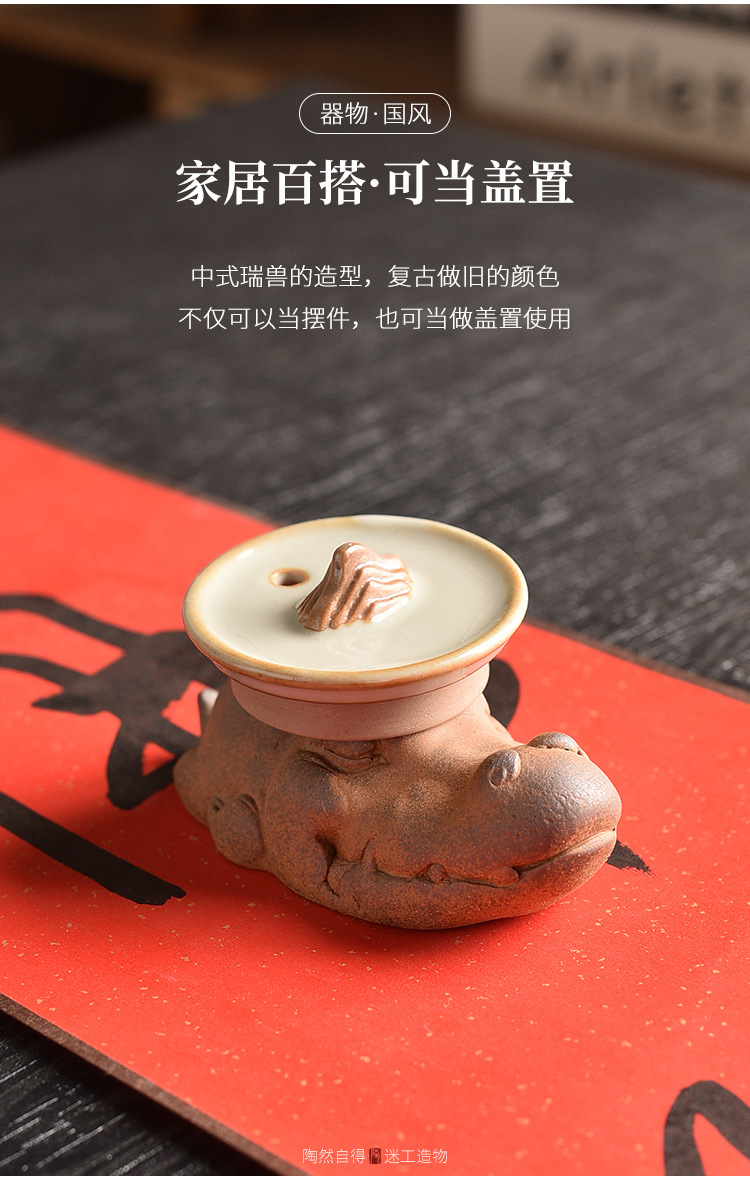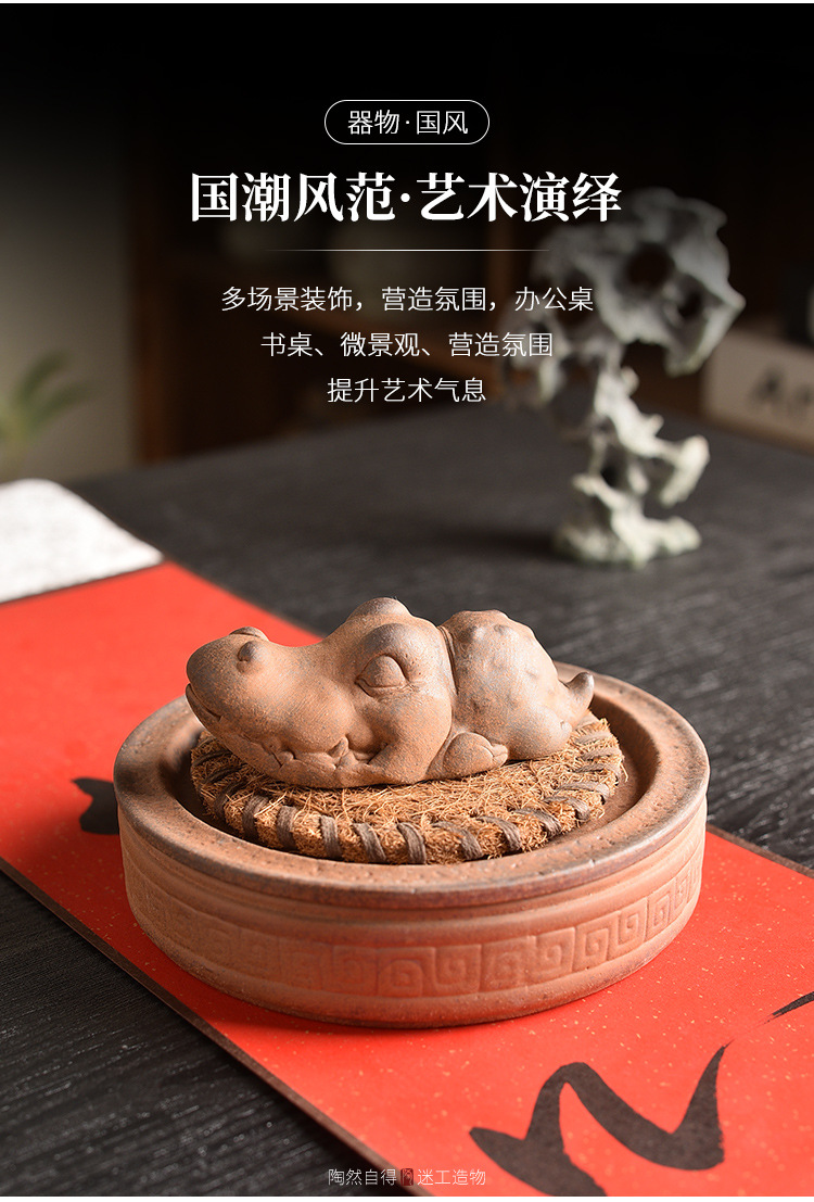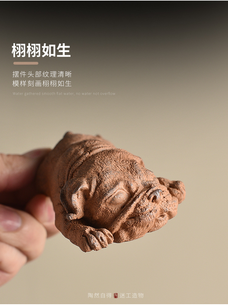 창조적 인 차 애완 동물 작은 악어 거짓말 개 장식품 장작 불타는 부티크는 거친 도자기 차 놀이 차 테이블 귀여운 세라믹 장식을 올릴 수 있습니다