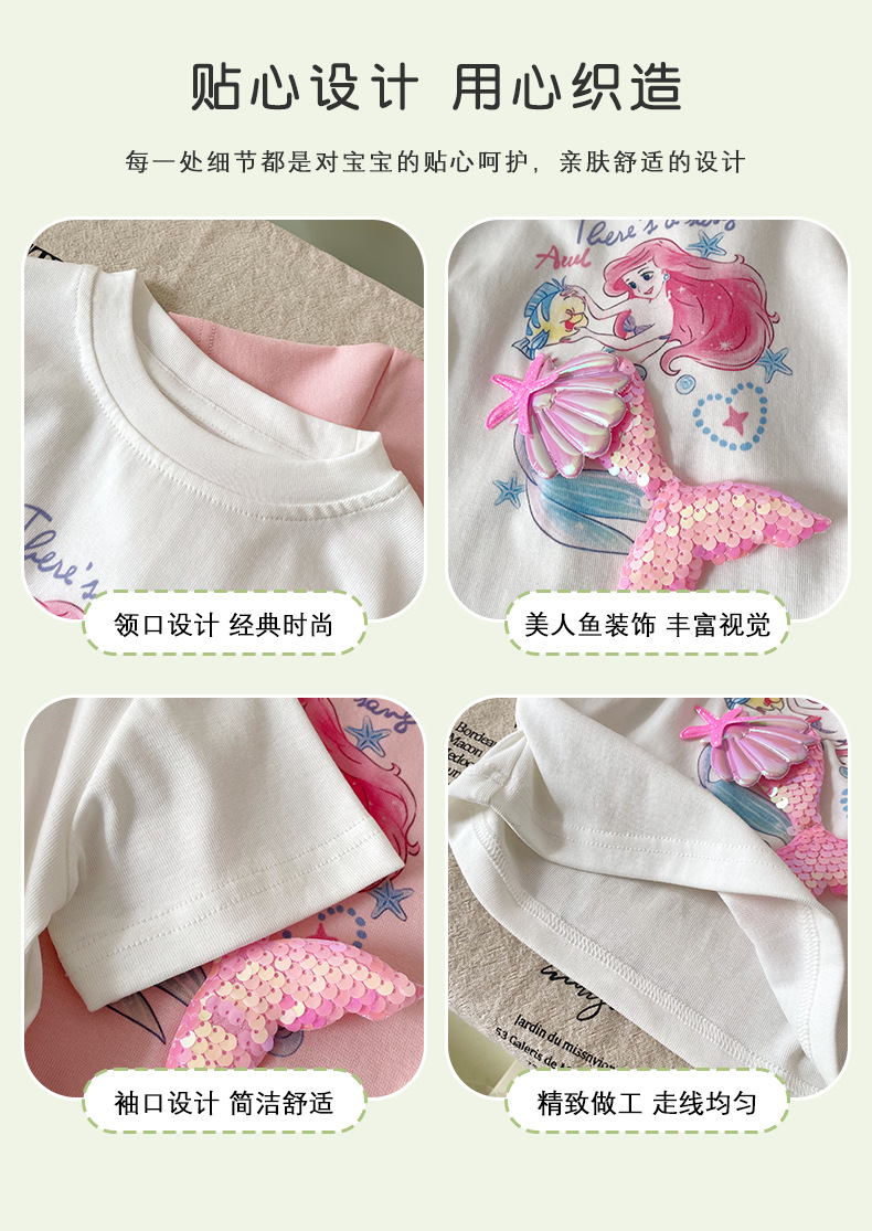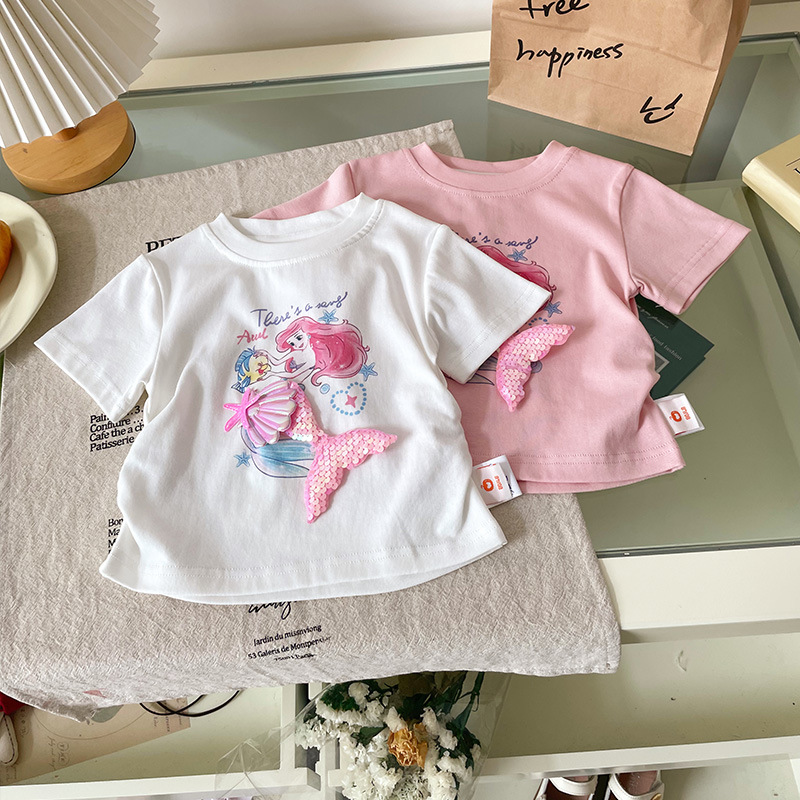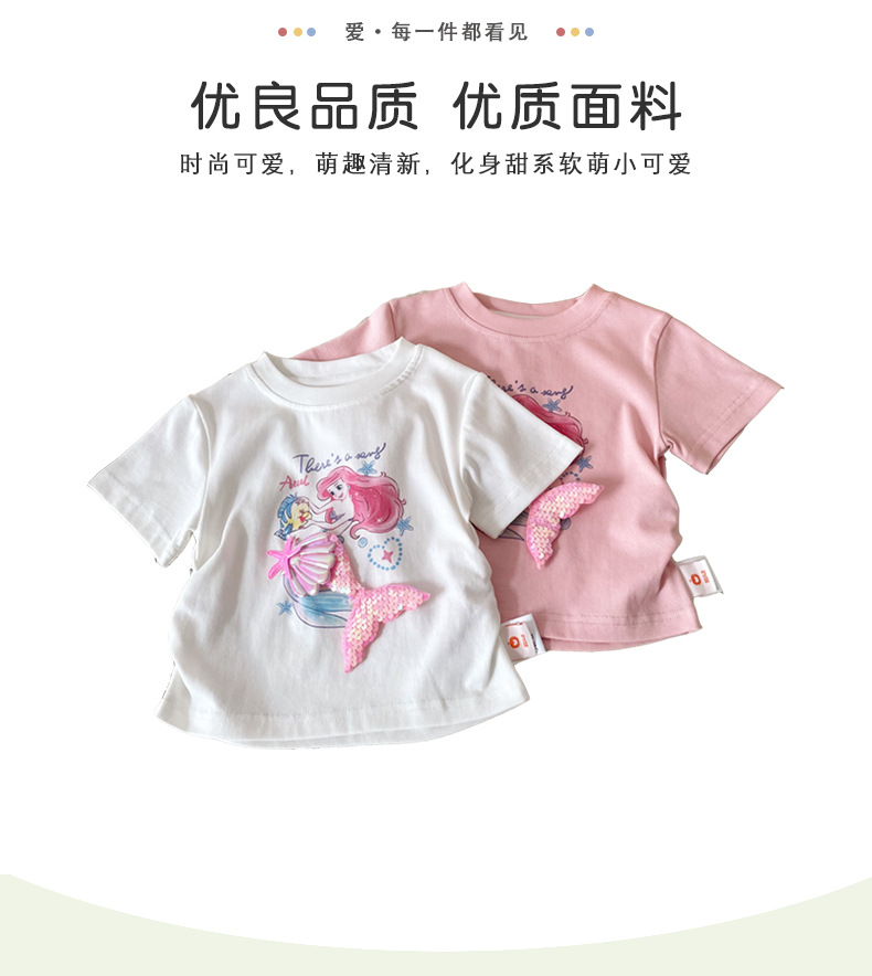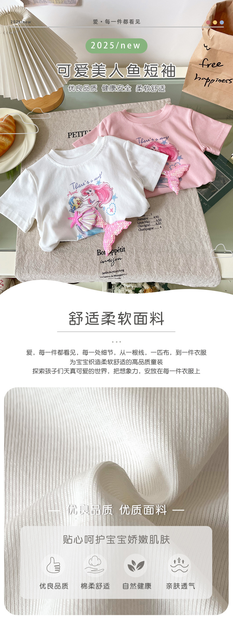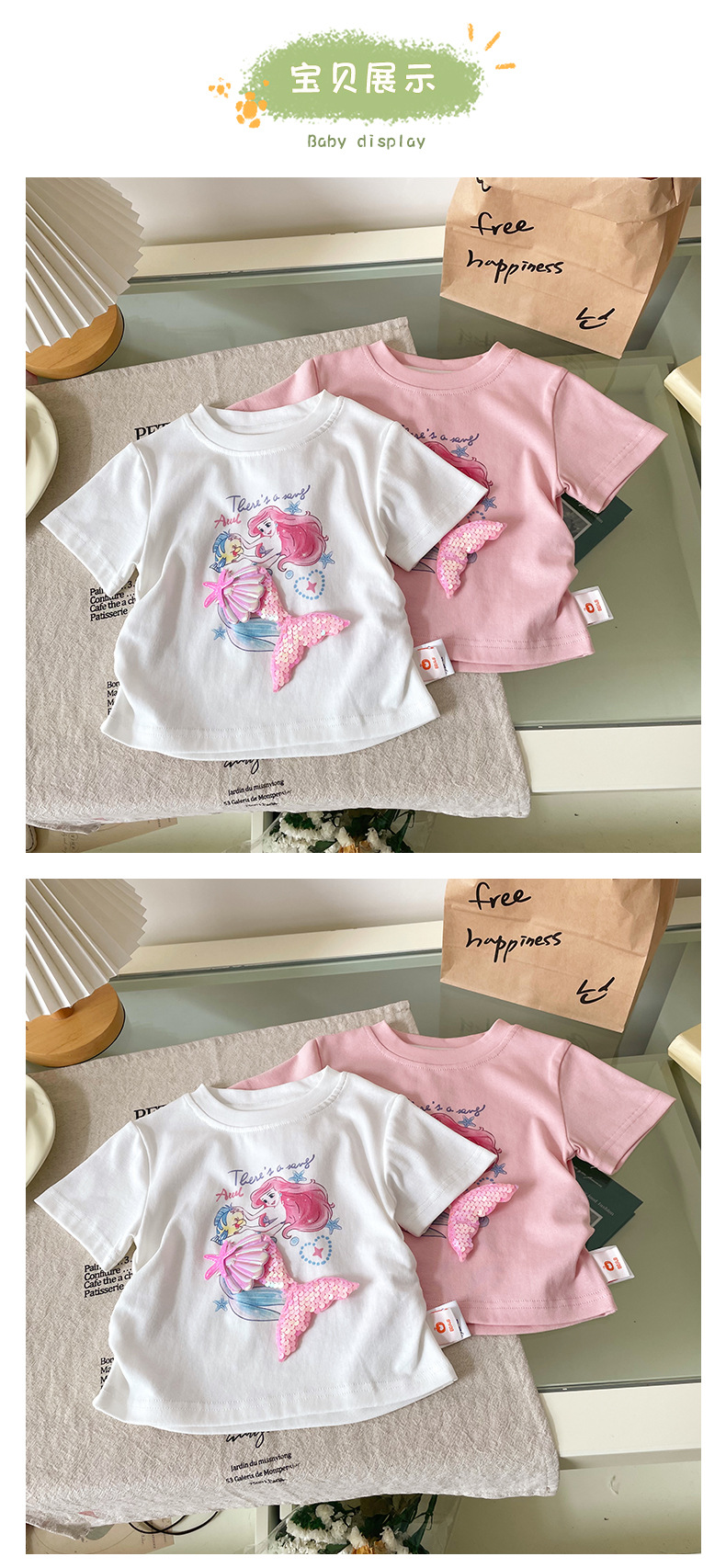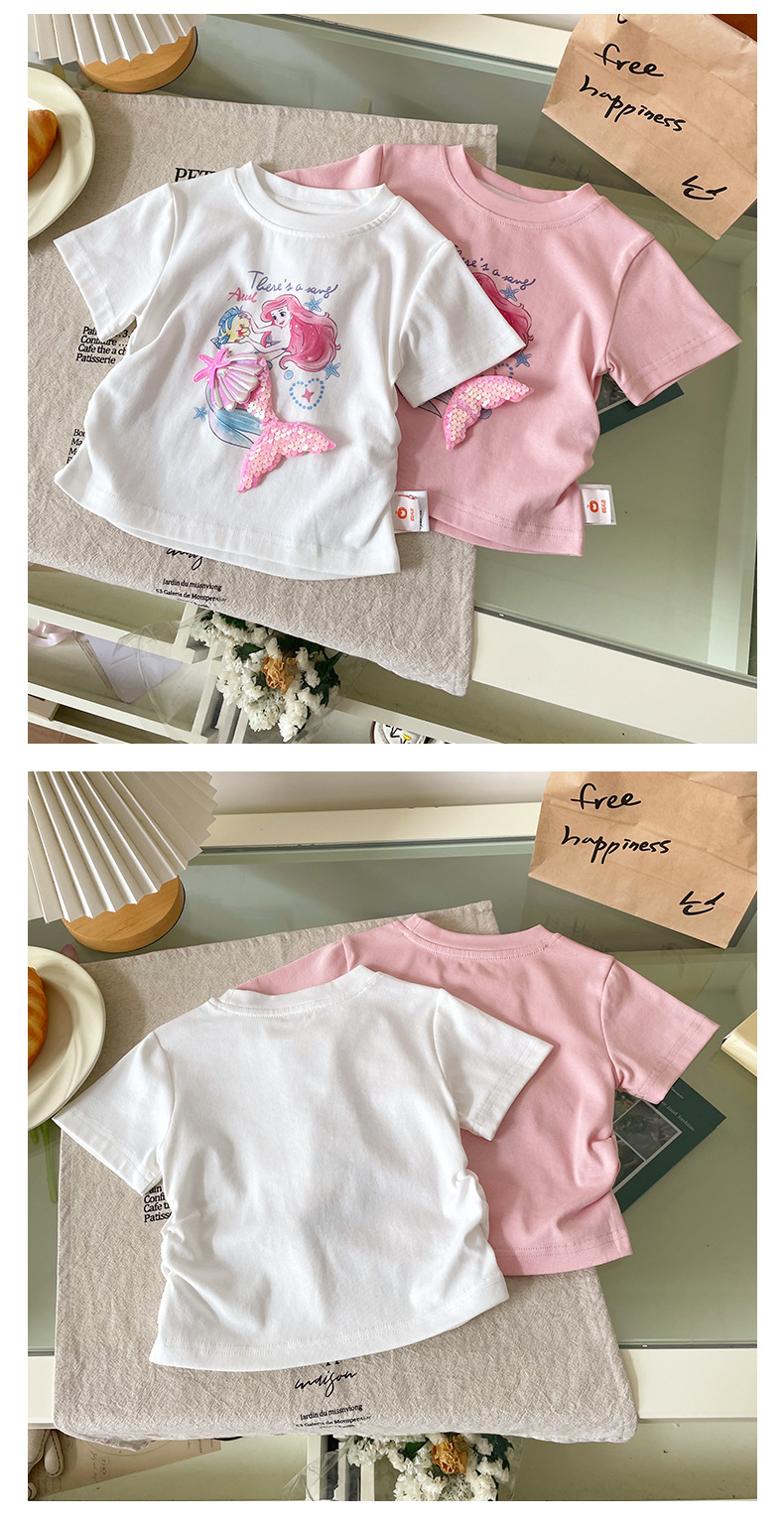 [재고] DZ25058 여자 반팔 티셔츠 2025 여름 여자 서양식 입체 만화 인어 탑스토어 가기
