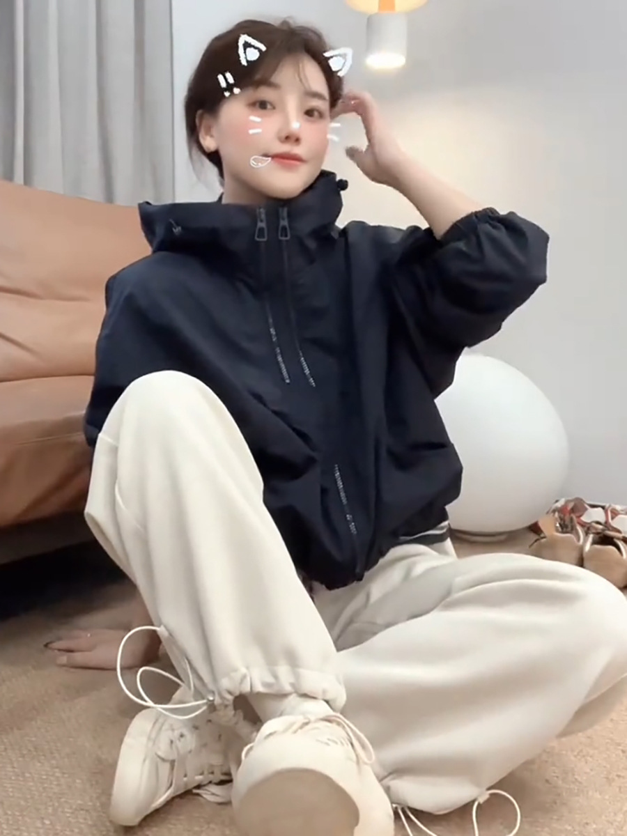 짧은 후드 재킷 여자의 봄과 가을 새로운 캐주얼 느슨한 스포츠 야구 세트 작은 재킷 탑스토어 가기