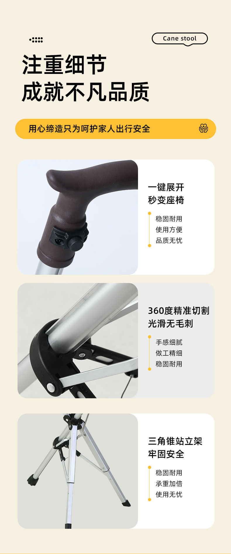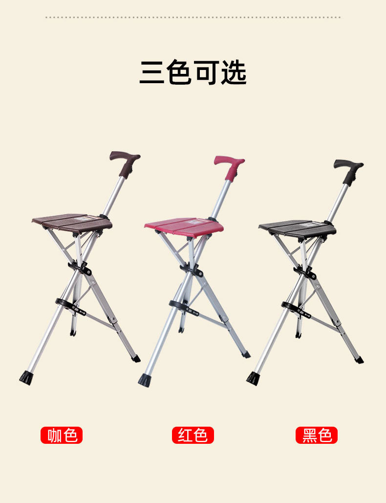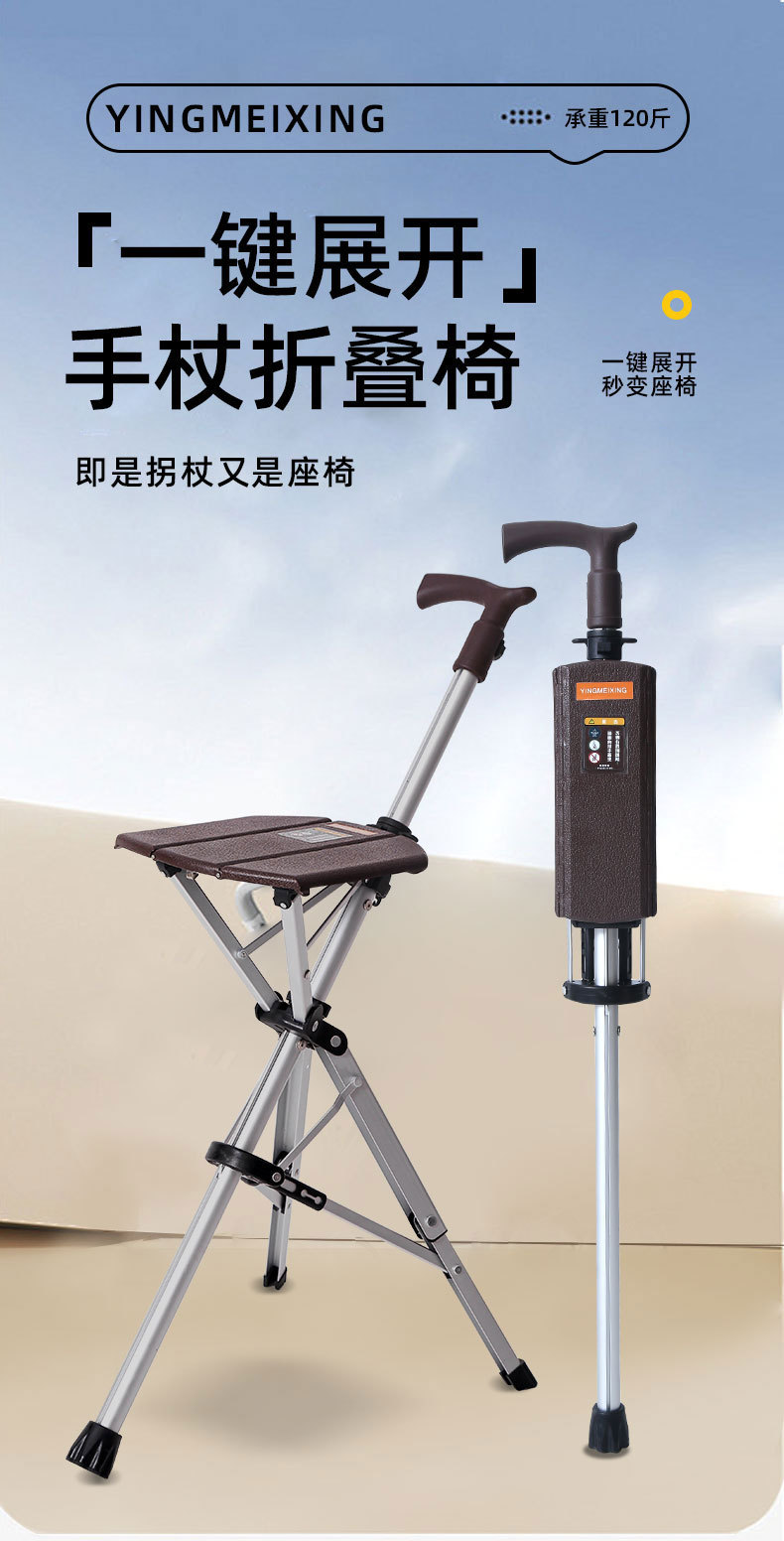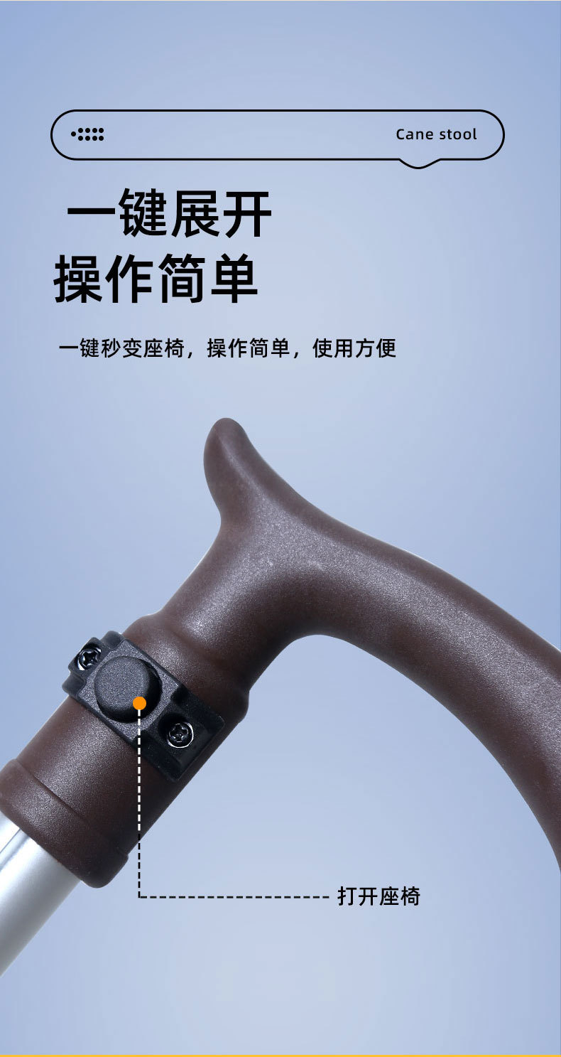 노인을위한 국경 간 지팡이 의자 휴대용 원 버튼 열린 지팡이 의자 미끄럼 방지 지팡이 접이식 의자 손 의자