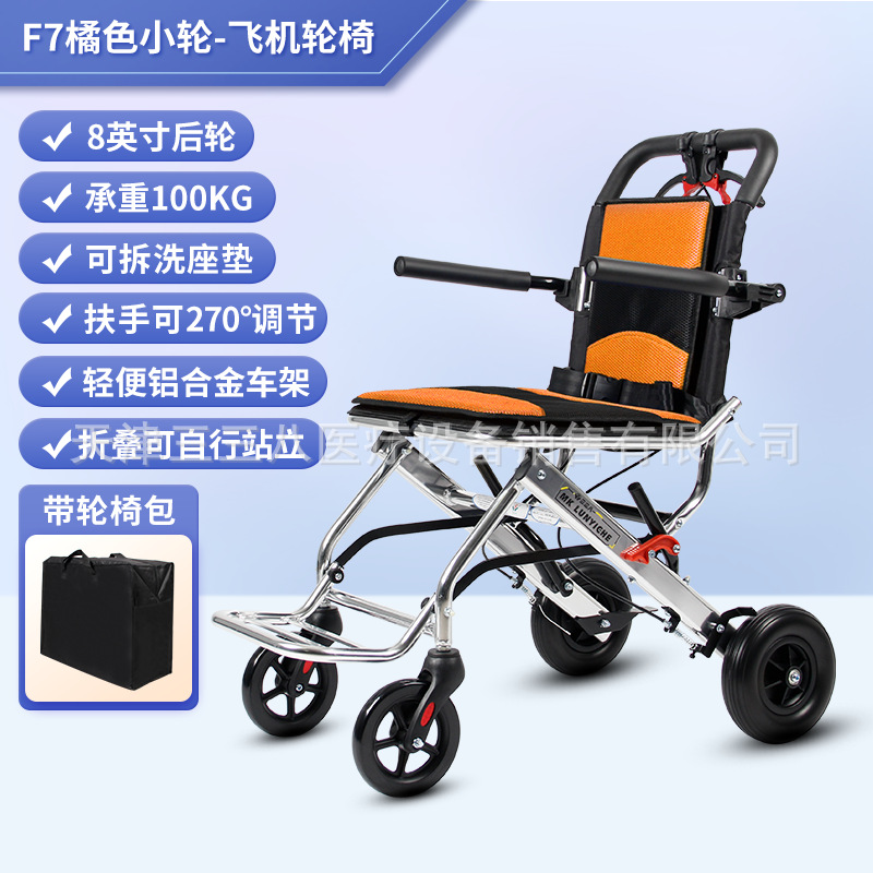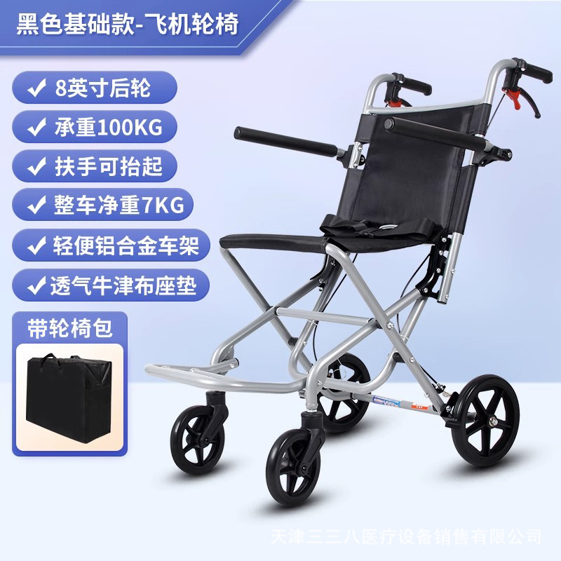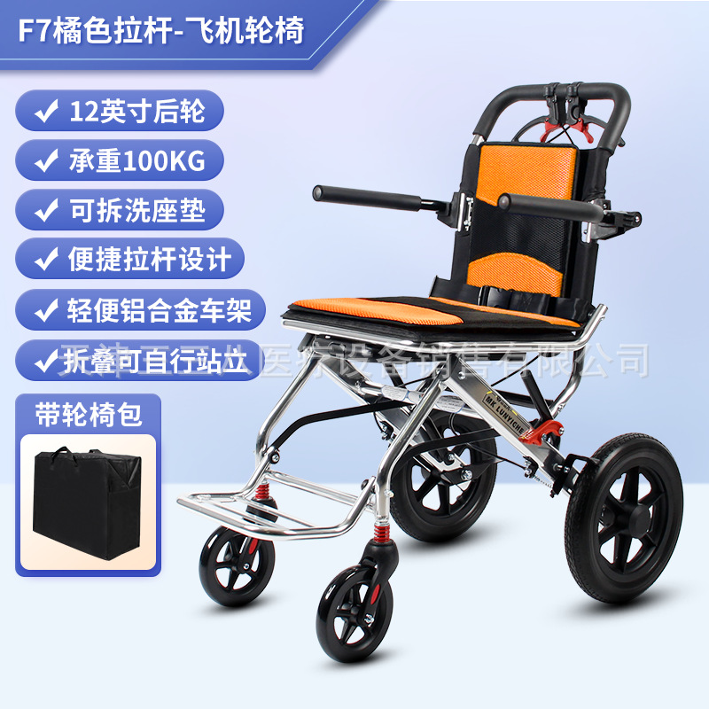 노인을위한 비행기 휠체어에 당기는 막대가있는 노인을위한 초경량 휴대용 트롤리를 접는 공장 직접 휠체어스토어 가기