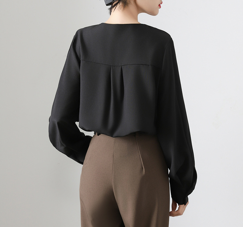 디자인 센스 블랙 긴팔 셔츠 여자의 봄과 여름 새로운 우아한 통근 불규칙한 chic 느슨한 올 매치 셔츠스토어 가기