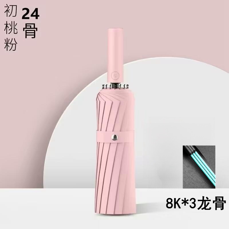 • 핑크 - 특대형 24리브 [강풍에 강한 전자동 검정색 플라스틱 우산]