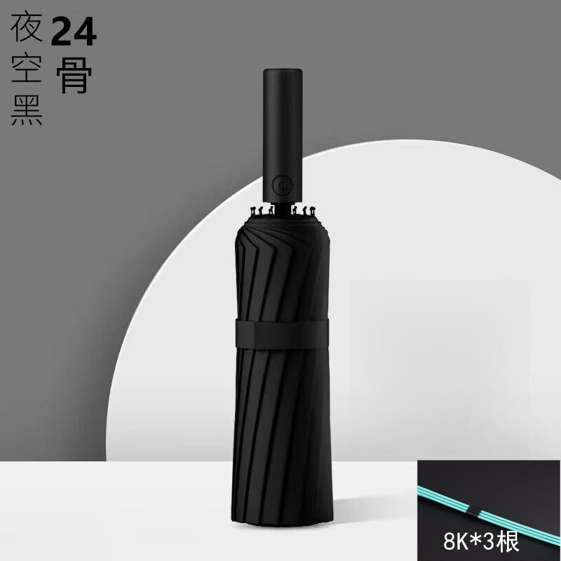 • 블랙 - 특대형 24립 [강풍에 강한 전자동 검정색 플라스틱 우산]