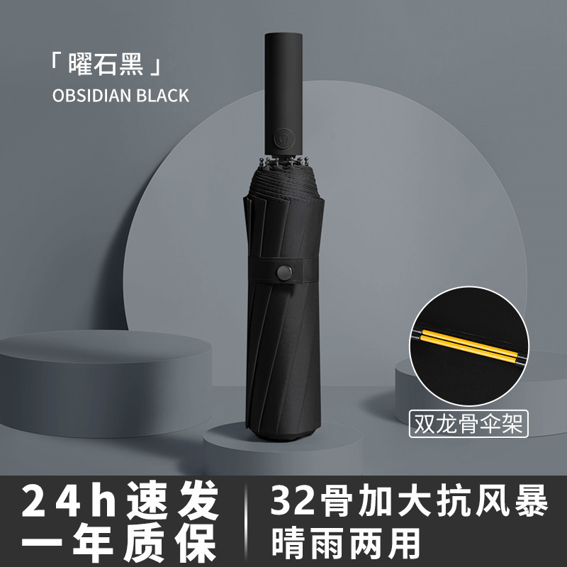 • 블랙 - 특대형 32리브 [강풍에 강한 전자동 우산]