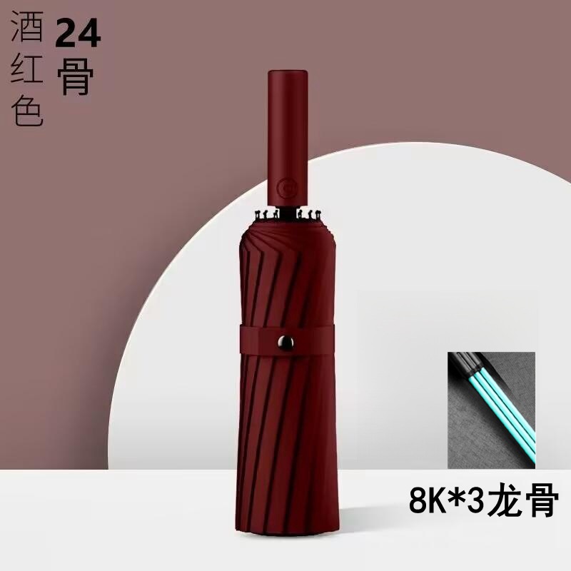 • 버건디 - 초대형 24립 [강풍에 강한 전자동 검정색 플라스틱 우산]