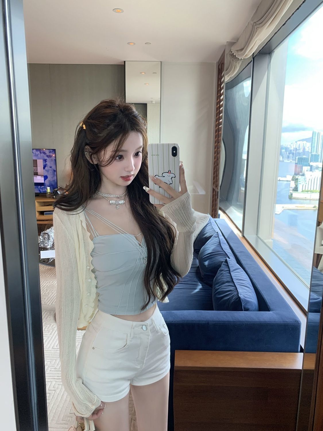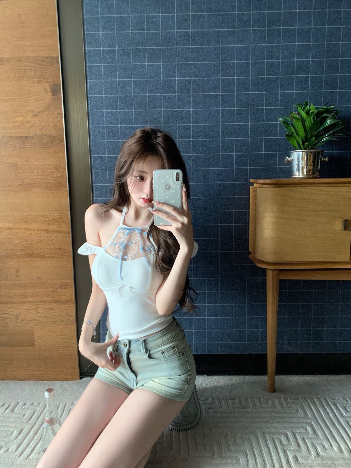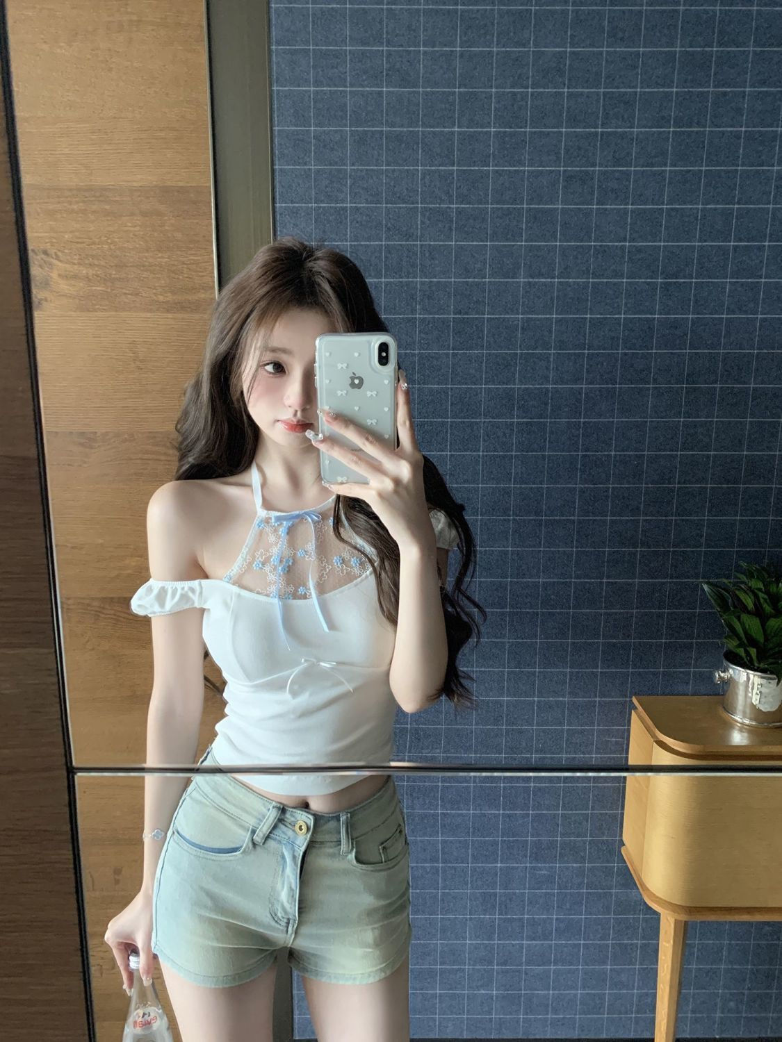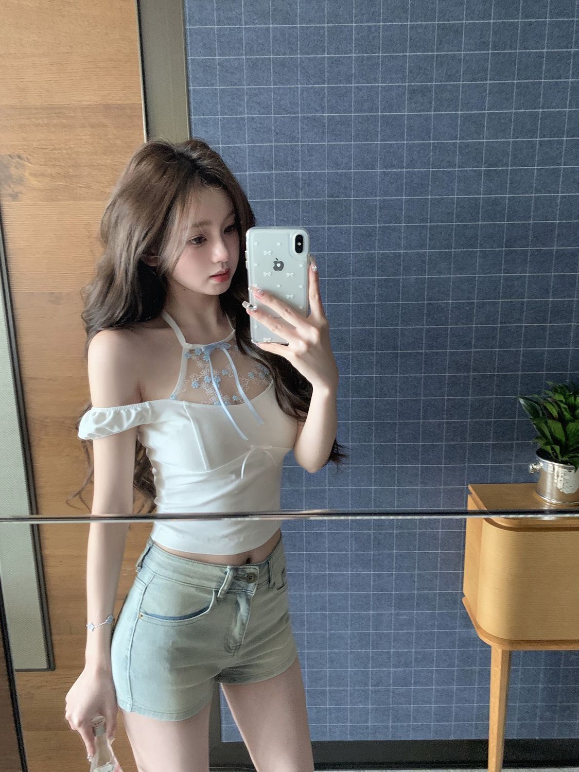 밝은 색 씻은 스파이스 소녀 높은 허리 데님 반바지 여성의 여름 복고풍 스트레치 단단한 몸-슬리밍 A-모양의 뜨거운 바지스토어 가기