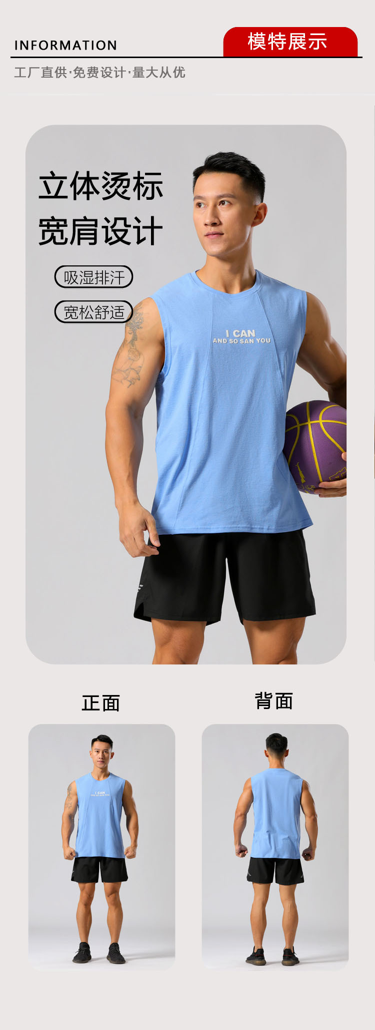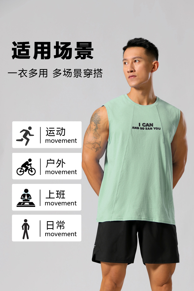 夏季印花运动棉背心男 宽松跑步速干无袖坎肩健身篮球训练服上衣