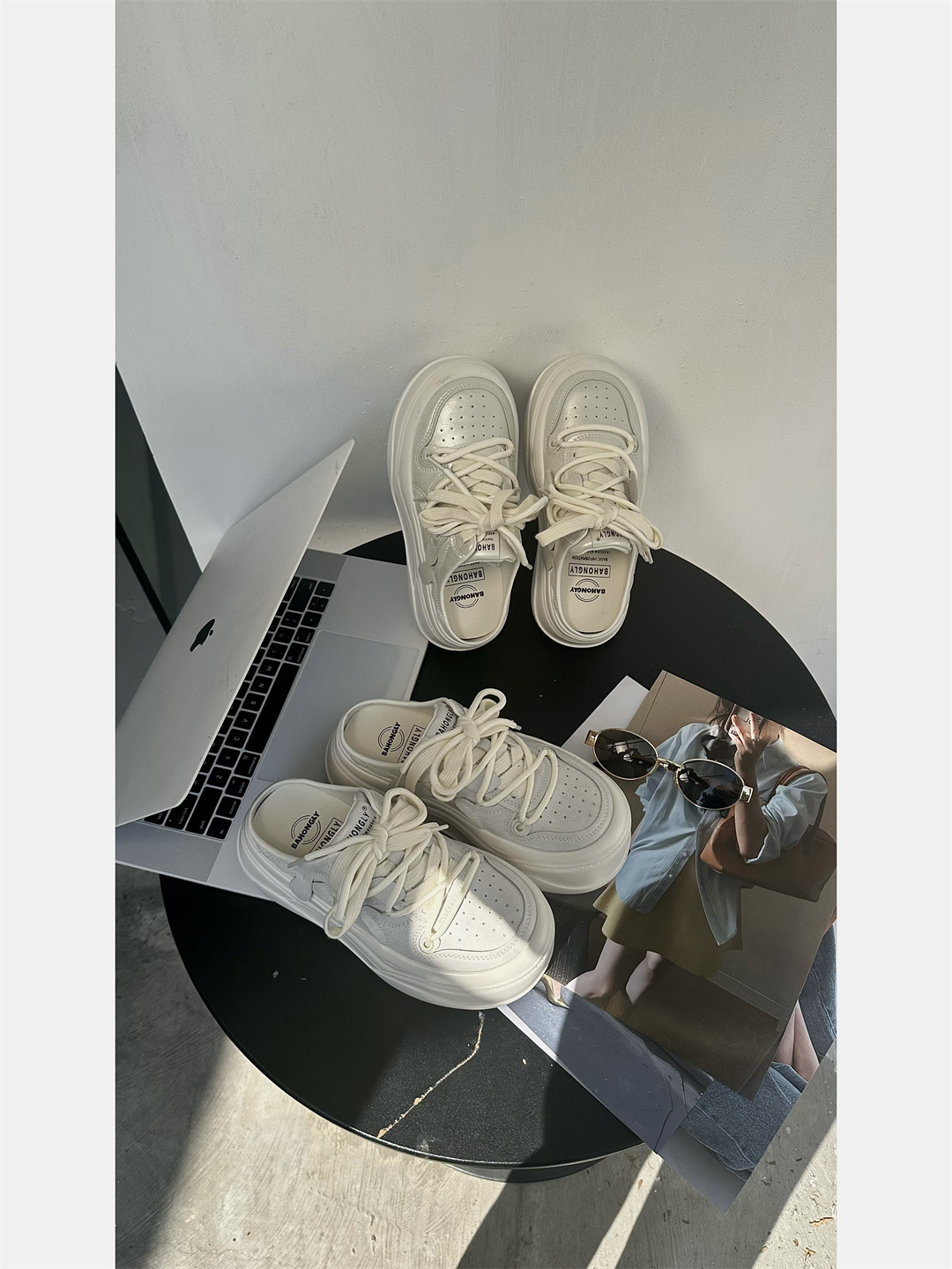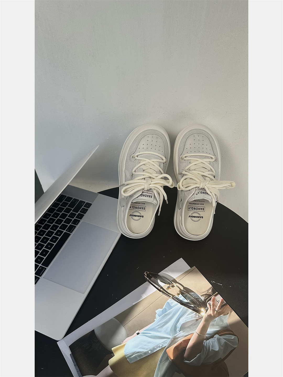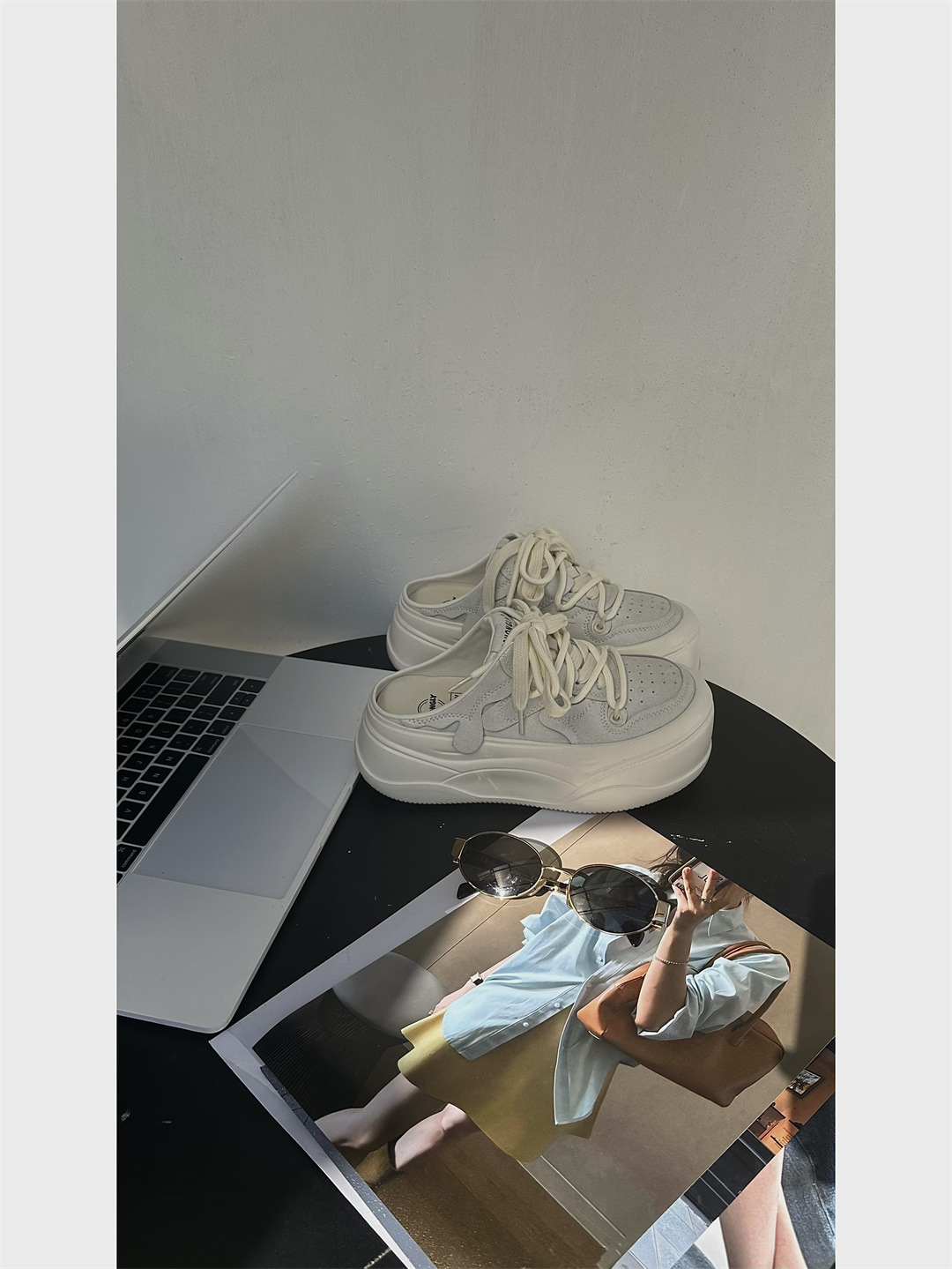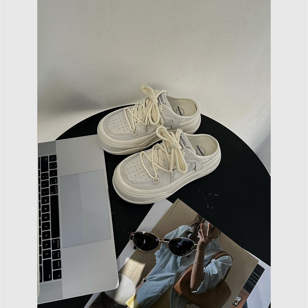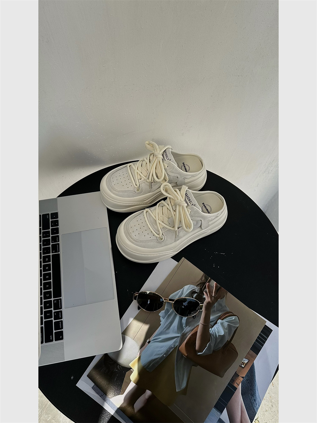 2025 슈퍼 파이어는 반 슬리퍼 두꺼운 바닥 바오 터우 엄지 발가락 신발 가죽 증가 가벼운 외부 착용 게으른 운동화