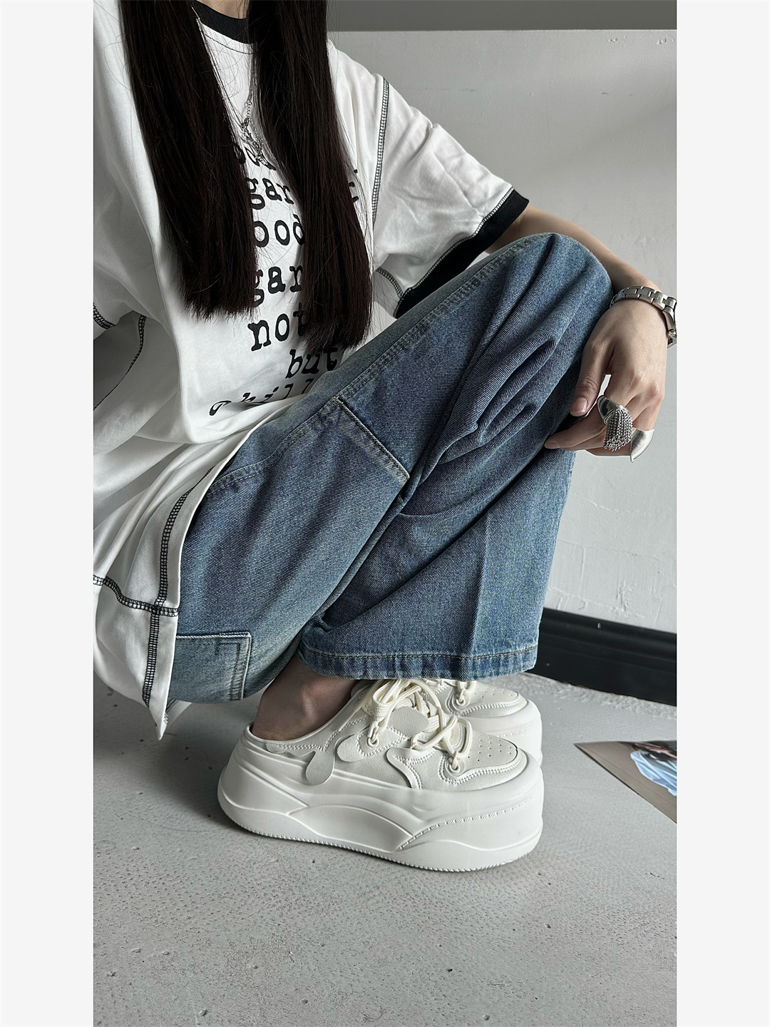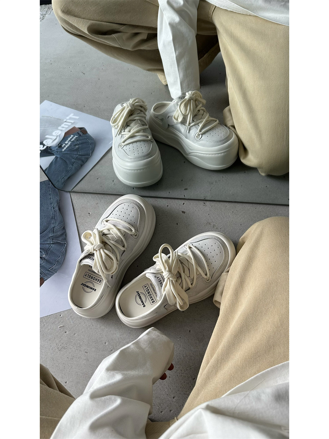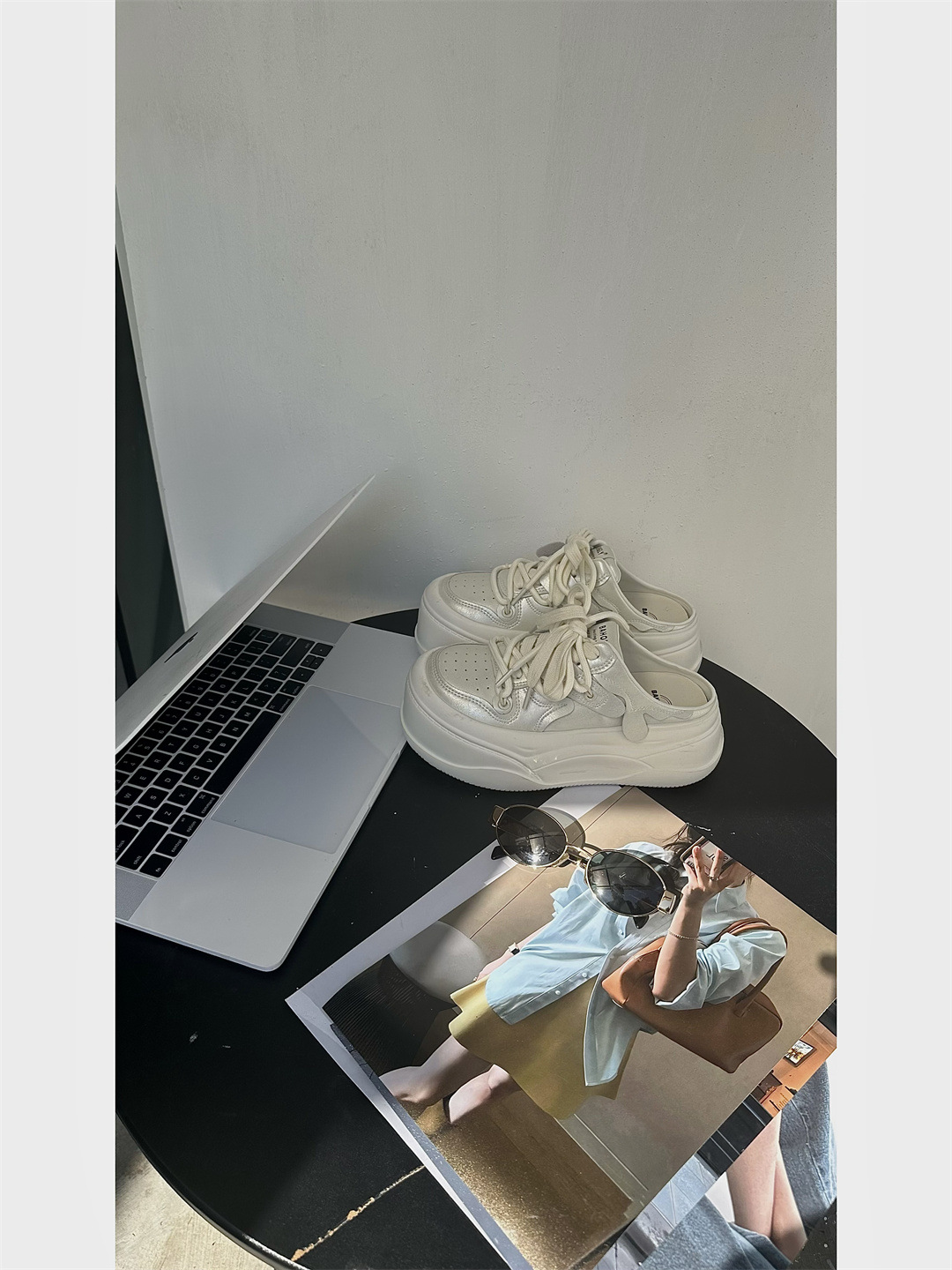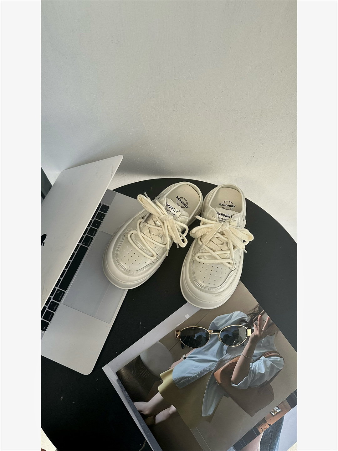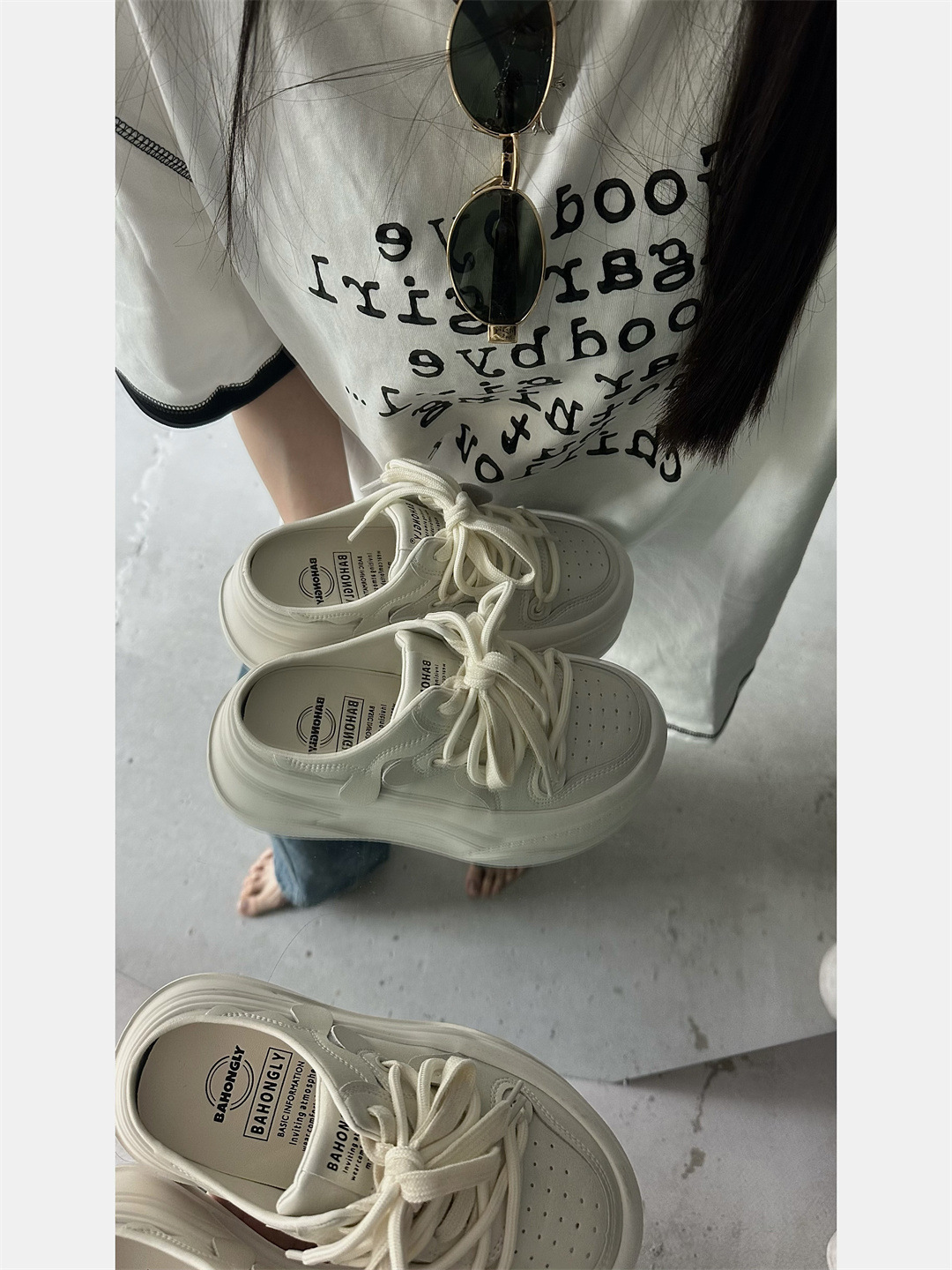 2025 슈퍼 파이어는 반 슬리퍼 두꺼운 바닥 바오 터우 엄지 발가락 신발 가죽 증가 가벼운 외부 착용 게으른 운동화