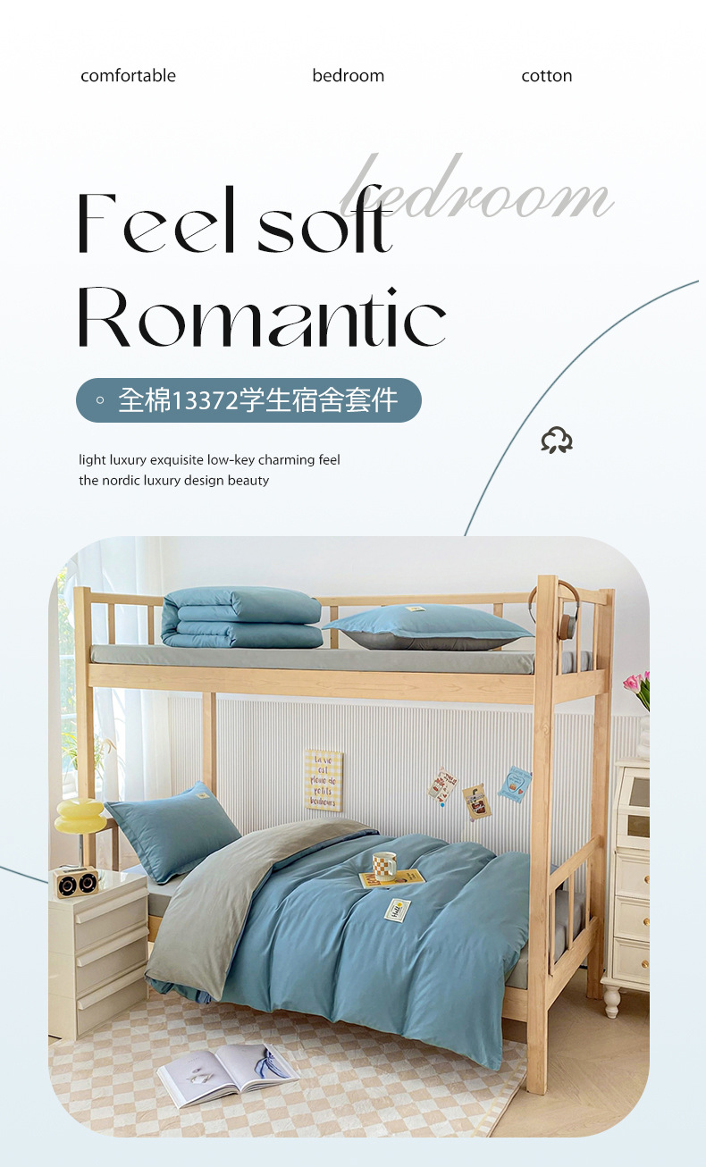 • 면 학생 기숙사 3종 세트(이불커버+시트+베갯잇)