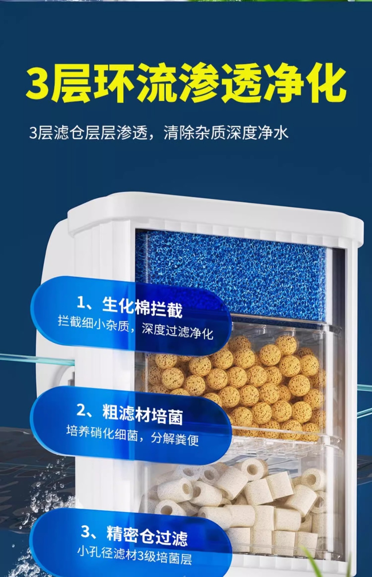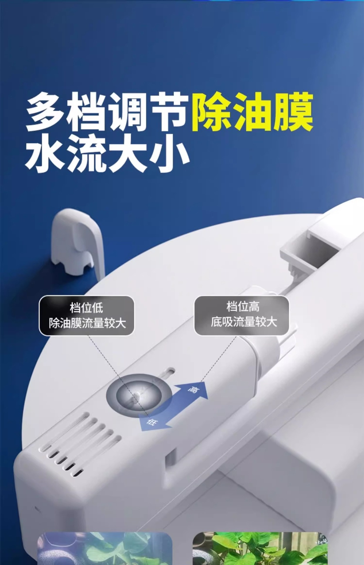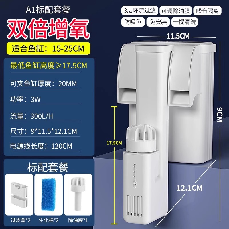 미친 수생식물 소형 수조 벽걸이형 필터, 기름막 제거, 순환, 산소 공급 및 정수 3-in-1 필터