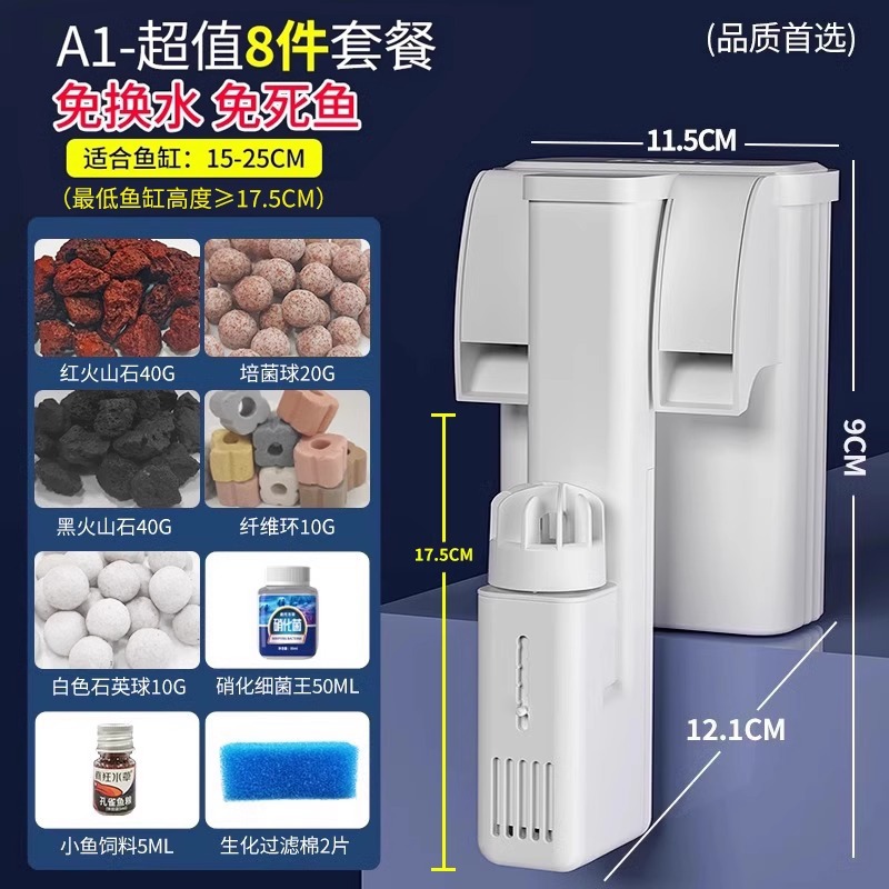 미친 수생식물 소형 수조 벽걸이형 필터, 기름막 제거, 순환, 산소 공급 및 정수 3-in-1 필터스토어 가기