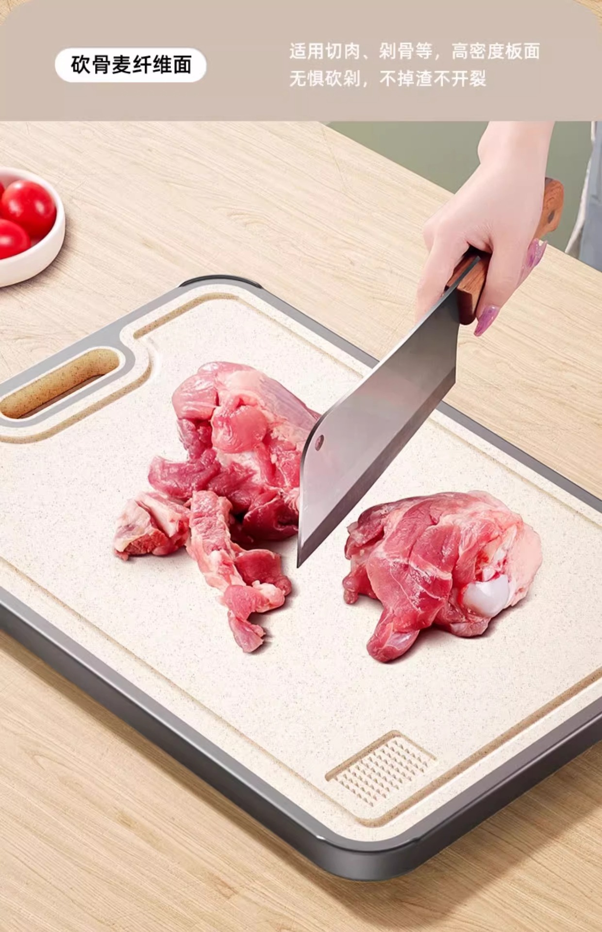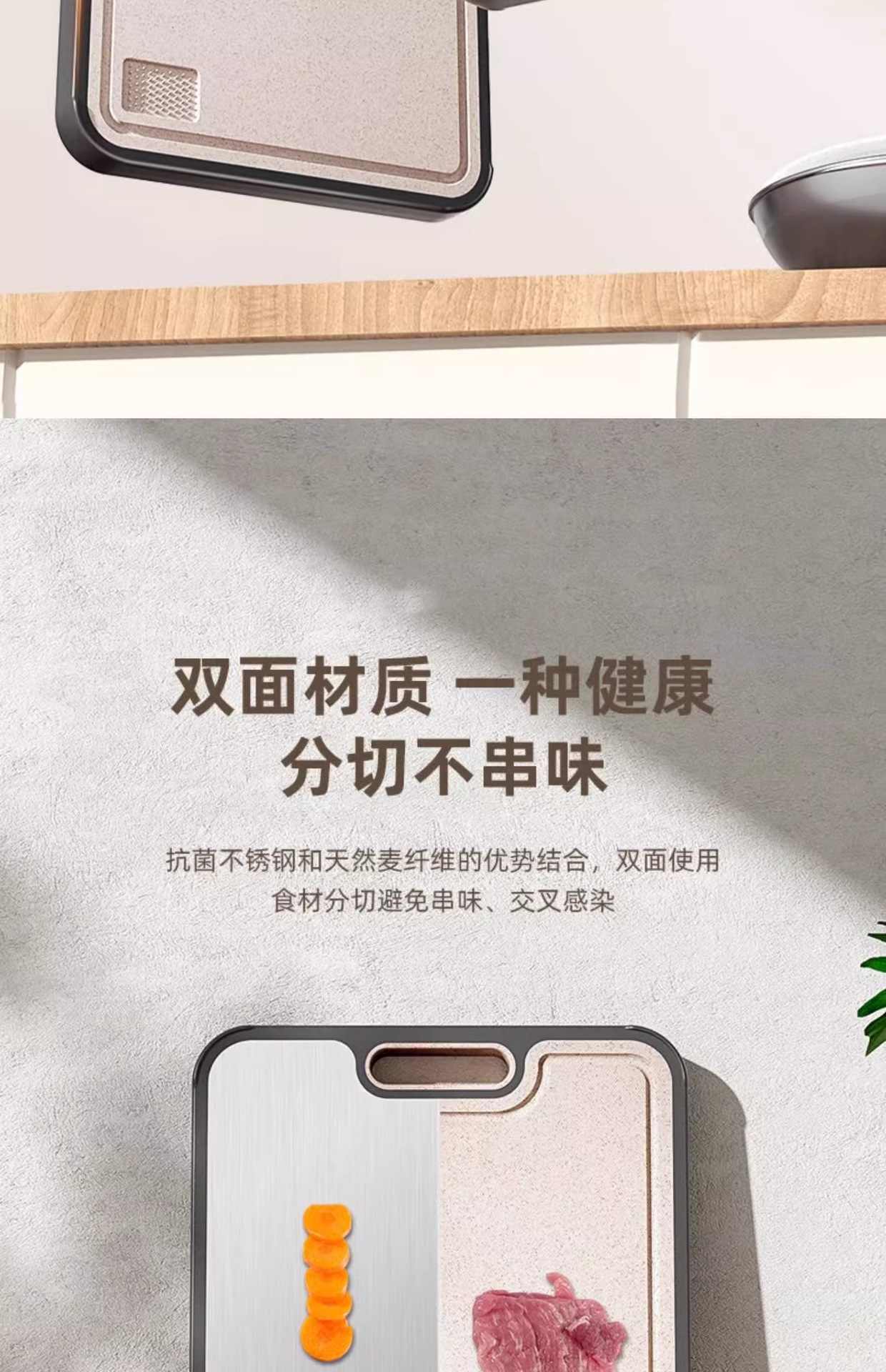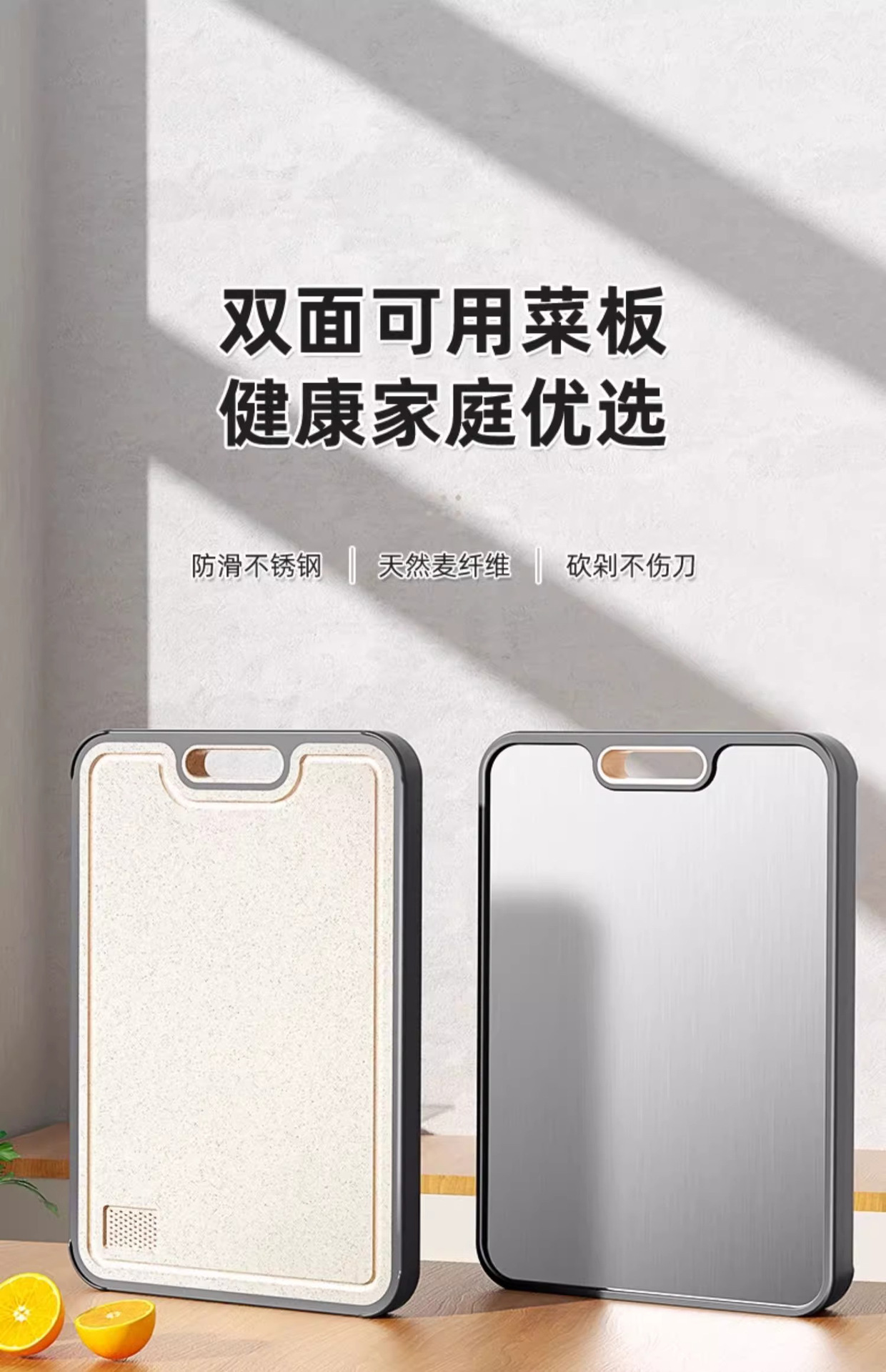 新款麦秸秆不锈钢菜板 跨境爆款双面麦秸秆PP可用切菜板厨房砧板