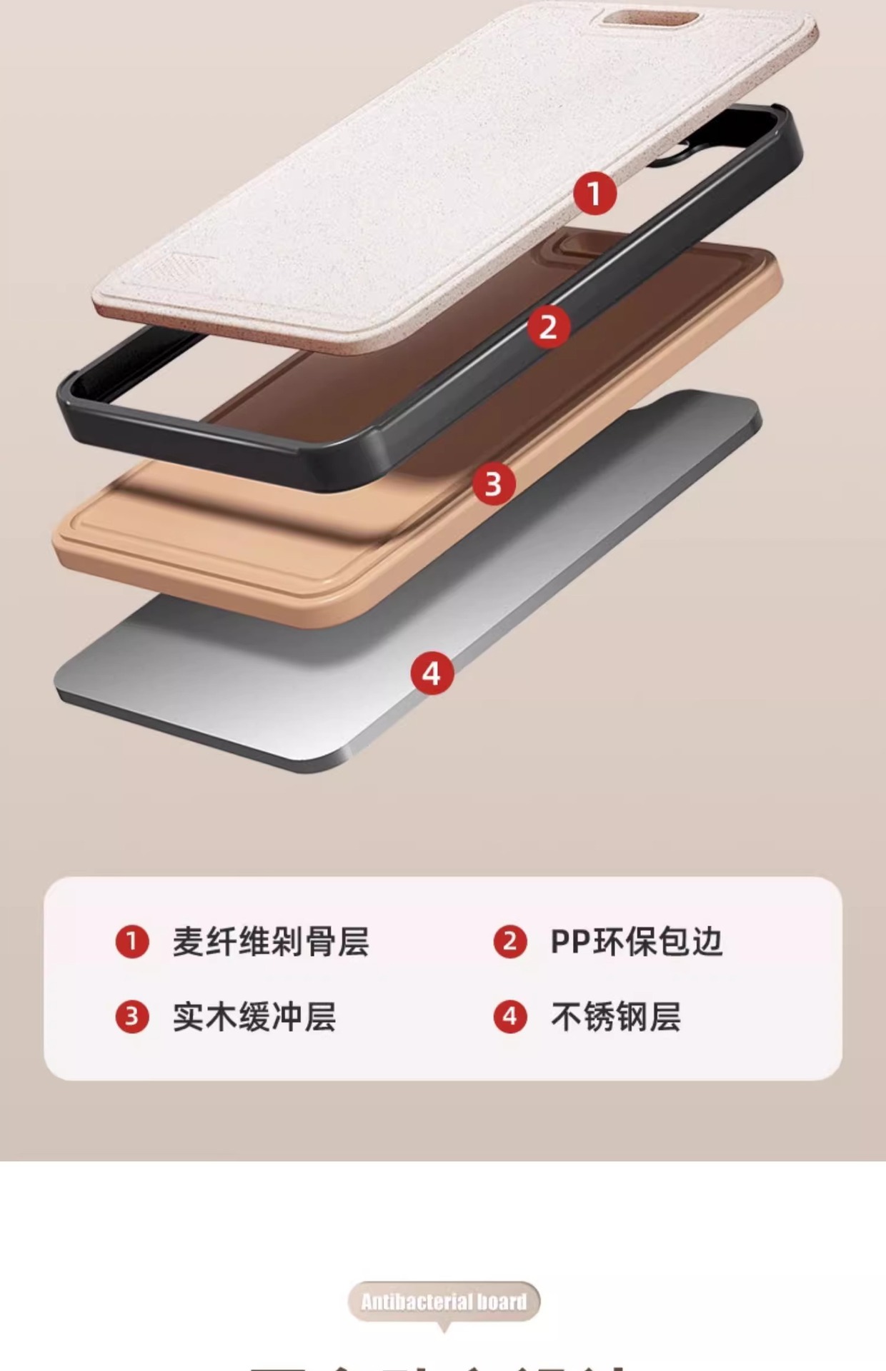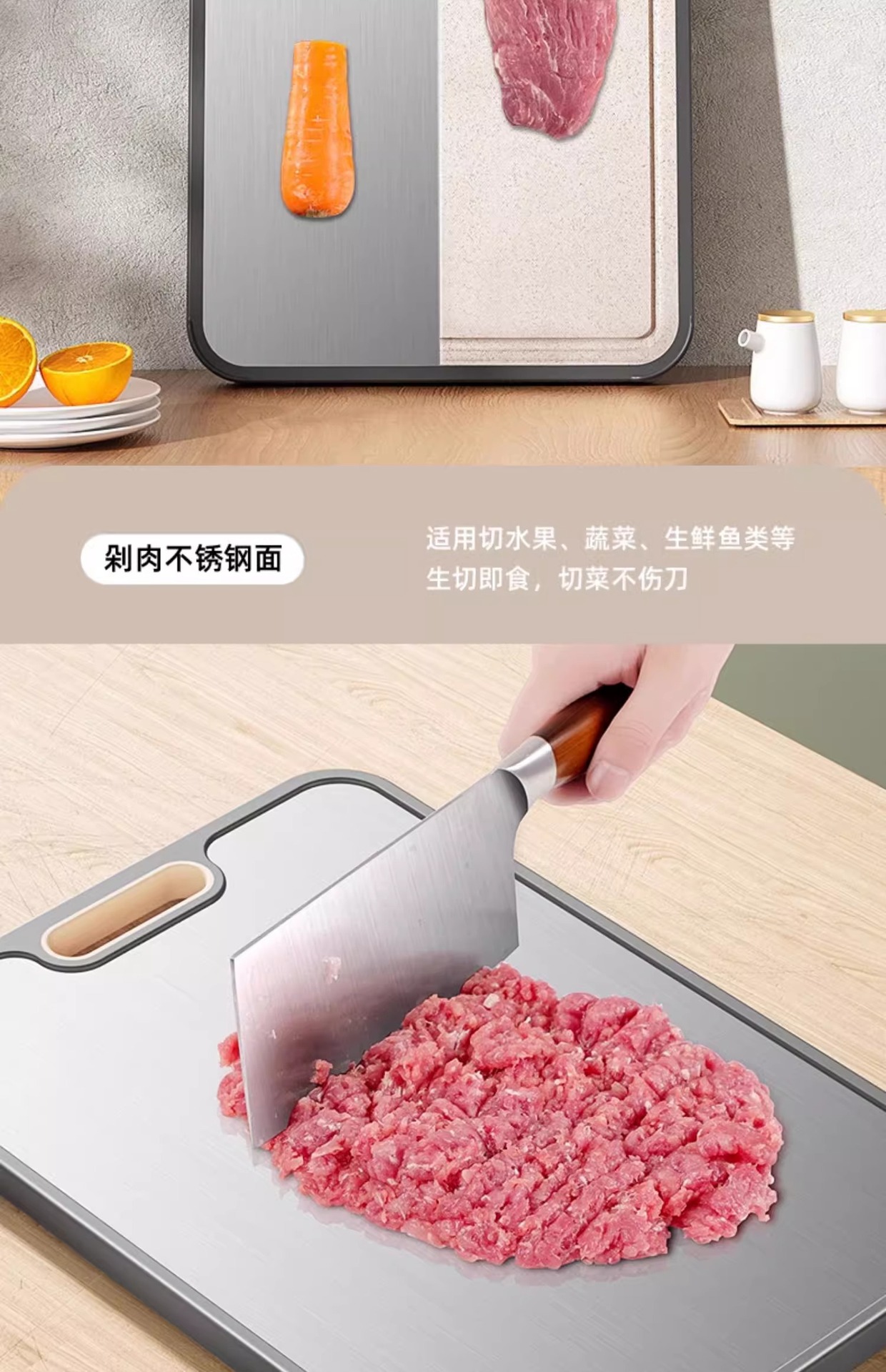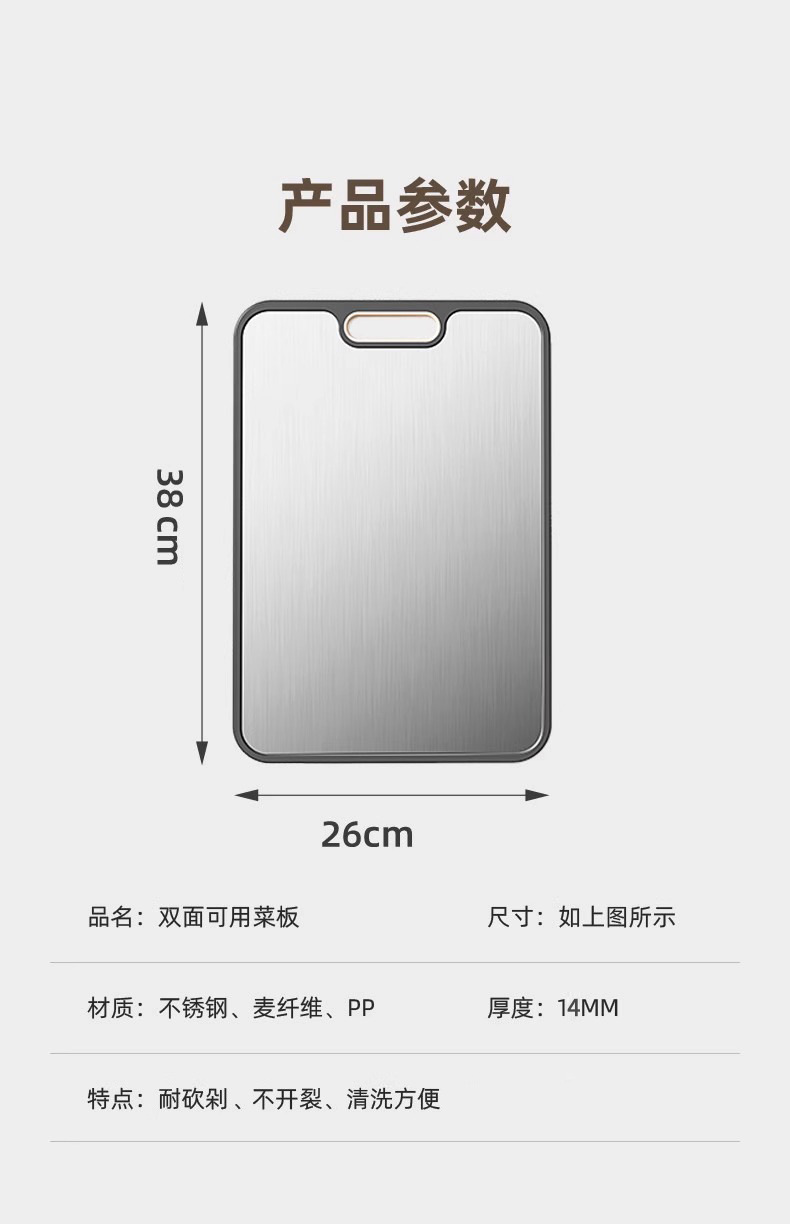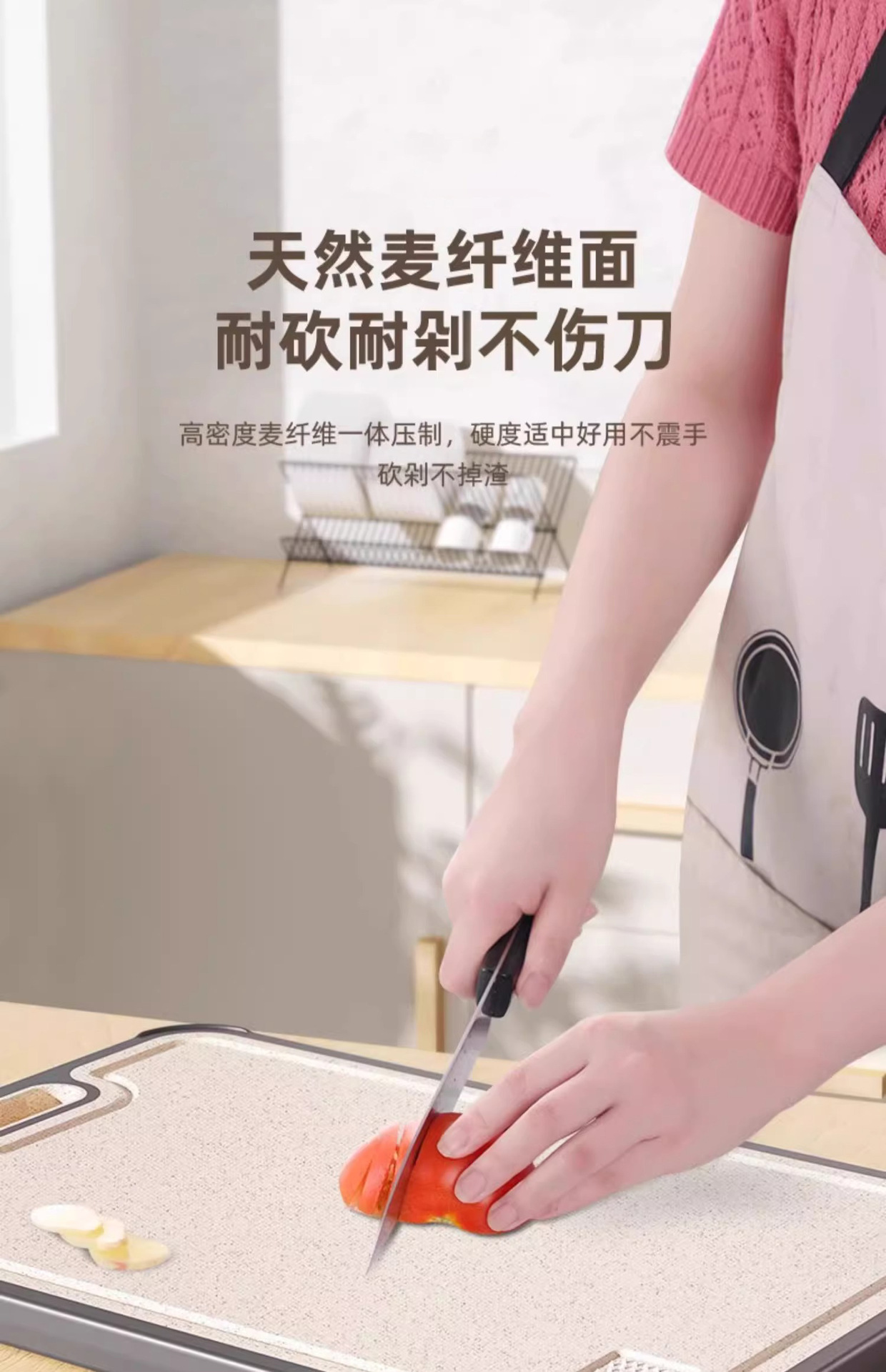 新款麦秸秆不锈钢菜板 跨境爆款双面麦秸秆PP可用切菜板厨房砧板