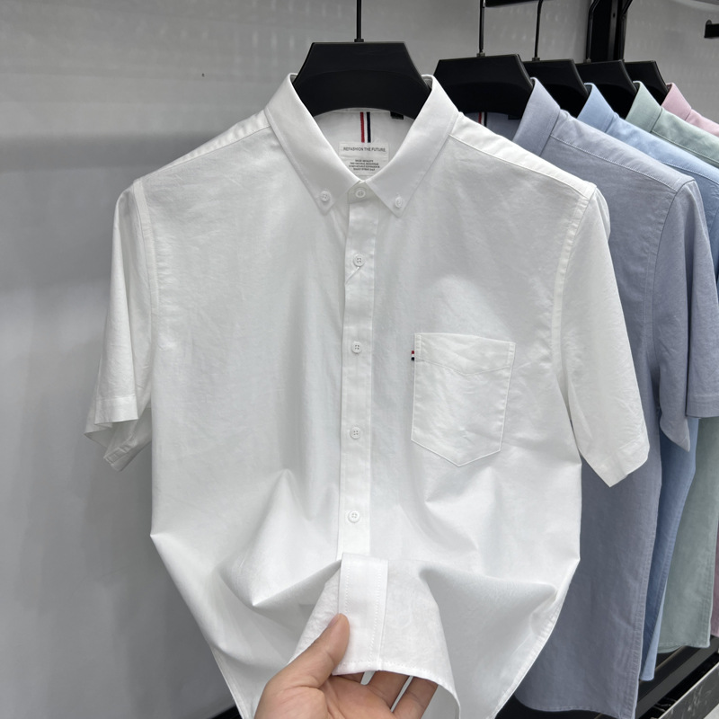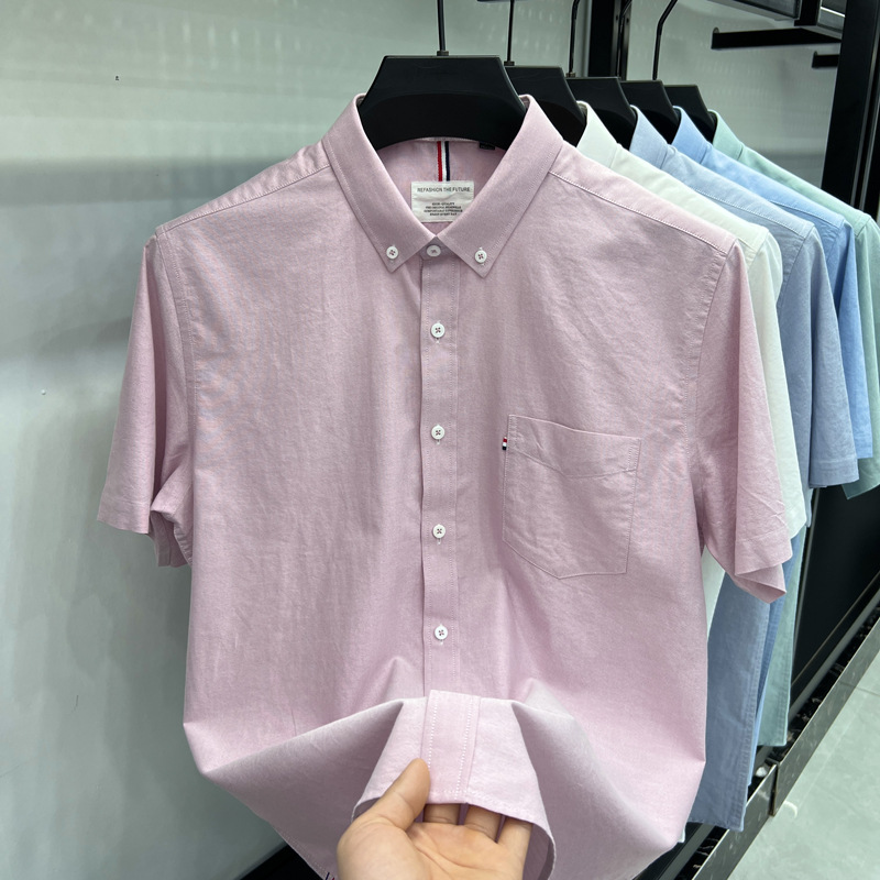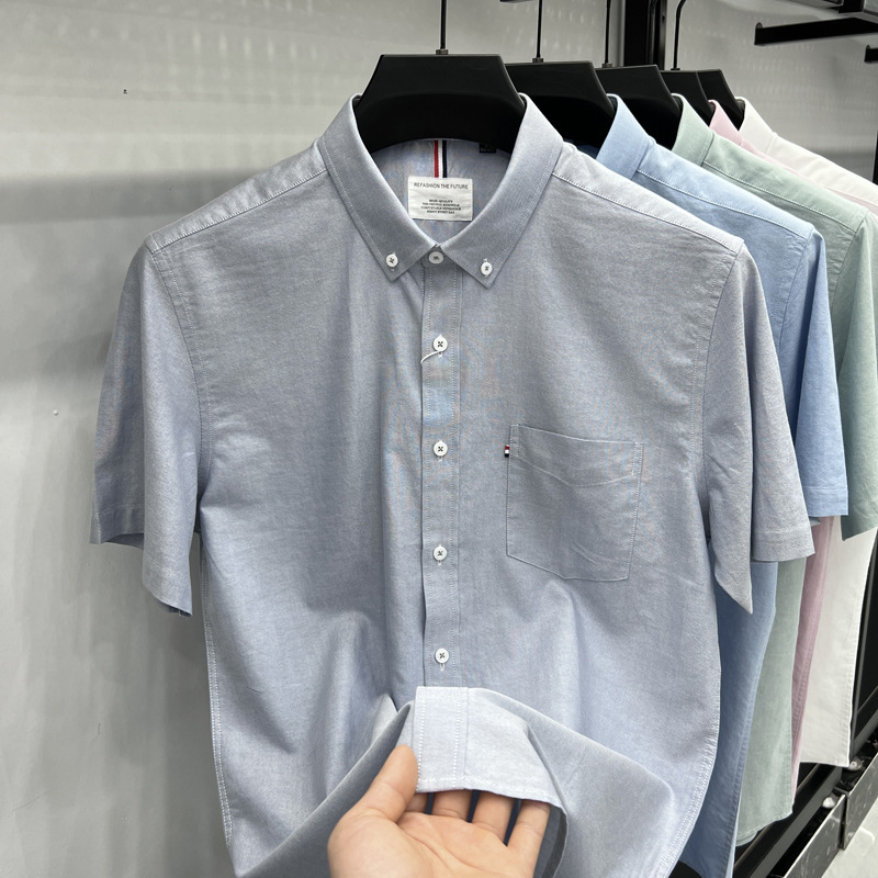 고급 미국 토미 토미 반팔 셔츠 남자 봄과 여름 비즈니스 캐주얼 셔츠 퓨어 코튼 옥스포드 스피닝 탑