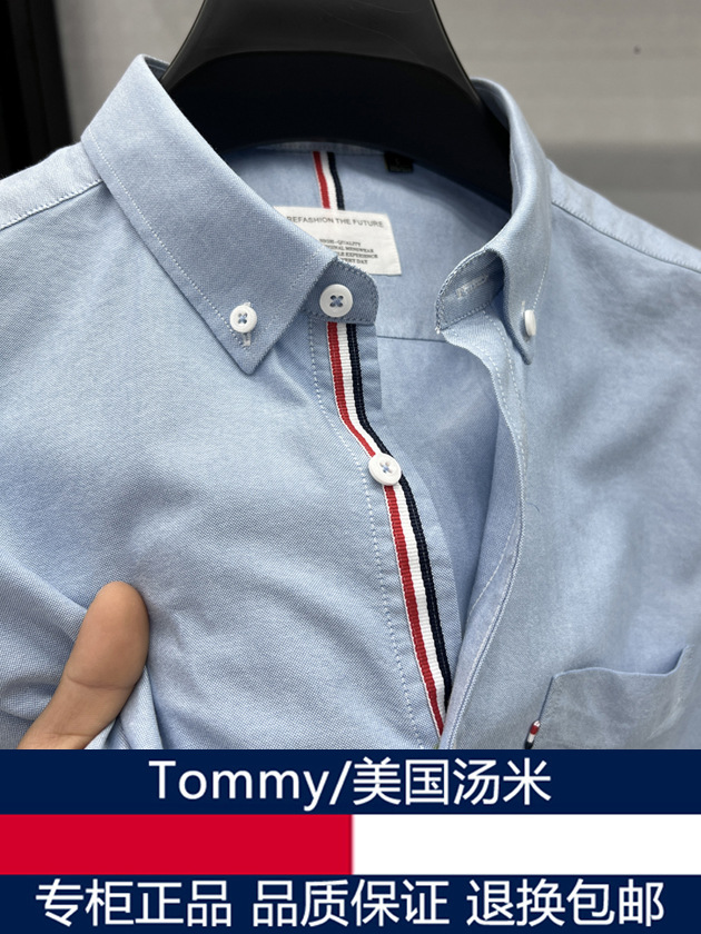 고급 미국 토미 토미 반팔 셔츠 남자 봄과 여름 비즈니스 캐주얼 셔츠 퓨어 코튼 옥스포드 스피닝 탑스토어 가기