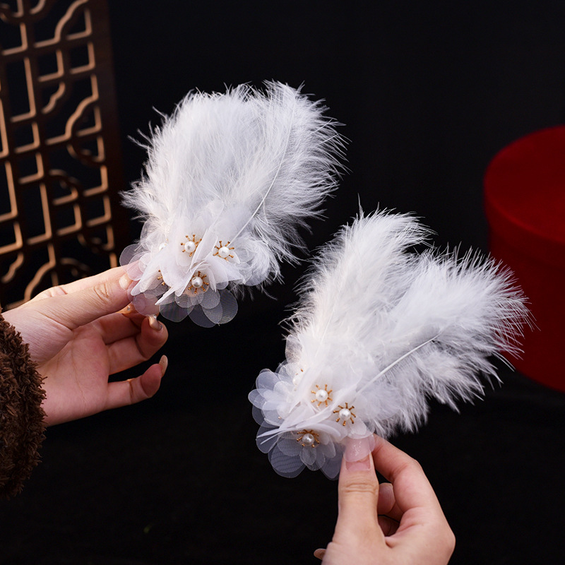 • 흰색 깃털 머리핀 한 쌍