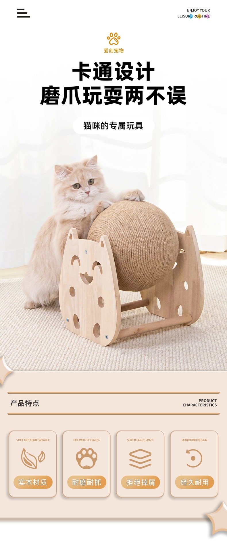 단단한 나무 고양이 장난감 사이 잘 고양이 스크래치 공 내마모성 스크래치 방지 애완 동물 장난감 고양이 스크래치 보드 셀프 하이 클로 연삭 통합 애완 동물 사용