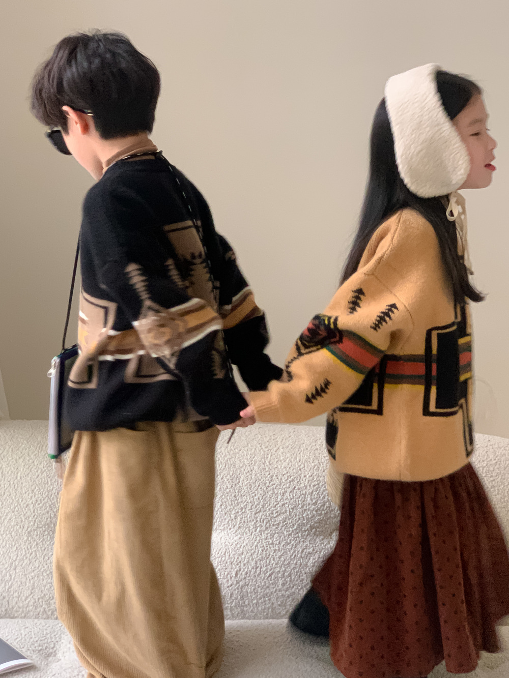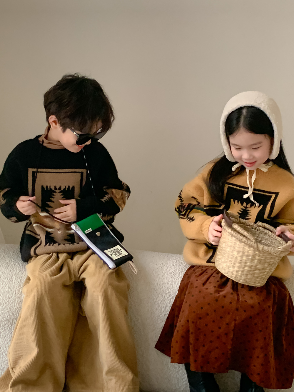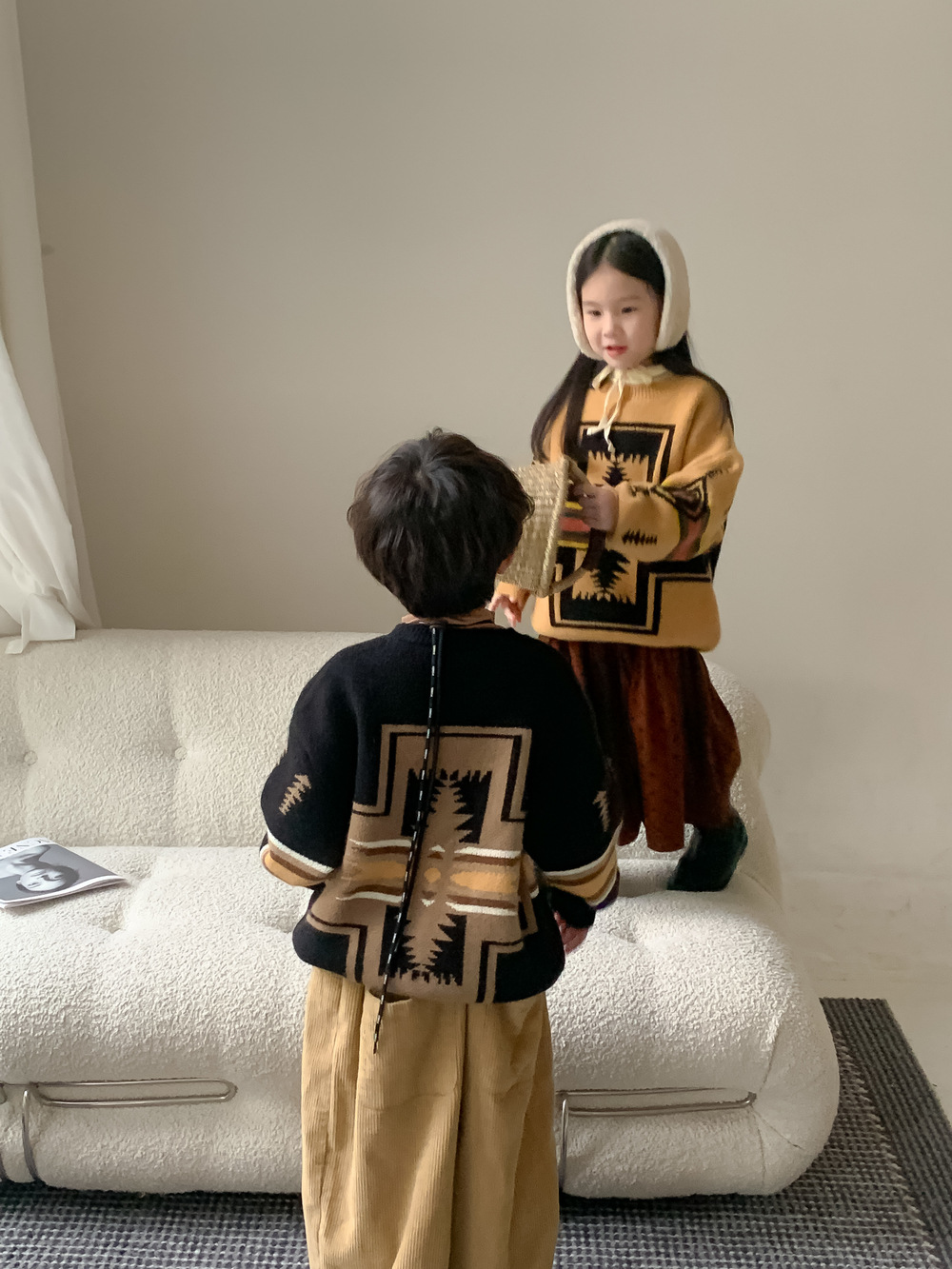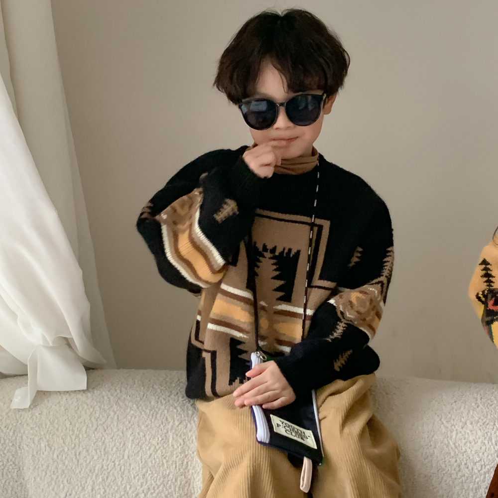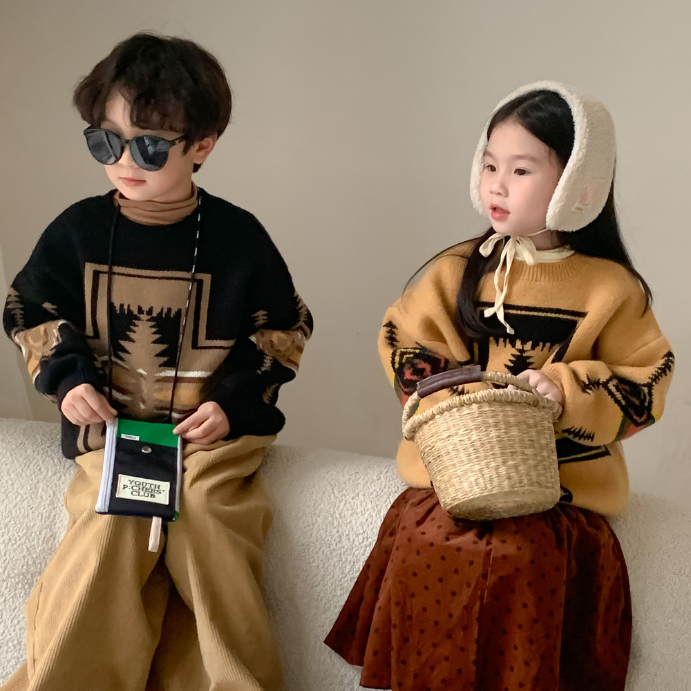 어린이 스웨터 2025 봄 소년과 소녀 한국 복고풍 니트 탑 어린이 캐주얼 두꺼운 둥근 목 스웨터스토어 가기