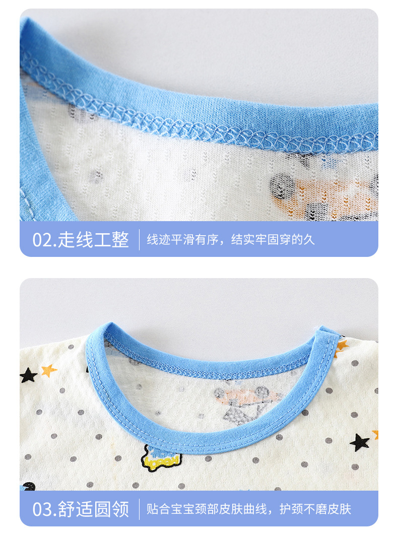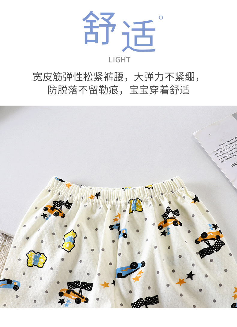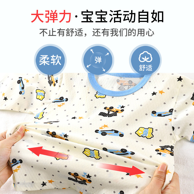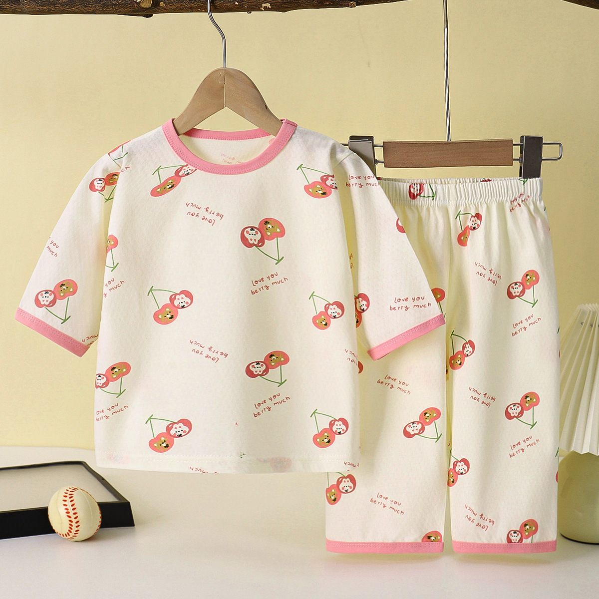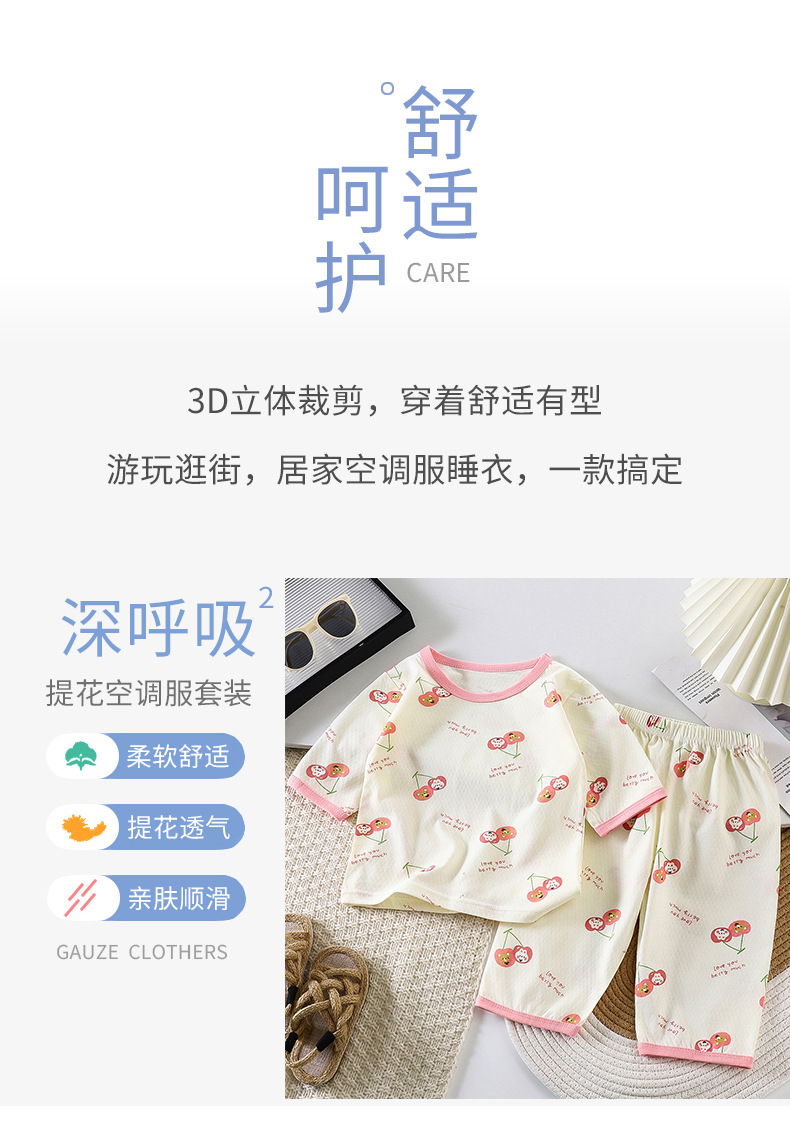 여름 새 소년 에어컨 의류 순수 코튼 자카드 소녀의 집 옷 둥근 목 인쇄 7 점 어린이 잠옷 세트스토어 가기