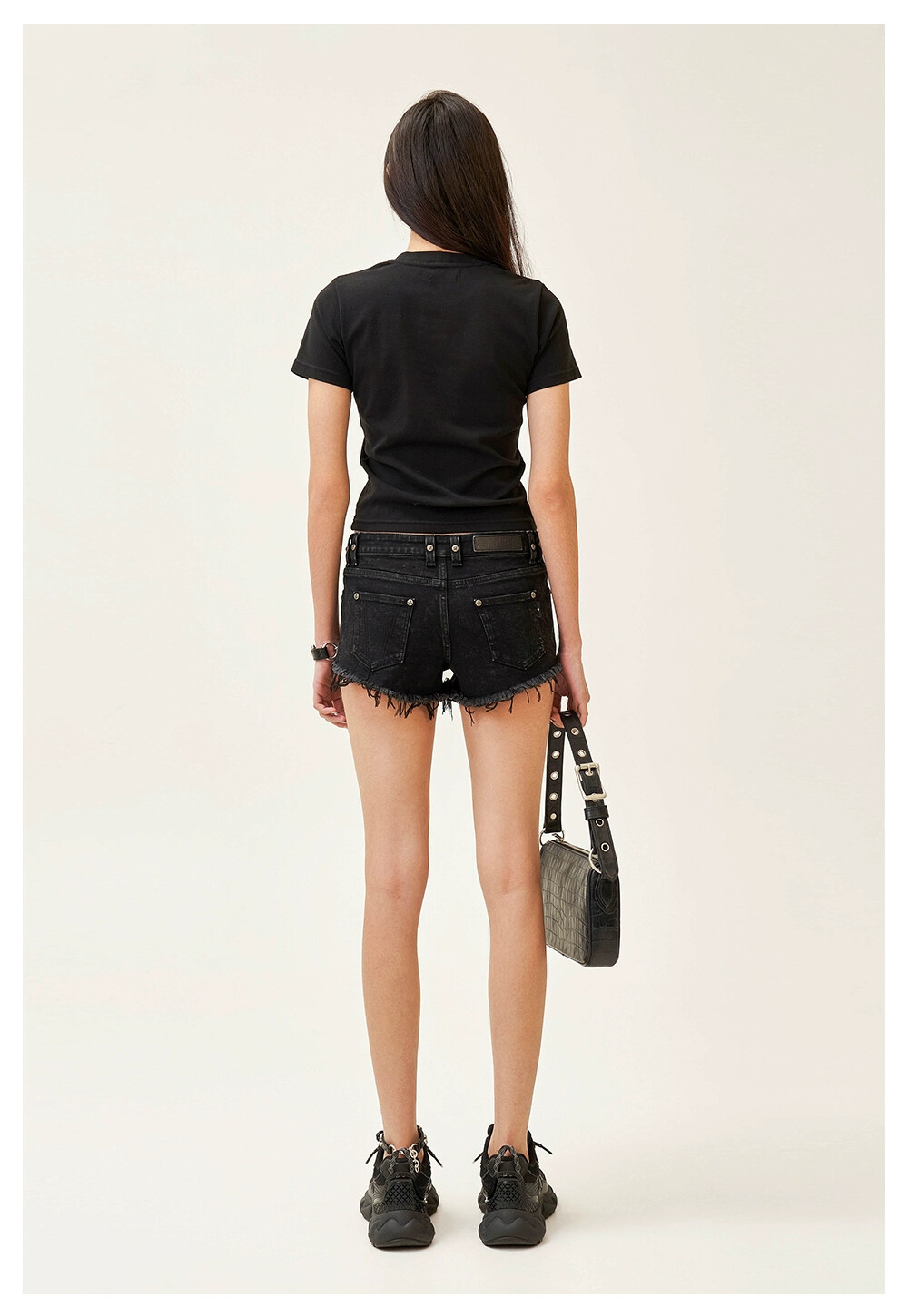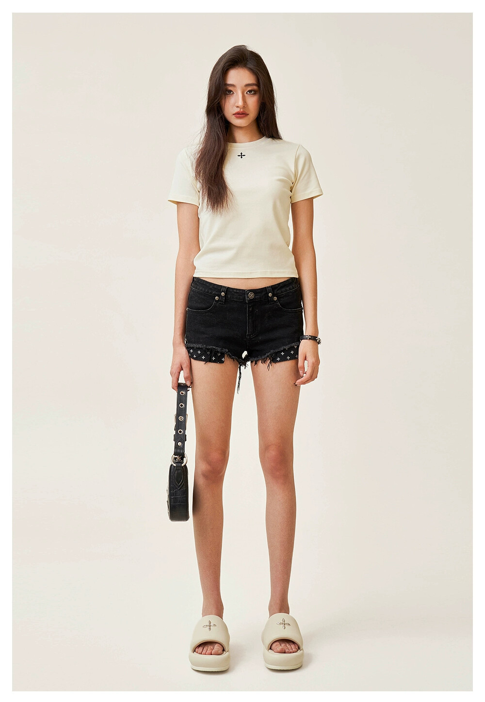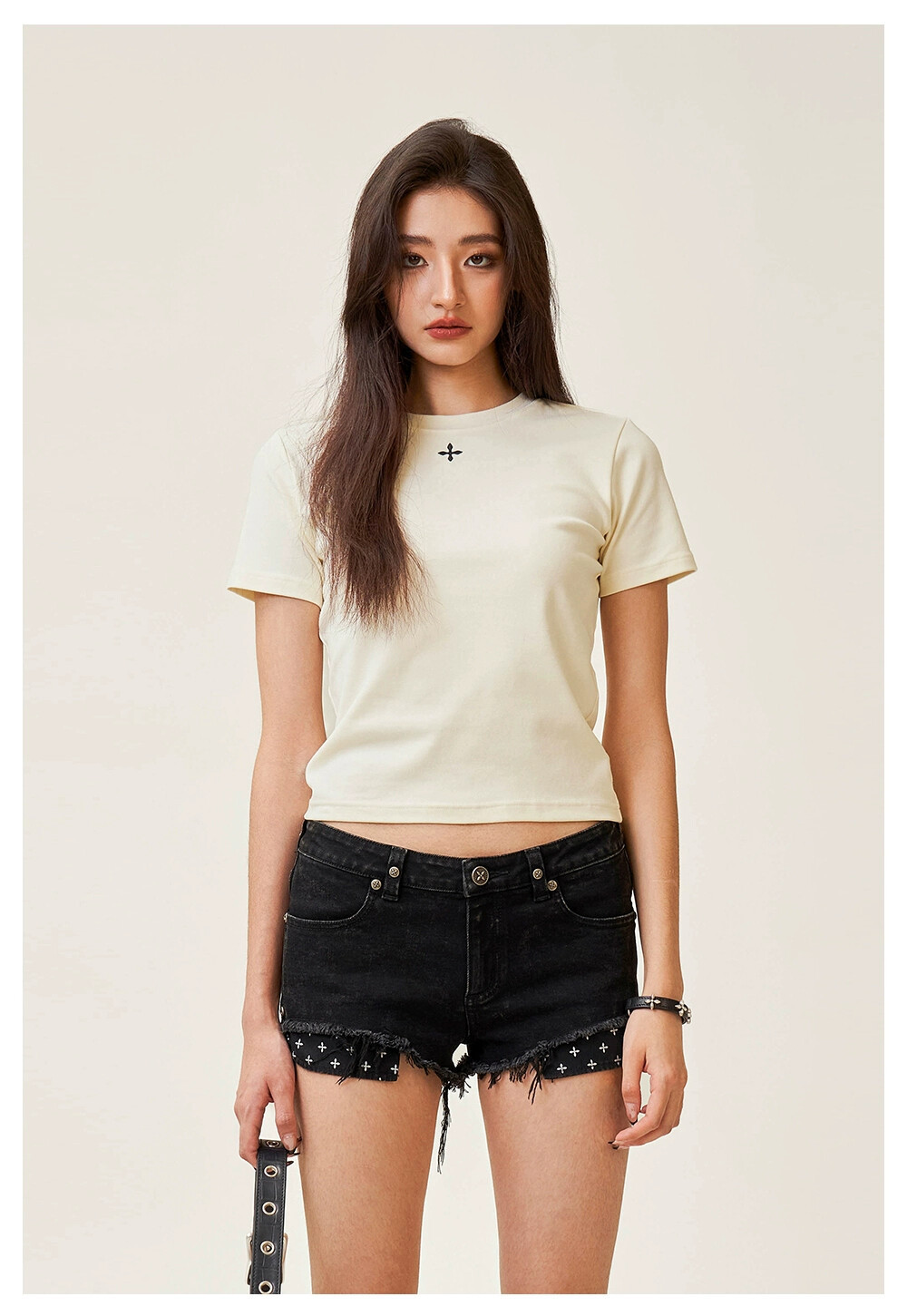 CXCCP 포옹 슬림 피트 티셔츠 스트레치 스포츠 오른쪽 어깨 블랙 자수 티셔츠 반팔 여성스토어 가기