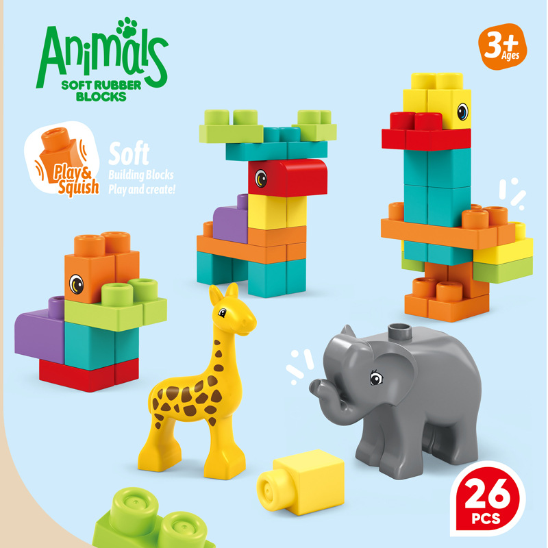 어린이 퍼즐 빌딩 블록 장난감 큰 입자 부드러운 고무 TPR 빌딩 블록 세트 26 조각 세트