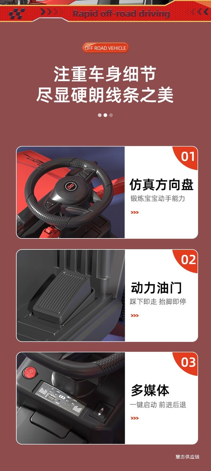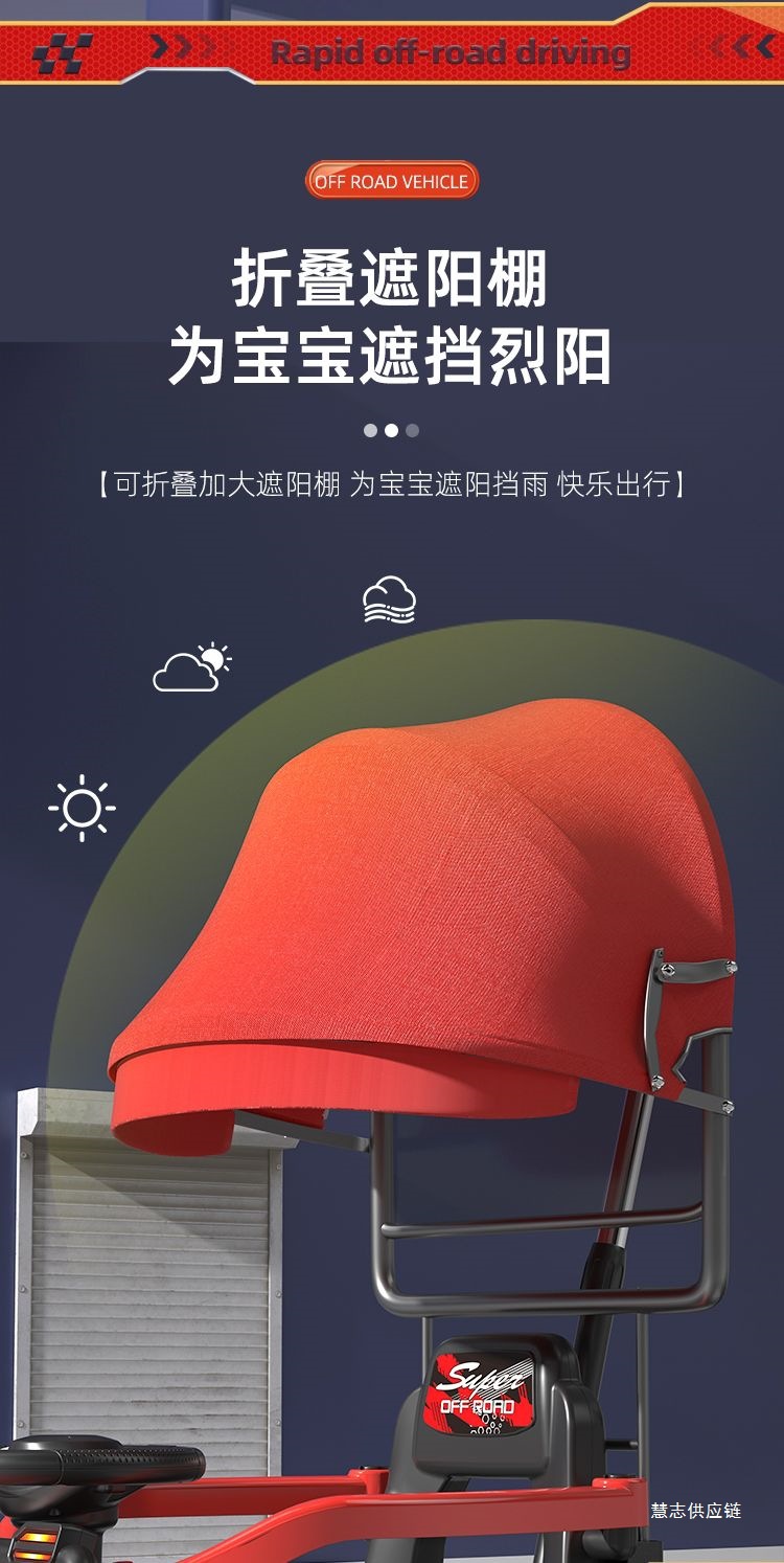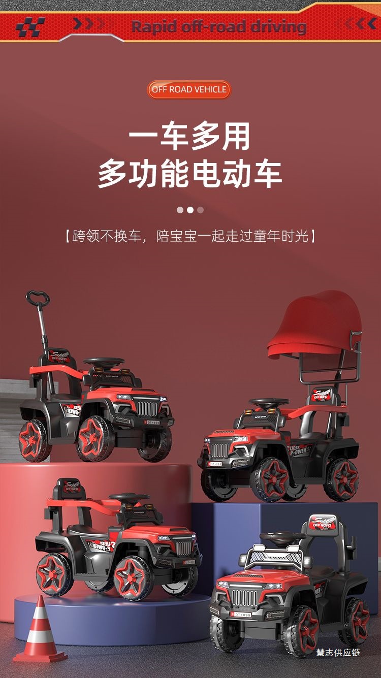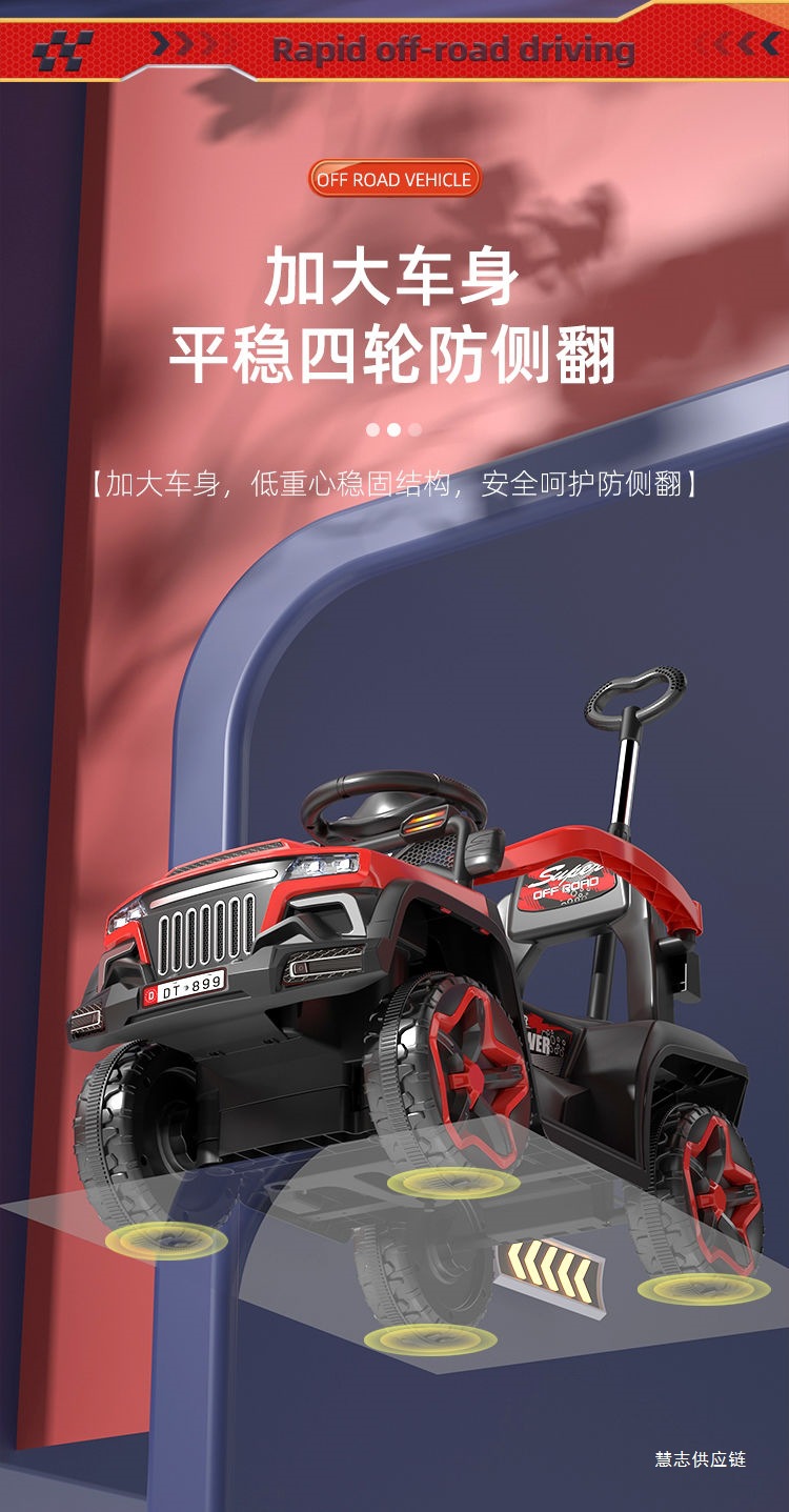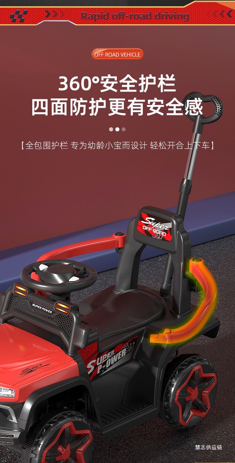 • 차이나 레드 + 완전 밀폐형 가드레일 + 푸시 핸들 스티어링 + 높고 낮은 3단 속도 조절 - 업그레이드된 원격 제어 듀얼 드라이브 대형 배터리 + 블루투스 + 대형 배터리 [전체 기능]