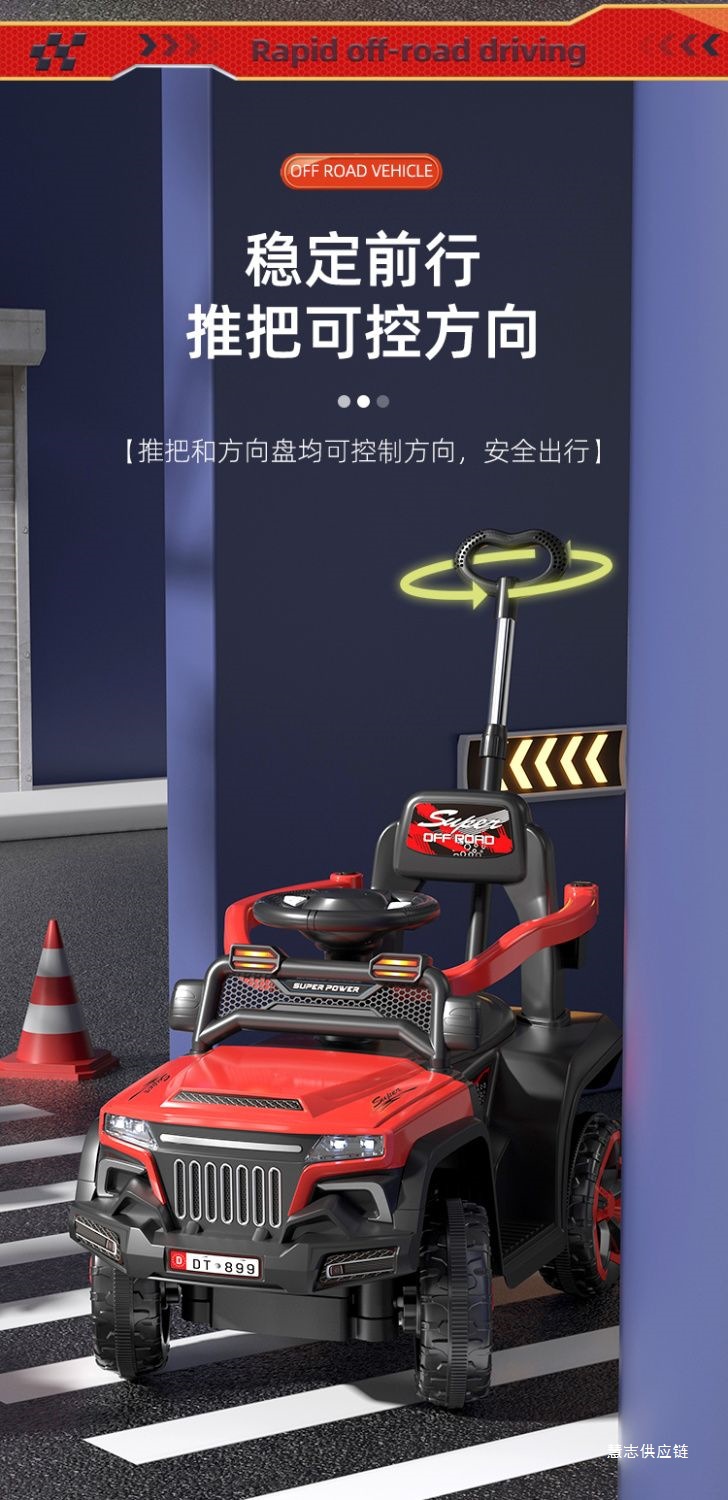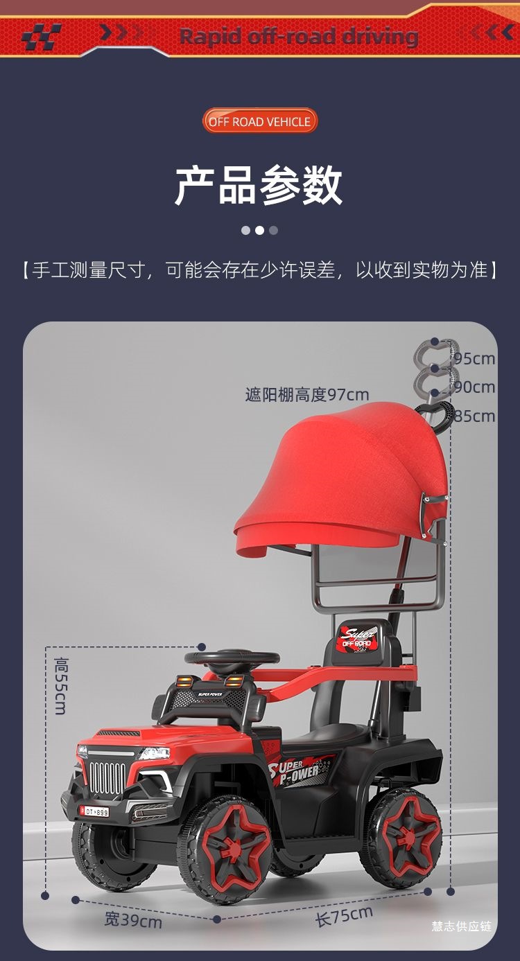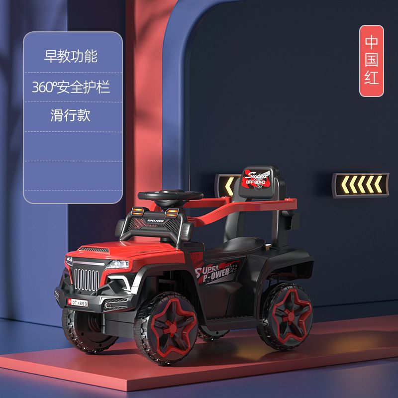 • 차이니즈 레드 + 완전 밀폐형 가드레일 + 푸시 핸들 스티어링 + 높고 낮은 3단 속도 조절 - [슬라이딩] 비전동(배터리 없음) + 음악