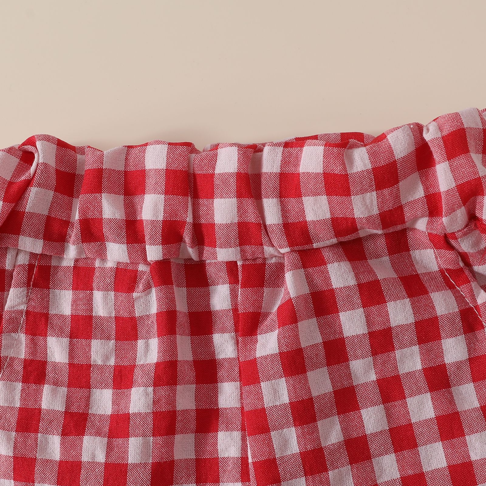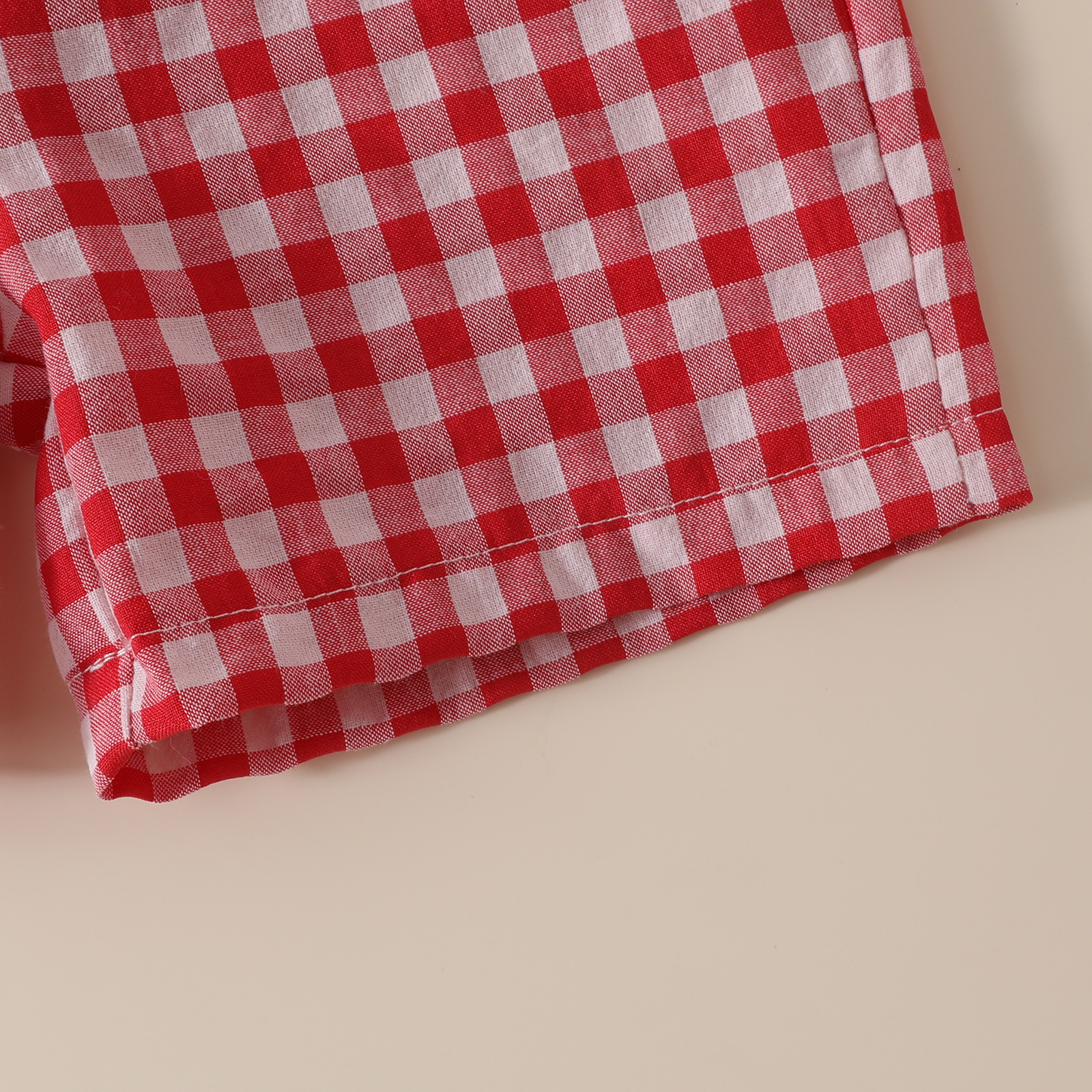 대외 무역 새로운 아기 야구 자수 반팔 최고 격자 무늬 인쇄 반바지 소년 여름 스포츠 세트