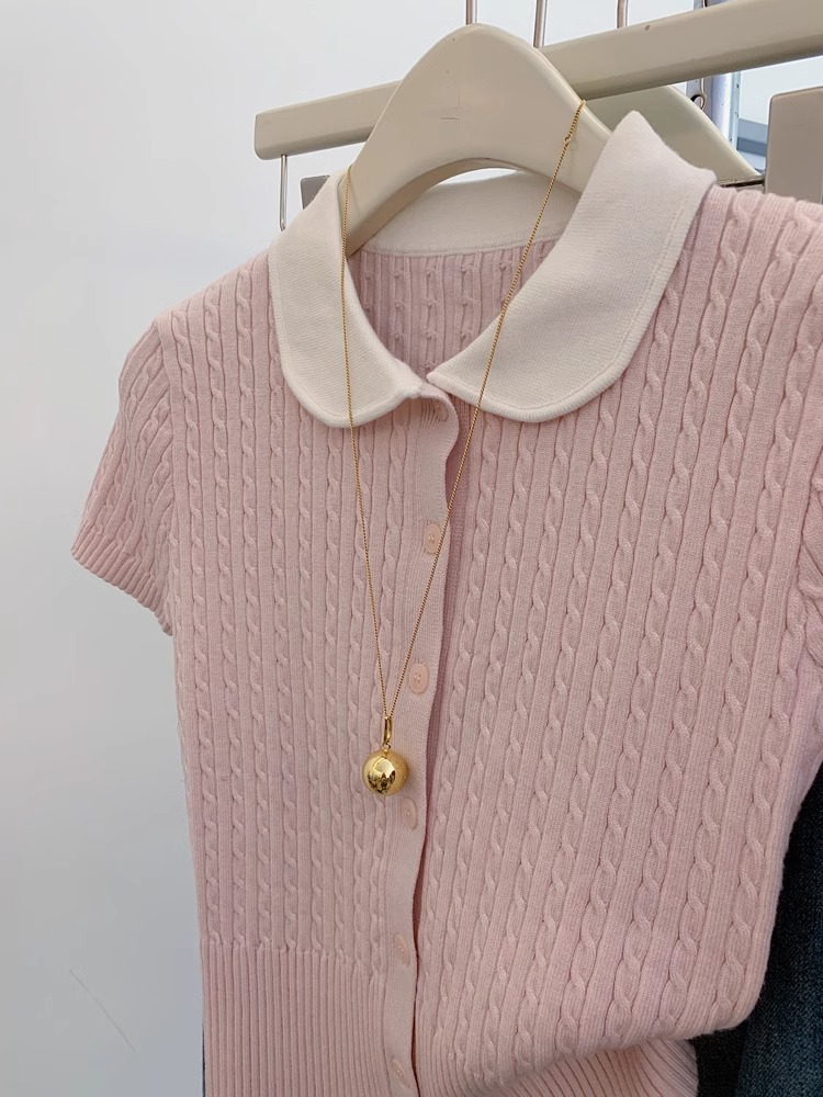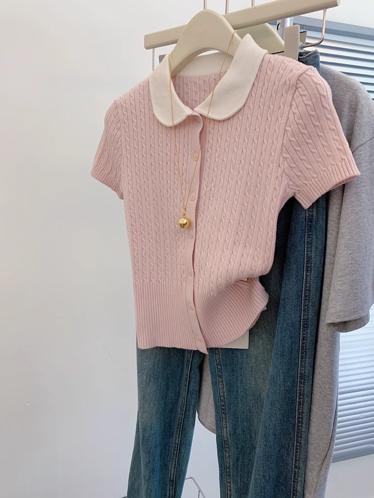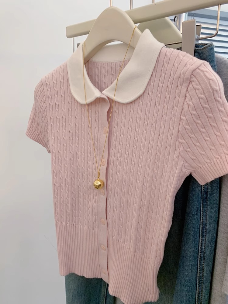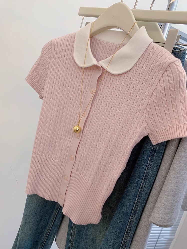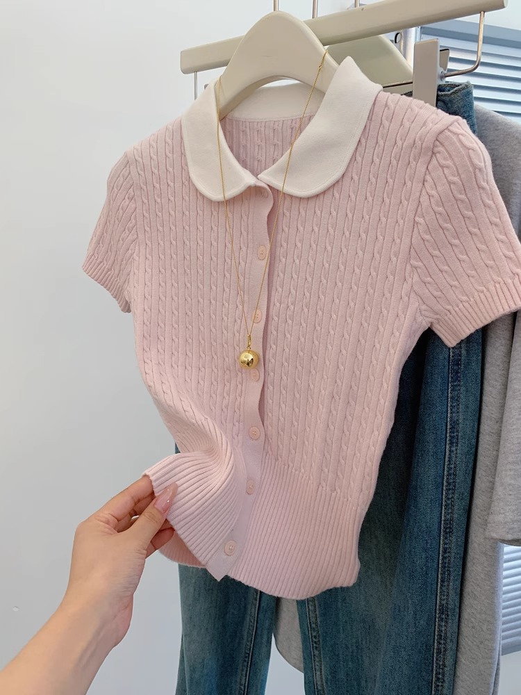 핑크 슬림 핏 반팔 어깨 티셔츠 여성용 우아한 짧은 슬림 핏 탑스토어 가기