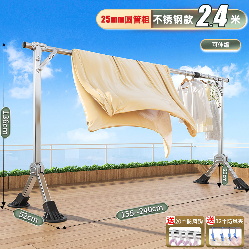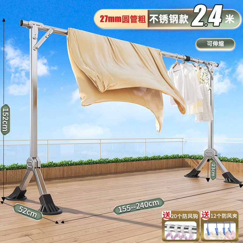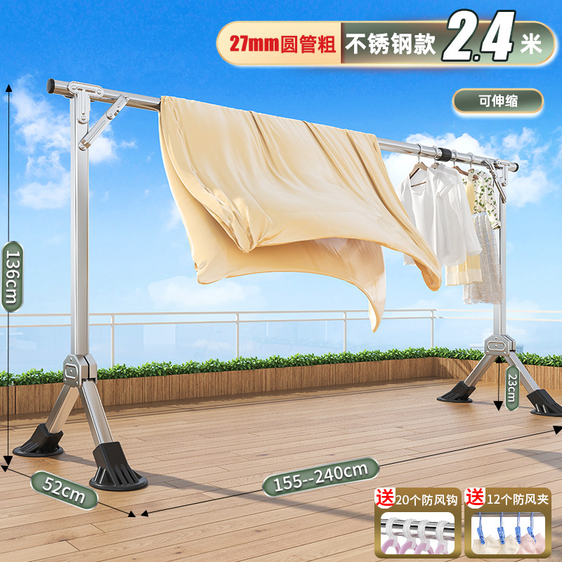 • 강화된 스테인레스 스틸 1.55 - 2.4m 텔레스코픽 - 미끄럼 방지 발 - 프리 후크 양말 클립✦