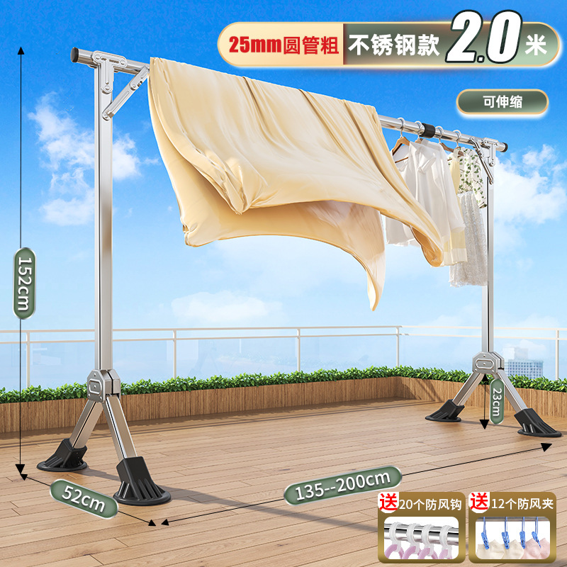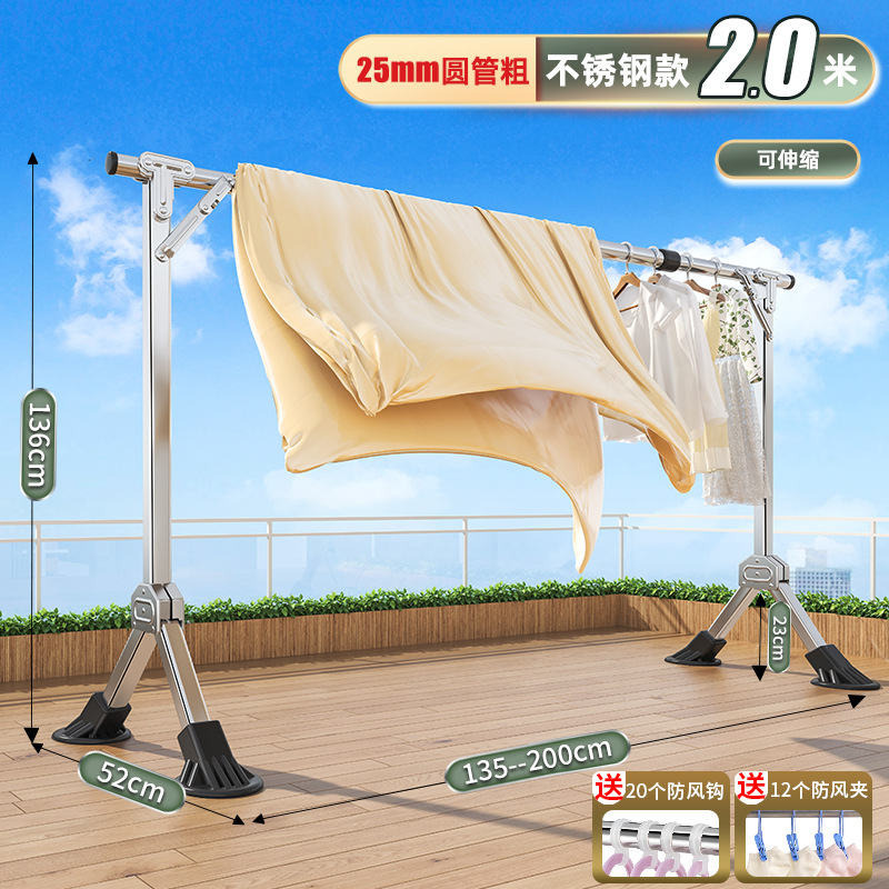 • 강화된 두꺼운 스테인레스 스틸 1.35 - 2.0m 텔레스코픽 - 미끄럼 방지 발 - 프리 후크 양말 클립✦